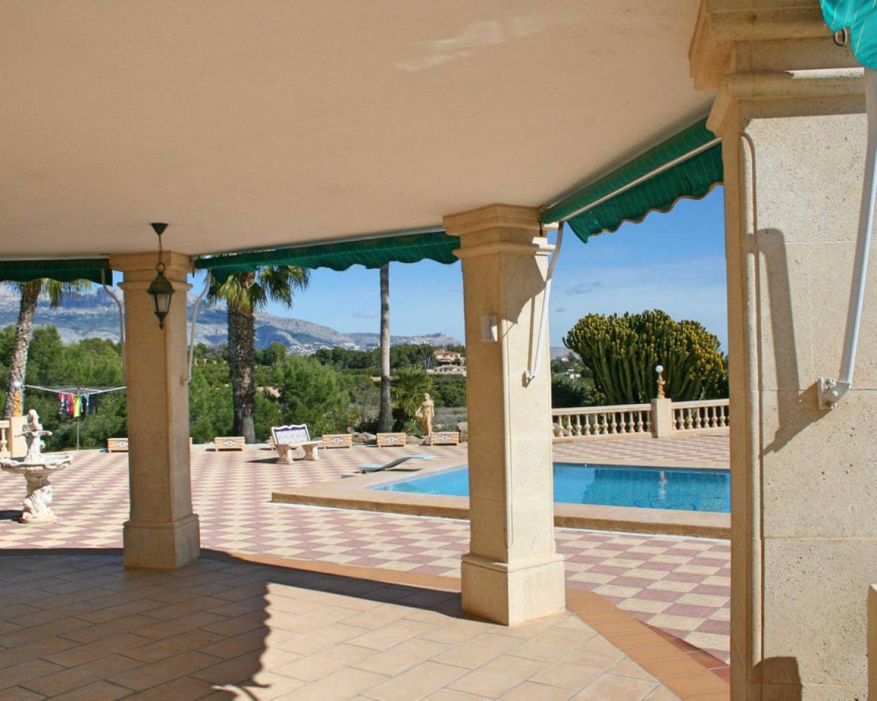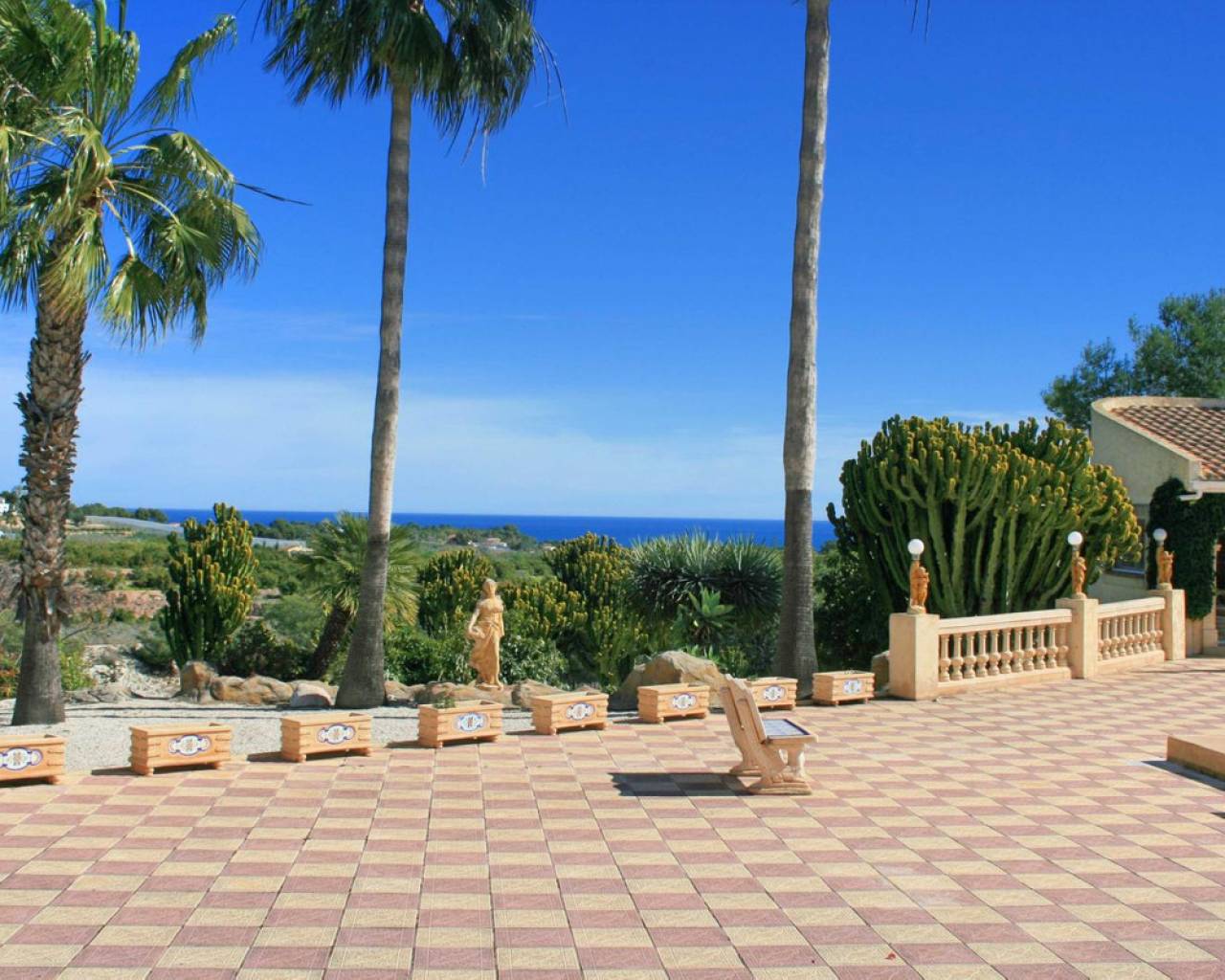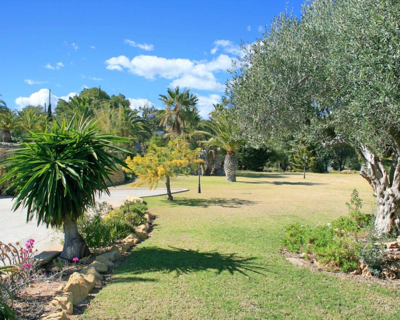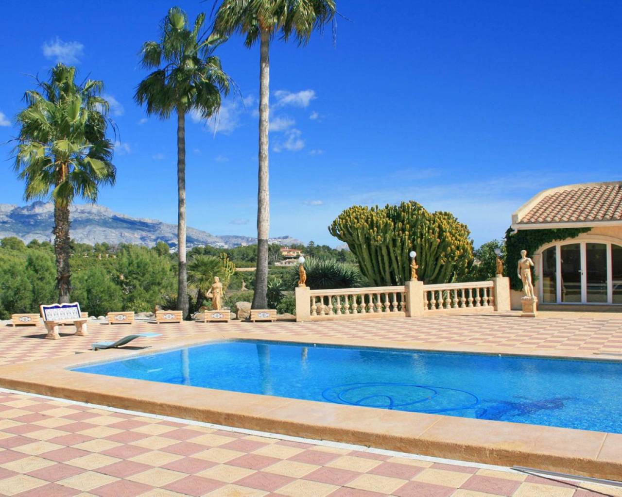 . This is a fantastic property situated about 1 km from Alfaz del Pi, Altea center approx. 6 km, Albir beach approx. 4 km. and 60 km from Alicante airport. The view is magnificent: the Mediterranean Sea in the east, the skyline of Benidorm in the south, the mountains Sierra Bernia in the north and the highest mountain in the area in the west. The land is divided in a big park and forest. The property on a plot of aprox. 16.000 m², is situated in a very quiet area surrounded by big orange farms. It is fenced in with nice walls and different types of fences. It has a main gate as well as 2 gates leading to different areas. All the roads inside have asphalt paving. The mainhouse, built in 2000 with a construction area of aprox. 1000 m² has 5 bedrooms, 4 with bath, guest toilet, lift, kitchen, 2 halls, diningroom, livingroom and library with fireplace. The house is heated with oil and gas, and has 6 air-conditioning unts. Add to that, 2 separate flats with kitchen and livingroom, one with 2 bedrooms and a bathroom, and one with 1 bedroom and a bathroom. In the basement is a garage for 3-4 cars, and facility room. Party-room with jacuzzi, separate kitchen with barbecue, room for 25 persons, toilet and outdoor shower. Swimming-pool 12x4,5 m and carport. Another separate garage with room for 2 cars. The house and park have a tremendous high quality. The park is built on different levels; it has a big lawn, 50-60 palmtrees, roses, big bougainvilleaes surrounding the gates and the wall, as well as lots of different flowers and bushes. The park is flowering all year round and has an automatic irrigation system using private water.