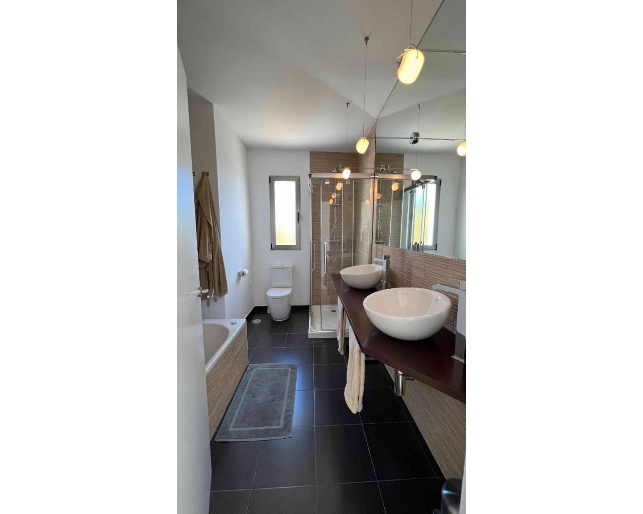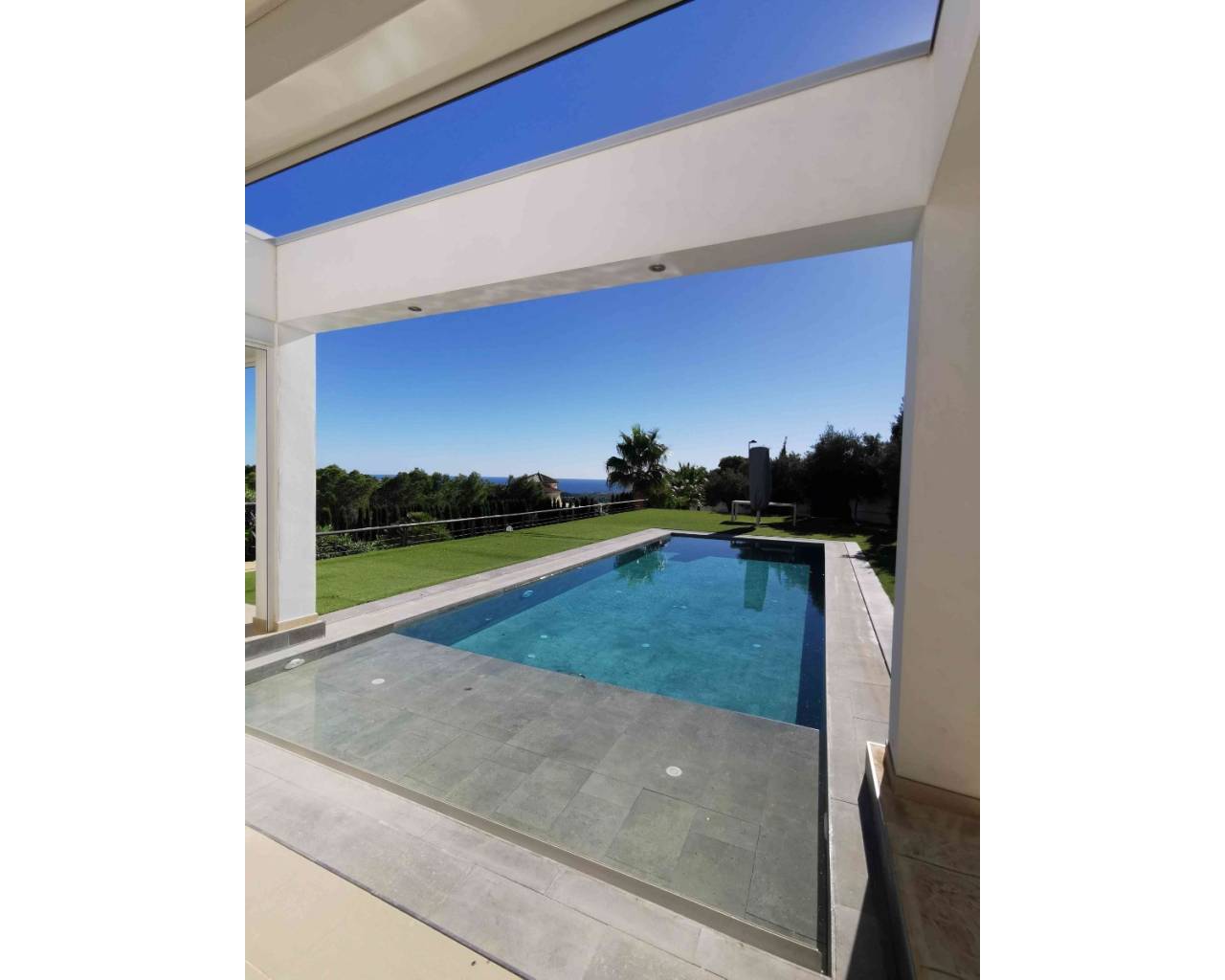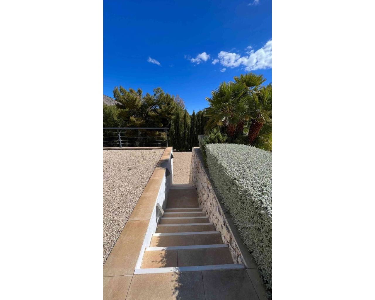 Spacious villa of 330 m2 on a plot of 2000 m2 in the exclusive area of Monterico, Altea la Vella. The property is distributed over two floors, fully fenced and with two automated entrances for convenient access to the garages or the main entrance of the house. The main access to the villa is on the first floor. The first floor consists of a spacious lounge/dining room with a wood burning fireplace and with floor-to-ceiling windows giving access to the covered terrace and swimming pool. On the same floor there are 3 bedrooms with fitted wardrobes, en-suite bathrooms and terrace. There is also a guest toilet located in the hallway. The kitchen is independent with access to the terrace with pool. The lower floor consists of a lounge/games room, with exit to a large covered terrace and the gardens, 2 bedrooms with fitted wardrobes and en suite bathrooms. Also on this floor you will find the separate laundry room and storage room. There is an additional 50m2 of space available for extension, offering many possibilities such as a storage room, hobby area, wine cellar, home cinema etc. The salt water infinity pool measures 12 x 4m and is equipped with a self-cleaning system, counter-current swimming pump, heat pump and LED lighting. The water is kept clean and warm with a fully automated insulated slatted cover. The orientation of the house is south facing. It has top of the range Panasonic air conditioning/heating and security system. and security system. There is a spacious garage of almost 50m2 with ample outdoor parking. The house has magnificent views to the sea, the mountains and the swimming pool, low maintenance gardens with automatic watering system installed, Air conditioning hot and cold and double glazing. Altea la Vella is located on 5 min. drive, 7 km from Altea, 5 km from the Olla beach.