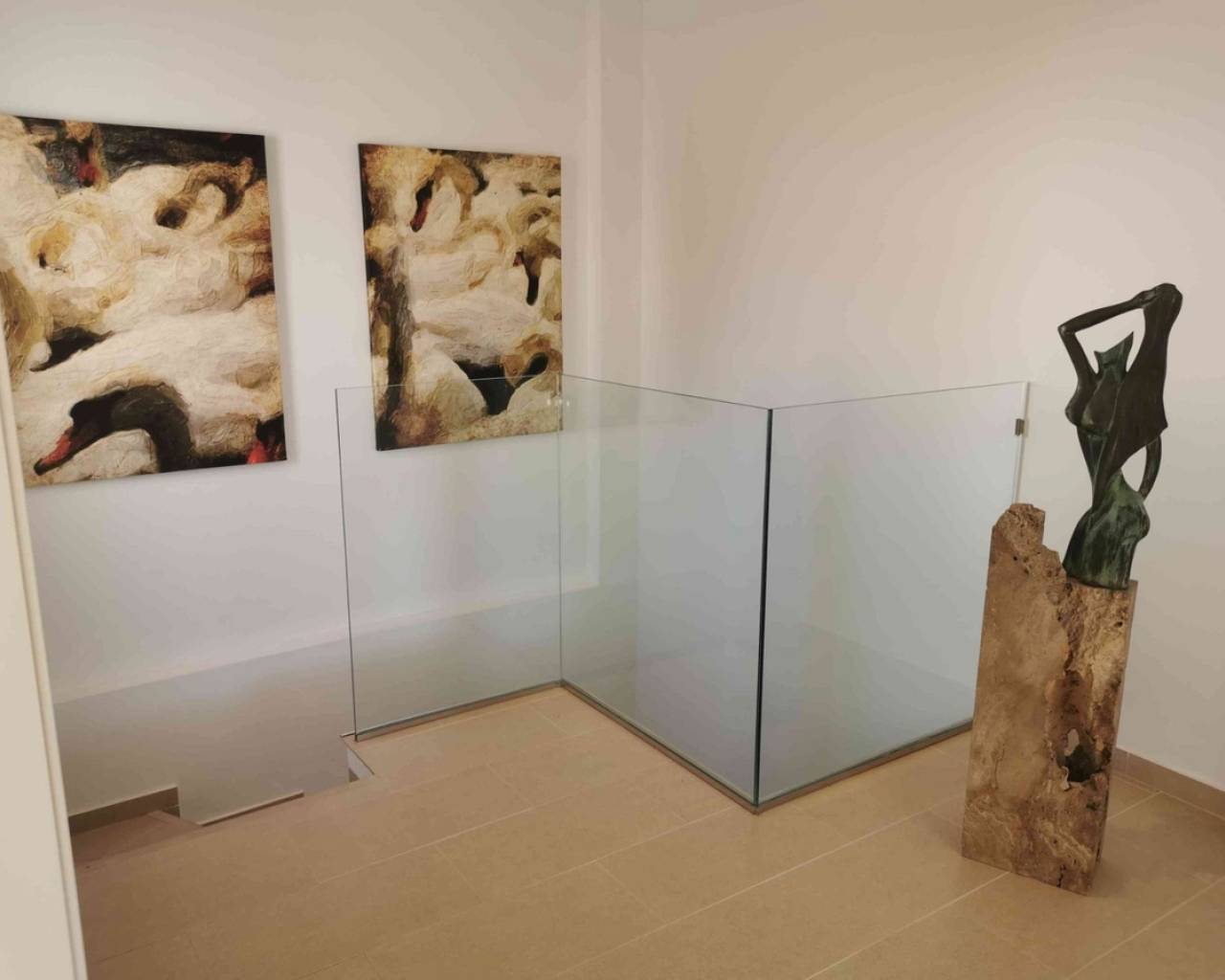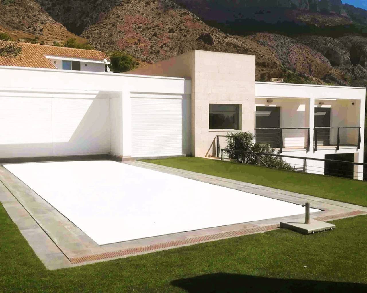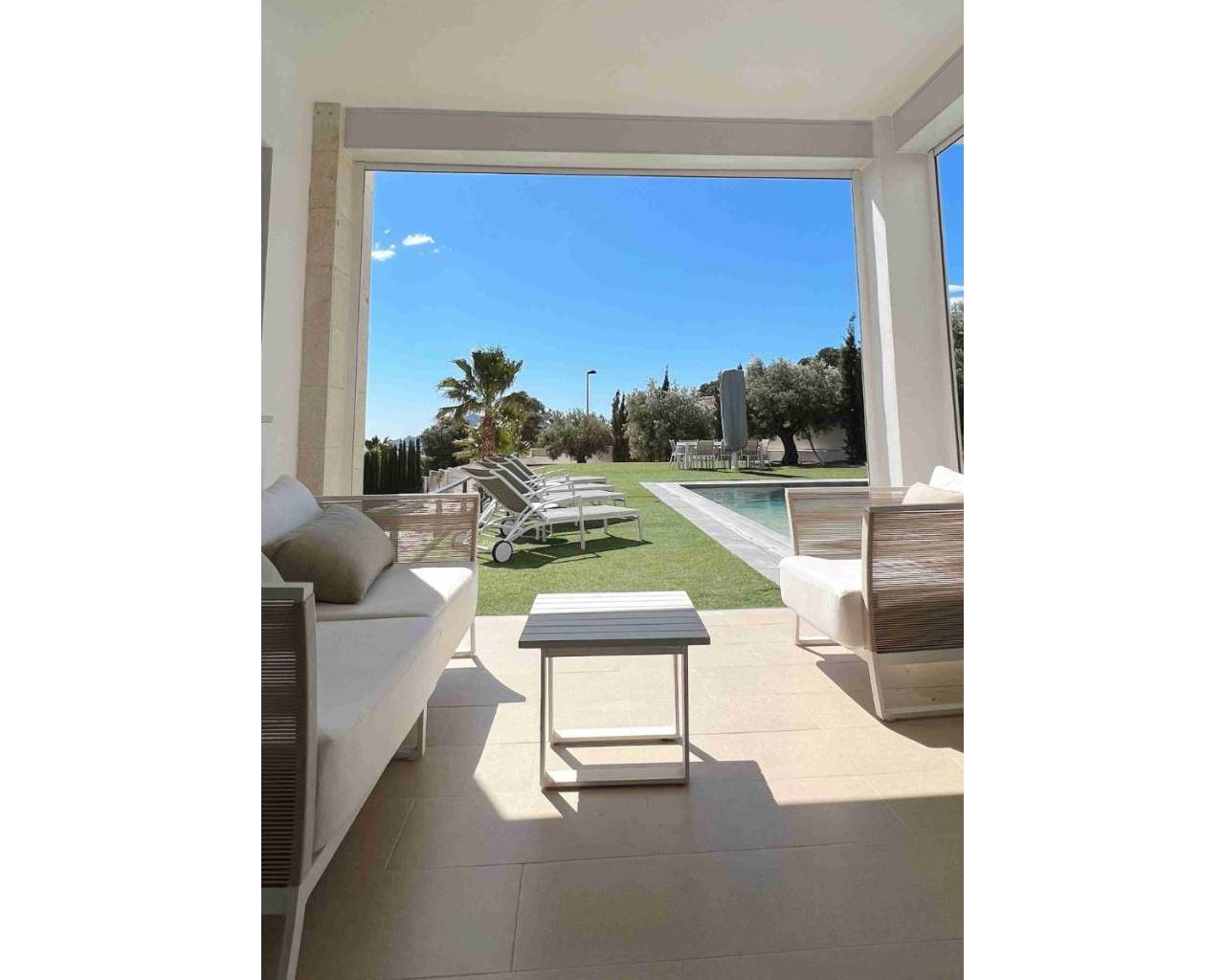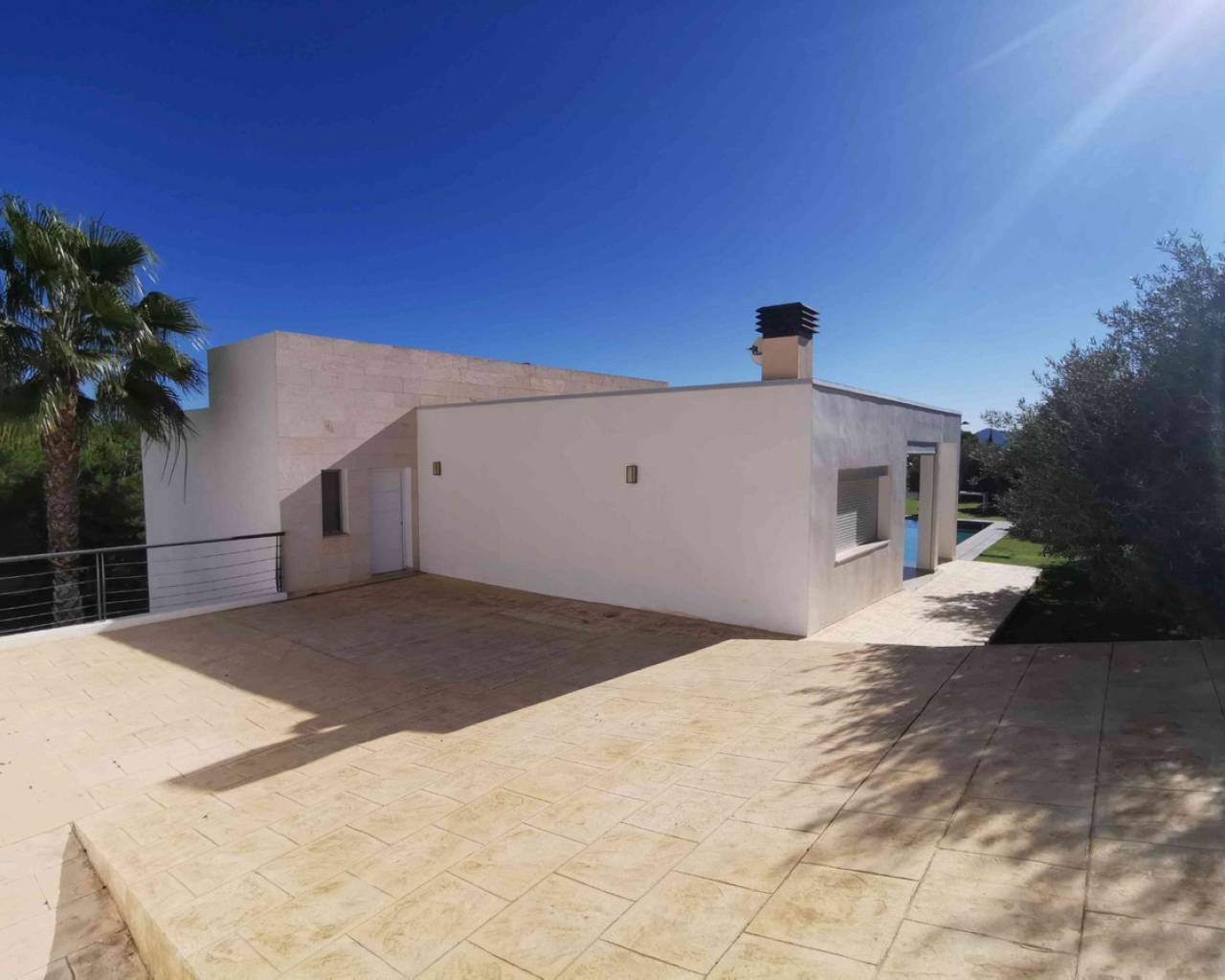 Spacious villa of 330 m2 on a plot of 2000 m2 in the exclusive area of Monterico, Altea la Vella. The property is distributed over two floors, fully fenced and with two automated entrances for convenient access to the garages or the main entrance of the house. The main access to the villa is on the first floor. The first floor consists of a spacious lounge/dining room with a wood burning fireplace and with floor-to-ceiling windows giving access to the covered terrace and swimming pool. On the same floor there are 3 bedrooms with fitted wardrobes, en-suite bathrooms and terrace. There is also a guest toilet located in the hallway. The kitchen is independent with access to the terrace with pool. The lower floor consists of a lounge/games room, with exit to a large covered terrace and the gardens, 2 bedrooms with fitted wardrobes and en suite bathrooms. Also on this floor you will find the separate laundry room and storage room. There is an additional 50m2 of space available for extension, offering many possibilities such as a storage room, hobby area, wine cellar, home cinema etc. The salt water infinity pool measures 12 x 4m and is equipped with a self-cleaning system, counter-current swimming pump, heat pump and LED lighting. The water is kept clean and warm with a fully automated insulated slatted cover. The orientation of the house is south facing. It has top of the range Panasonic air conditioning/heating and security system. and security system. There is a spacious garage of almost 50m2 with ample outdoor parking. The house has magnificent views to the sea, the mountains and the swimming pool, low maintenance gardens with automatic watering system installed, Air conditioning hot and cold and double glazing. Altea la Vella is located on 5 min. drive, 7 km from Altea, 5 km from the Olla beach.