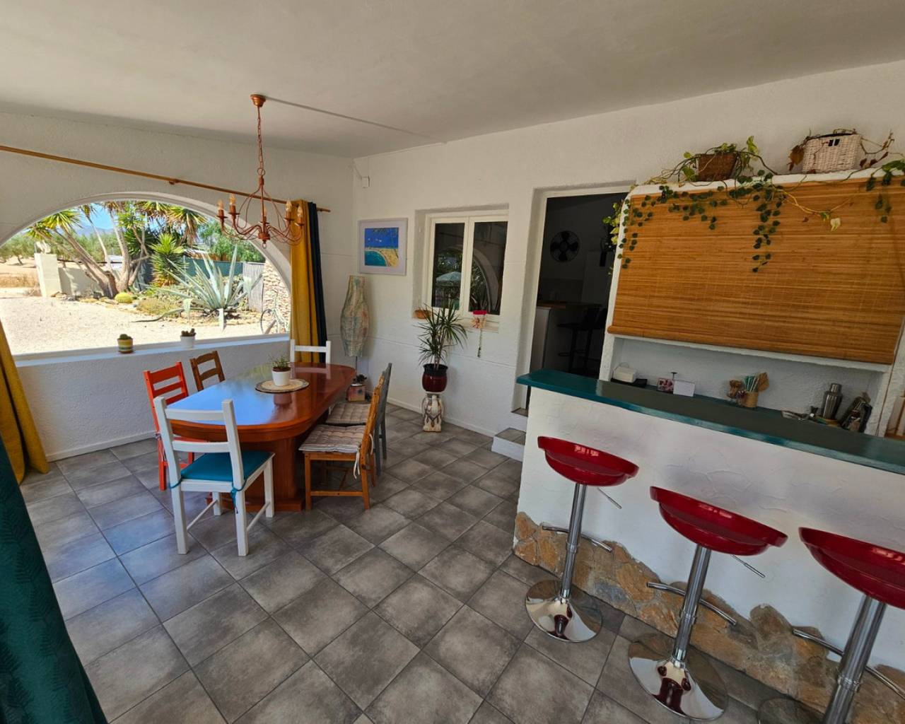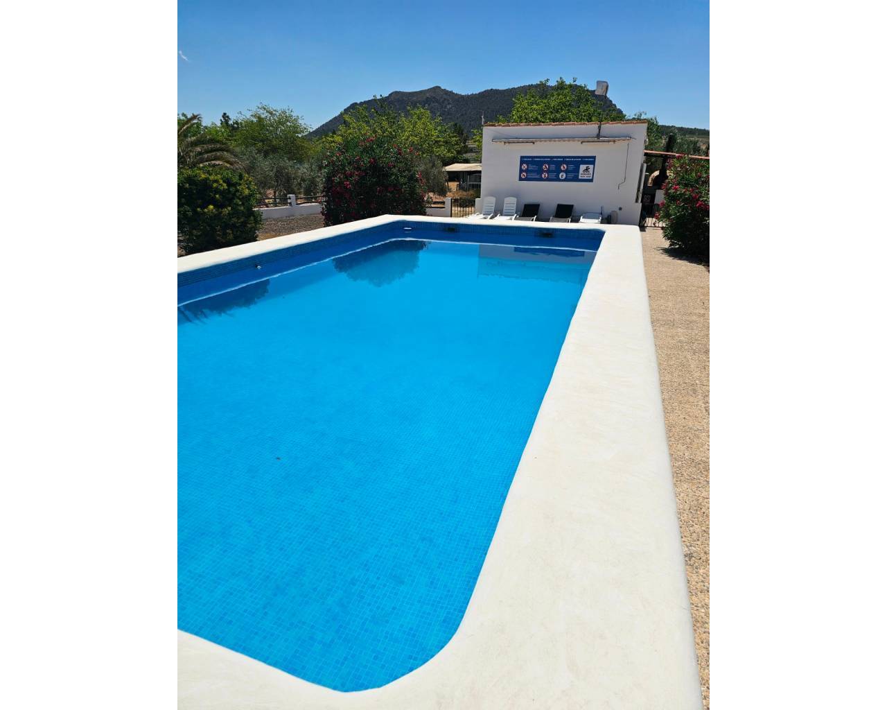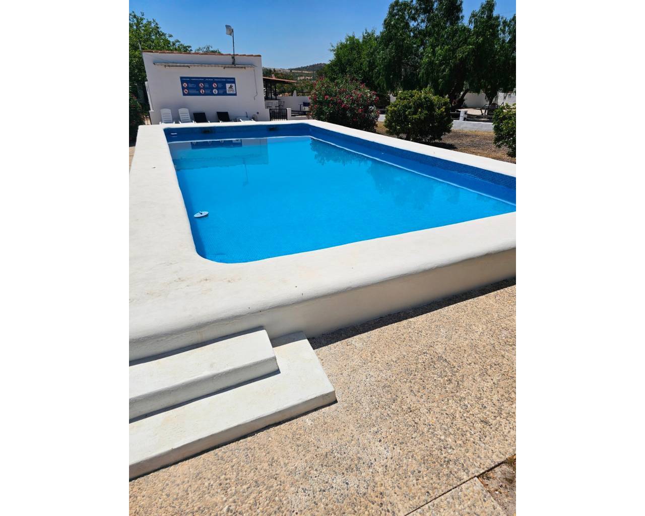 This unique well-run campsite is located in the sax / alicante region amidst large olive tree fields. An oasis of peace and nature. It is a plot of 15,000m2 with a beautiful finca in the middle . Living area 113m2 and beautiful terrace with shelter around the house of more than 40m2 Consisting of a large living space with an open kitchen equipped with all appliances . Further there are 2 bedrooms and 1 office space (can become 3 the bedroom )and 1 bathroom. A beautiful veranda space completes the whole to enjoy pleasantly. For heating there are radiators and a pellet stove is available in the living room which makes it pleasant in the winter months. On the campground itself there are 17 camping spots available of which 16 have electricity. But this can be greatly expanded to 2 or 3 times the capacity there is now. There is a nice swimming pool in the middle and a built-up area with toilets , showers and a place to wash up and cook. Even a petanque court and table tennis is available. Several barbecue areas are provided to safely cook your own meat. 2 existing wooden chalets, one of which is currently used as a reception and the second is fully furnished and is rented to guests. There is also a beautiful timber building with 2 bedrooms , 1 bathroom , a fully equipped kitchen and living room that is rented out to guests . For people who still want to work and live in Spain this is an ideal opportunity. All licenses are available , also to serve food and drinks. Don't let this pass you by and contact us for more info.