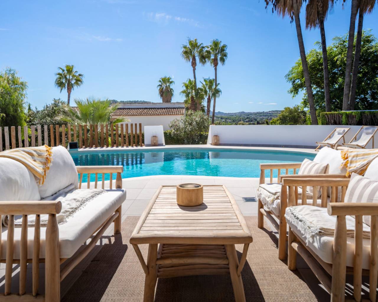 hr /> This recently renovated villa has it all - a new home merging old with new - fusing original features such as the Tosca Arches with sustainable materials creating huge amounts of natural light and pure tranquillity along with spectacular valley views. This newly reformed property is located within a short walk of Javea's old town with all its amenities, bars and restaurants which is very rare to find in the current marketplace. The villa benefits from views of the beautiful Montgó mountain where you will be fascinated by the sunset, with the stunning lights and colours displayed while you enjoy every little spot in the villa, in this case from the balcony on the first floor. The villa has 4 double bedrooms, 3 bathrooms, a large lounge, study area, second lounge area, dining room, breakfast room, large kitchen and utility plus a lovely walk in wardrobe and balcony in the master bedroom. The villa has been completely renovated leaving no stone unturned, new electrics, plumbing, aircon units, heating system and radiators, flooring, hand made oak doors and wardrobes, huge expense has been committed to the project with money being no object to create this amazing family home. The garden and pool area create an oasis feel of complete tranquillity, with palm trees and lovely large grassed garden and contemporary swimming pool and pool area with stunning garden furniture and electric awnings to finish the garden off as you would expect. The villa has parking with a double roofed pergola at the front with electric gates for added security along with alarm and live cameras to your phone.