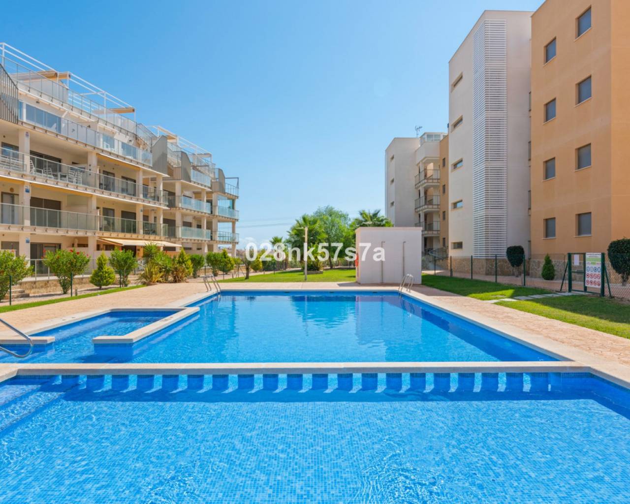 Modern south-facing apartment with 2 bedrooms and 2 bathrooms - Spacious terrace - Parking and storage room! Here we have a modern and neat apartment on the 2nd floor with 2 bedrooms, 2 delicate bathrooms, spacious living room with open kitchen, and a large terrace outside the living room. The apartment is well equipped and is sold with furniture included in the price. South-facing with ideal sun conditions.There is a lift in the building and an underground garage with parking space and private storage room. You are within walking distance of a good selection of restaurants, cafes and the shopping center in La Zenia. If you want to go to the beach, you can cycle down in about 15 minutes. Otherwise, it is worth mentioning that there are three 18-hole golf courses nearby. The complex includes 3 swimming pools (one of which is built-in and heated) and large green areas to frolic in. Welcome to Villamartin Gardens!