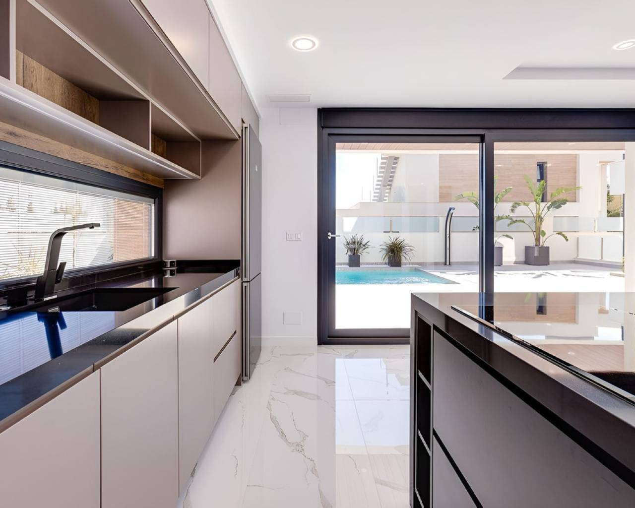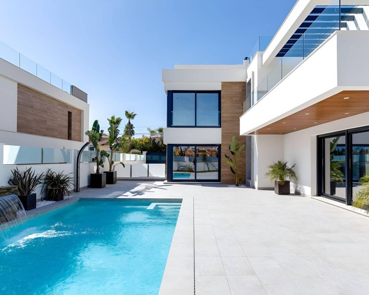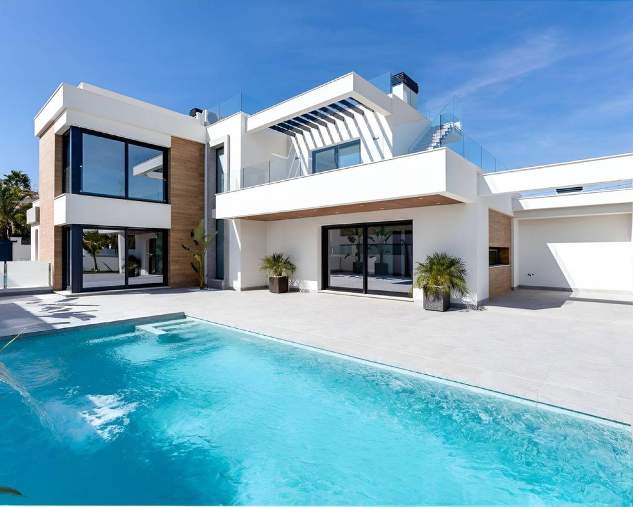 Off-market modern luxury villa of the highest standard, located in Ciudad Quesada. We are delighted to present a truly unique and luxurious villa in the heart of Ciudad Quesada – an exclusive property that rarely comes on the market. This is an off-market villa for those seeking something out of the ordinary – whether you're looking for a first-class holiday home, a high-yield investment property, or simply a residence that combines elegance, comfort, and state-of-the-art technology at the highest level. The villa is spread over three floors plus a spacious rooftop terrace, where you can enjoy panoramic views of both the Salt Lakes and the Mediterranean Sea. Every detail has been designed for a life of luxury – from the four spacious bedrooms and four elegant bathrooms to the additional guest WC and a versatile lower level that can be adapted to your needs. The basement can serve as a cinema room, gym, second living area, or fifth bedroom, and also offers the potential to be converted into a private spa with a jacuzzi and sauna. The outdoor area is equally impressive, featuring a 550 m² plot and a 4x8 metre heated saltwater pool with an integrated seating area – perfect for relaxation all year round. The exclusive outdoor lounge with pergola, complete with barbecue, sink, and refrigerator, makes this villa ideal for both tranquil evenings and entertaining guests. Inside, the home is built to an exceptionally high standard, offering approximately 400 m² of built area, underfloor heating throughout, Airzone climate control with independent settings in every room, and an advanced smart home system that allows you to manage everything from your phone. The villa is sold fully furnished with exclusive interior design worth around €150,000 and equipped with top-quality appliances. A large underground garage provides ample space for cars, storage, or hobbies. The property is located in one of Ciudad Quesada's most sought-after areas, just a 10–15 minute walk from the centre. Here you'll find a wide selection of restaurants, charming cafés, shops, and all the daily amenities you could need. The area is renowned for its peaceful and exclusive atmosphere, while still being close to golf courses, the La Mata nature reserve, and the beautiful sandy beaches of Guardamar, just a short drive away. Ciudad Quesada offers the perfect blend of comfort, leisure, and authentic Spanish lifestyle – all year round. This is truly a property that must be experienced – where modern design meets functionality and comfort at its finest.