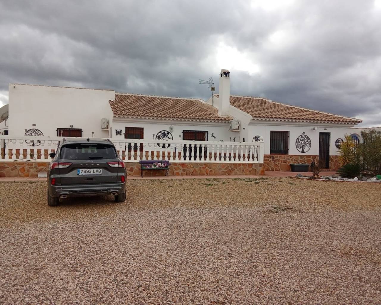It is our pleasure to share with our Spanish collaborator this beautifully presented detached villa offering 4 double bedrooms, with fully landscaped gardens- wrap around enclosed terraces, including a large pool garden with outside kitchen and pergola. The villa offers the benefits of being set within spectacular countryside location. This modern property is set as a main house- with 3 double bedrooms, kitchen, large lounge, family bathroom and the master bedroom includes an ensuite. The 4th bedroom is set within a self-contained annex, with kitchen/lounge/dining area and separate bathroom. Theres an addition room to the side of the casita-that has previously been utilized as an additional bedroom. 23,404M2 of land are included which are fully maintained, mainly planted with almond trees The surrounding gardens are beautifully maintained and landscaped- includes enclosed wrap around terraces-with various seating areas. A secret garden – fully enclosed with feature windows to embrace the surrounding views and sunsets. Established planting throughout, laid pathways and stoned feature zones. Substantial outside lighting. The pool garden- also enclosed, has a large built kitchen/bar with electrics, pool storage room and a pergola for Al Fresco dining. The Pool Garden is south orientated embracing the sun all year round. The pool is a very good size and has a semi-circle feature to the side hosting the steps. Electric gates to the front driveway with parking for numerous cars. The front gardens also have another large, covered storage area. Aircon units are fitted to most rooms, also fitted wall mounted radiators. The main lounge has a fitted log burner. Main house- all windows are fitted with dark wood double glazing UVPC windows with fly screens, while the casita is fitted with white UVPC double glazed windows and patio sliding doors. The external doors to the main villa are full of character being wooden design, the lounge offers double wooden doors out to the front terraces. A solar panel system has recently been installed- dramatically reducing the monthly costs- owner says the bills went from around €180 per month to now only around €15. The property is accessed by tarmac roads, with a short track and passes no ramblas Set in a key location to be in a private setting, not isolated, a 5 minute drive from the A92. The large town of Lorca, is only a 30 minute drive. The property sits to the front of the land of 23,404m2, as we approach the double electric gates, it is beautifully presented. The family gardens are enclosed with an impressive driveway with parking for numerous cars. There is a covered storage area to the right- currently used for outside furniture storage and logs. This could possibly be adapted to provide stables horses. We enter the front terraces that are laid with tiling and well landscaped plant areas. To the left-hand side, we find the casita, that offers a 1 bed self-contained apartment, with large open living space with a kitchen area and central island. The casita has a separate bathroom and an additional room to the side that has previously been used as an additional bedroom. We are immediately drawn to the pool garden that sits to the south of the plot. The gardens are beautiful and are well maintained, with established plants, tiled pathways and stoned areas. The gardens have substantial outside lighting and electric sockets. There are seating areas embracing the panoramic views. Before we discover the pool garden, we enter to the side of the home into the secret garden. This area is sat to the west of the home, perfect place to enjoy the Spanish sunsets. The garden is enclosed with walling with feature open windows sets to the west and south. The pool garden is simply stunning- fully enclosed, being south facing is perfect for all year round entertaining. There is a large outside kitchen-bar area with overhead shelter. Also, an additional pergola to the east, perfect to enjoy al-fresco dining. The pool house is joined to the outside kitchen-bar and offers additional storage, with plumbing already installed. The current owner has recently had a solar system installed, maximising the benefits of the Spanish sun. The main house is very well maintained and tastefully finished. The kitchen sits in the heart of the home, being fully fitted with wall and floor cupboards, sits south facing. There's an external door offering access to the pretty gardens and views to the pool garden. Leading from the kitchen we enter the large lounge with high vaulted ceiling, double doors to the front terraces, wood burner. The master bedroom suite sits to one side, and the additional 2 double bedrooms and family bathroom to the other side accessed through double doors. This home would make a perfect family residence, lock up and leave holiday home, or if your dream of running a BnB – having the self-contained casita makes this a viable option. (subject to licences) * Build Size 129 m² * Plot Size 2,34 hectares * Private Pool * Mains Water * Mains Electric * Telephone Possible * Internet Possible * Furniture Negotiable * Air Conditioning * Private Terrace * Private parking * 50 minutes drive to the beach * 5 minutes drive to the shops * IBI property tax: €123,00 per annum
