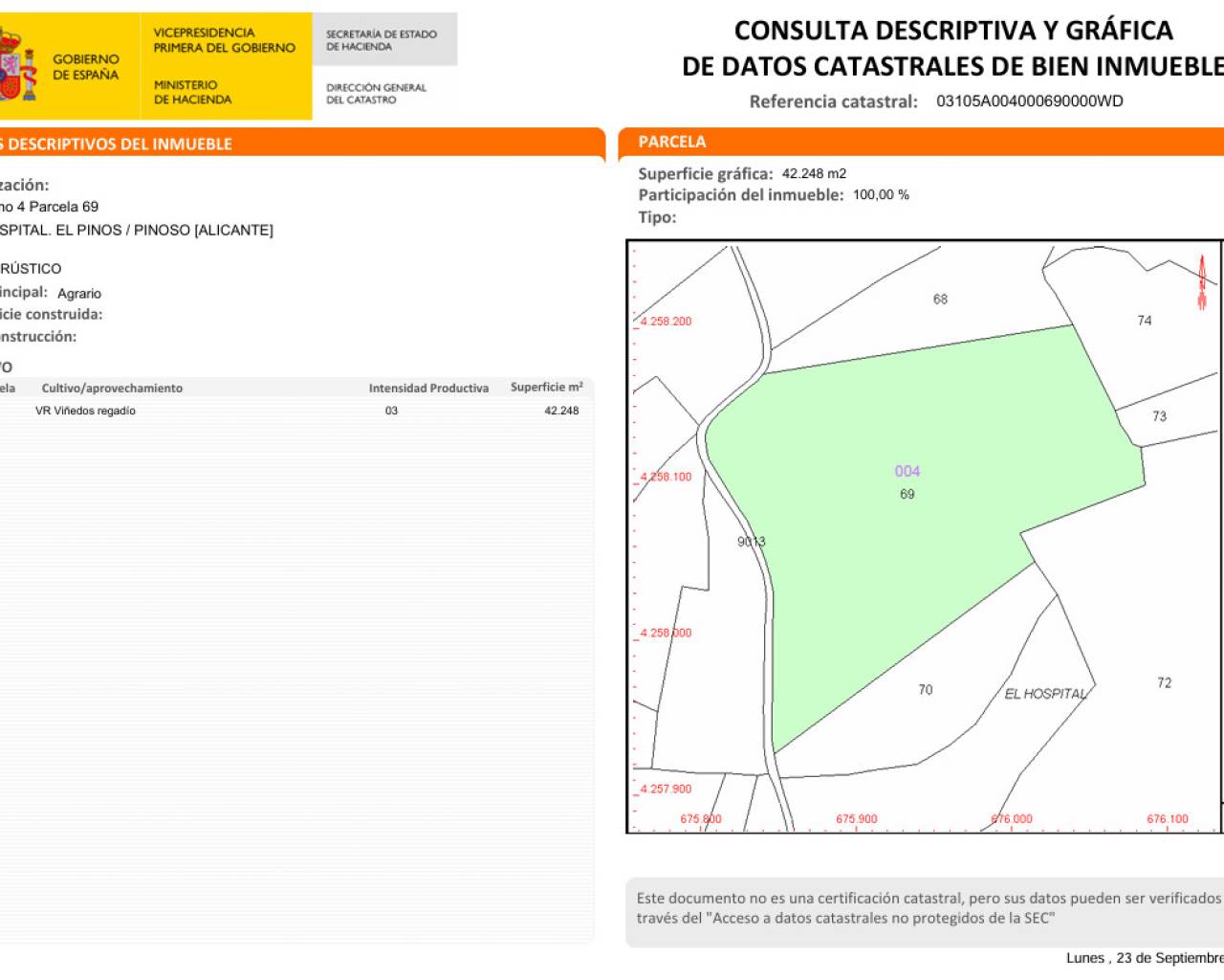 This building plot of 42,248 m² is situated in a peaceful hamlet just outside Pinoso. The land benefits from irrigation water and offers the potential to be divided into four separate plots. Local regulations allow for construction of up to 2% of the plot size, with the option to build on two levels, providing flexibility for multiple projects or a larger development.The Area: Pinoso, located in the Alicante region, is known for its wine production, olive groves, and natural beauty. This small town offers a tranquil lifestyle while still being close to essential amenities such as shops, restaurants, and healthcare facilities. The surrounding countryside is perfect for outdoor activities, making this an attractive area for those seeking a rural retreat with the possibility of development.We have a large portfolio of properties in the Costa Blanca and Costa Calida areas, specialising in country properties, villas, fincas, building plots and design and build options in the Alicante and Murcia regions with a particular emphasis on Elda, Monovar, Pinoso, Sax, Villena, Aspe, Fortuna, Albacete and many more surrounding areas. We have been established since 2004 and have decades of experience between the team which we bring to bear to help you find and secure your new dream home. We help you every step of the way to make sure your purchase in Spain is safe and hassle free. We are not here to sell you a property, we are here to help you realise your dream and find what is right for you. With us you are in the safest hands. Contact us now to have a no obligation chat about how you too can realise your dreams.