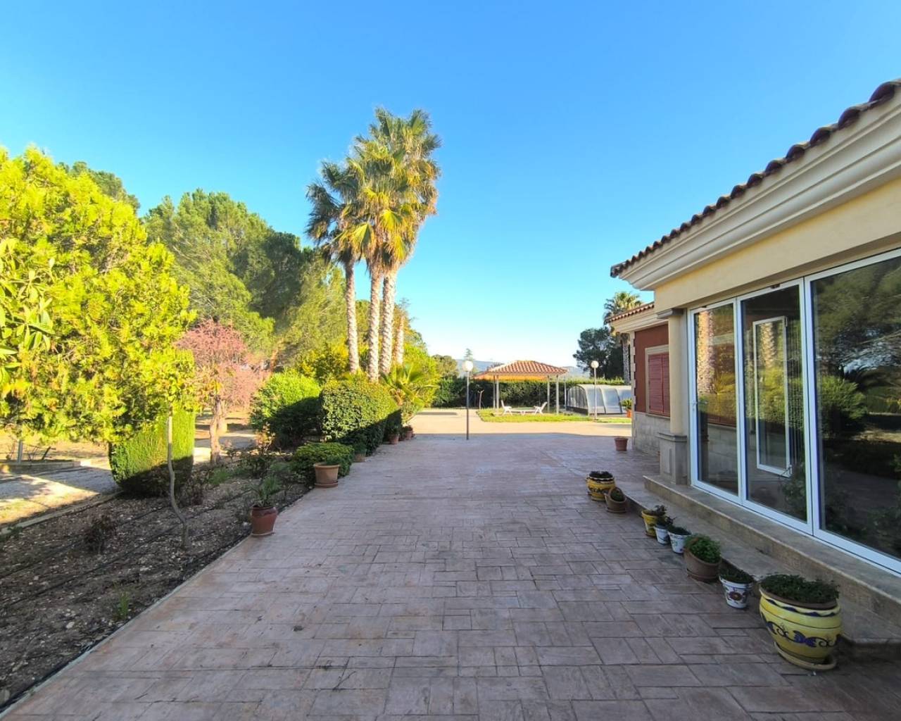 Discover this beautiful villa located in a serene neighbourhood, just 4 km from Yecla town, where you can enjoy easy access to shops, schools, and bars. This exceptional property comprises two modern houses constructed with high-quality materials, offering both comfort and style.Main Villa (built in 2002) features:5 Bedrooms2 BathroomsA cosy salon complete with a chimneyA contemporary kitchenA large solariumAmple storage roomsFully furnished and stylishly designed interiorsThermal insulation for energy efficiency & gas central heating and air-conditioning for year-round comfortSecond House (Built in 2015) includes:A generous garage equipped with three electric doors, serving as a gymA guest annex featuring a wheelchair-accessible bathroomOutdoor Features - The exterior of the property is beautifully shaded by mature trees and includes:A covered pool measuring 10 x 4 meters, complete with a filtration system, ideal for relaxation or entertainingA well-maintained garden spanning 5600 m², perfect for leisure or plant cultivationA covered carportA spacious patioAdditional Conveniences include:A wastewater cleaning system that supports tree irrigationMains irrigation water and a drinking water tankBoth grid electricity and a 2 kW solar panel systemAn alarm system connected to the police station for added securityThis beautiful, modern, and stylish house is ready to move in. Don't miss this opportunity to enjoy a luxurious lifestyle for a friendly price!About the area: Yecla is renowned for its wine production, historical landmarks, and vibrant local culture. The surrounding natural landscapes provide opportunities for outdoor activities, while the town itself offers all necessary services, including schools, shops, and restaurants. This property combines the tranquility of countryside living with easy access to modern amenities.About us: We have a large portfolio of properties in the Costa Blanca and Costa Calida areas, specialising in country properties, villas, fincas, building plots and design and build options in the Alicante and Murcia regions with a particular emphasis on Elda, Monovar, Pinoso, Sax, Villena, Aspe, Fortuna, Albacete and many more surrounding areas. We have been established since 2004 and have decades of experience between the team which we bring to bear to help you find and secure your new dream home. We help you every step of the way to make sure your purchase in Spain is safe and hassle free. We are not here to sell you a property, we are here to help you realise your dream and find what is right for you. With us you are in the safest hands. Contact us now to have a no obligation chat about how you too can realise your dreams.