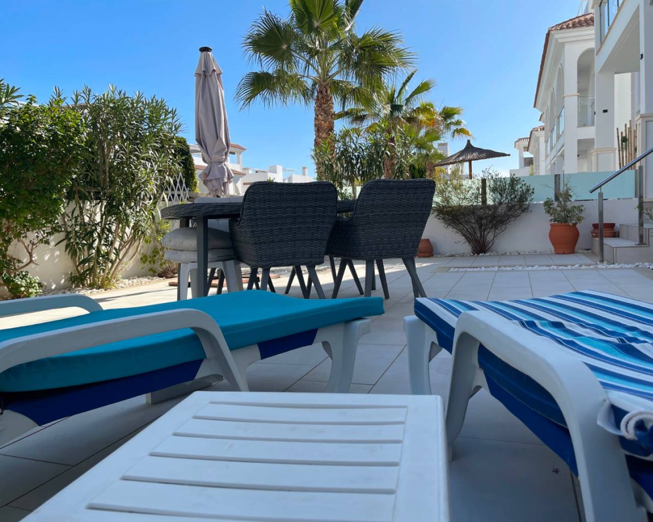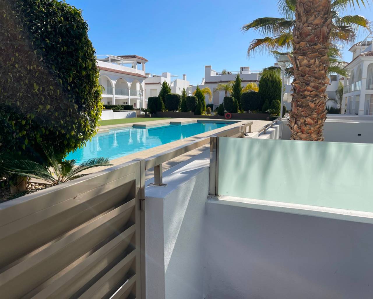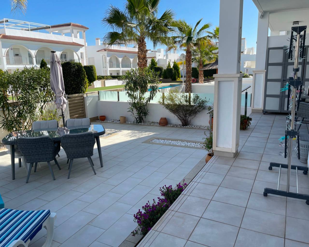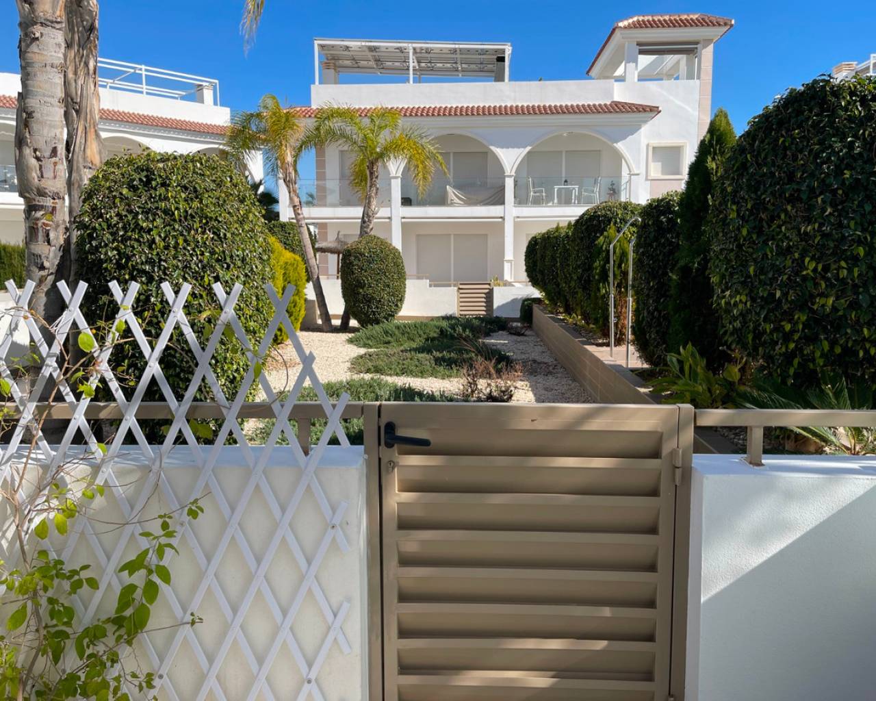 Gated residential complex of Mediterranean style flats with 2 bedrooms. Ideal for those looking for a comfortable and functional home to enjoy the climate and tranquillity of the Costa Blanca.Located in Ciudad Quesada, in Residencial Fortuna, you will have access to its beautiful green spaces and communal swimming pool, as well as enjoying your own outdoor spaces: a large garden of more than 140m2 in this case as it is a ground floor flat ideal for people with reduced mobility.The property comes with: Fitted wardrobes in all rooms. Electric blinds. Aluminium pergola to protect the car with the possibility of installing solar panels. Storage room of +/-5m2 for motorbike. An extra aluminium enclosure at the entrance of the house. Stainless steel ramp. Air conditioning by ducts. The property is delivered with the kitchen fully equipped with Siemens/Bosch appliances. This new residential is surrounded by quiet residential areas and wide avenues, and is within walking distance of all essential services: supermarkets, restaurants, health centre, pharmacies, golf course, dog parks and natural areas such as the Lagunas de Torrevieja... In addition, just 10 minutes away you can enjoy the best beaches of Guardamar and Torrevieja. Cities such as Alicante and its airport are only 35 minutes away by car.One of the last available ground floor units, don't miss it. Ideal property to live all year round or to create a passive source of income by being able to rent out the property for tourism, as this property is close to all that the Costa Blanca has to offer.