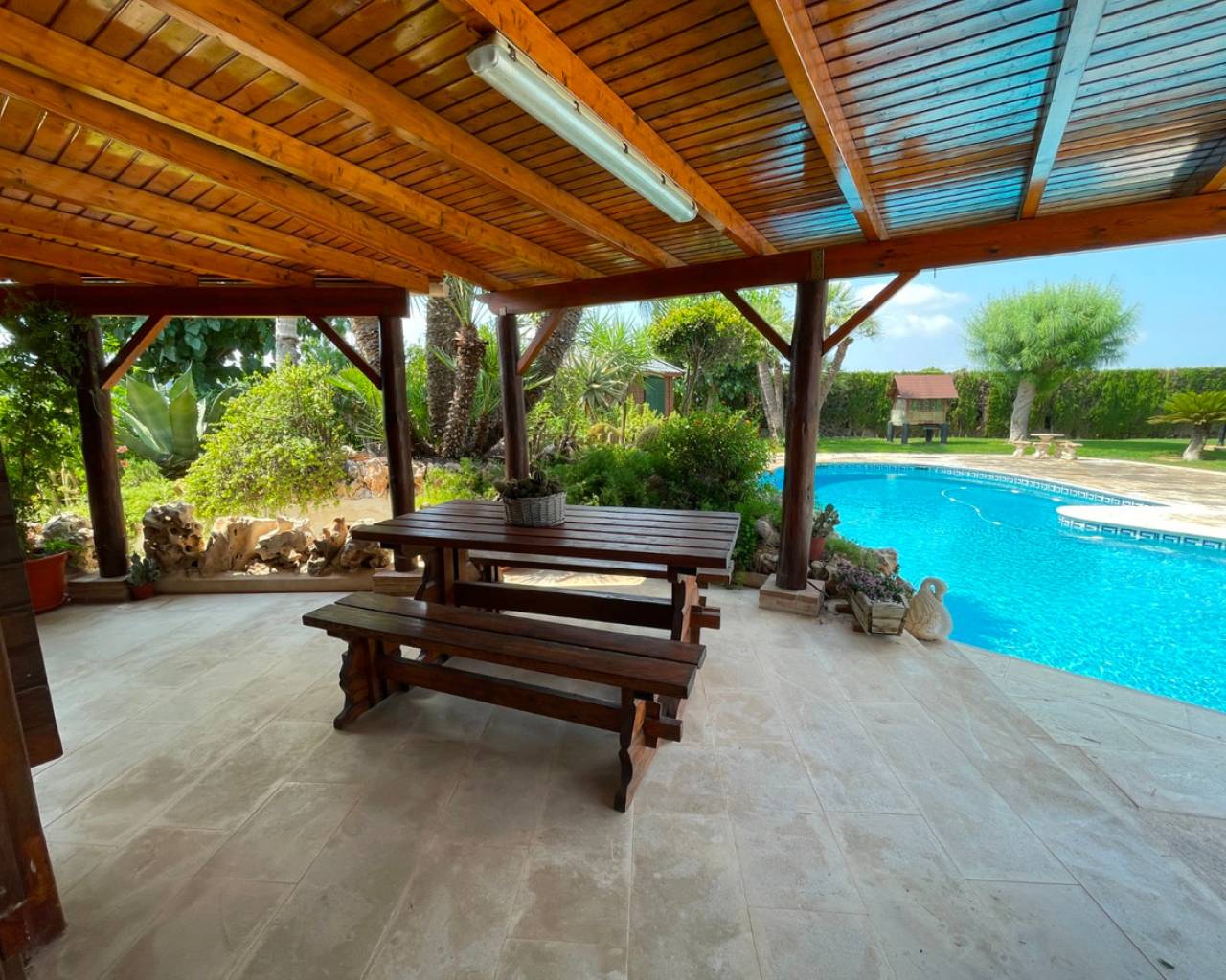 Exclusive Property with Swedish Wooden House, Pool, and Large Plot – San Fulgencio We present a unique and fully legalized property, located just a few kilometers from the beaches, ideal for those seeking privacy, space, and quality of life in a well-maintained natural setting.Set on a plot of over 3,400 m², this estate features a main Swedish wooden house of 165 m², in perfect condition. The house includes: 3 spacious bedrooms, 2 full bathrooms, A bright living-dining room with open-plan kitchen, And a large covered terrace of over 60 m², perfect for year-round outdoor enjoyment. Additionally, the property includes a charming separate wooden guesthouse with: 1 bedroom and 1 full bathroom, making it ideal for guests or even as a rental for additional income. ???? Auxiliary spaces and outdoors A 68 m² enclosed garage for two cars, A second 27 m² garage for additional parking, A 22 m² storage or workshop shed, A private 64 m² swimming pool in excellent condition, And various animal areas, including land prepared for horses and a fenced area currently housing geese and chickens. The property is fully fenced and surrounded by cypress trees, ensuring complete privacy and peace.In summary: This property is much more than just a house – it's an exclusive home, designed to enjoy every corner, with unique features that set it apart in the market. Ideal for families, nature lovers, rustic charm enthusiasts, or those seeking a private retreat with all amenities.A secure investment, move-in ready, with great potential as a tourist accommodation or multigenerational home.