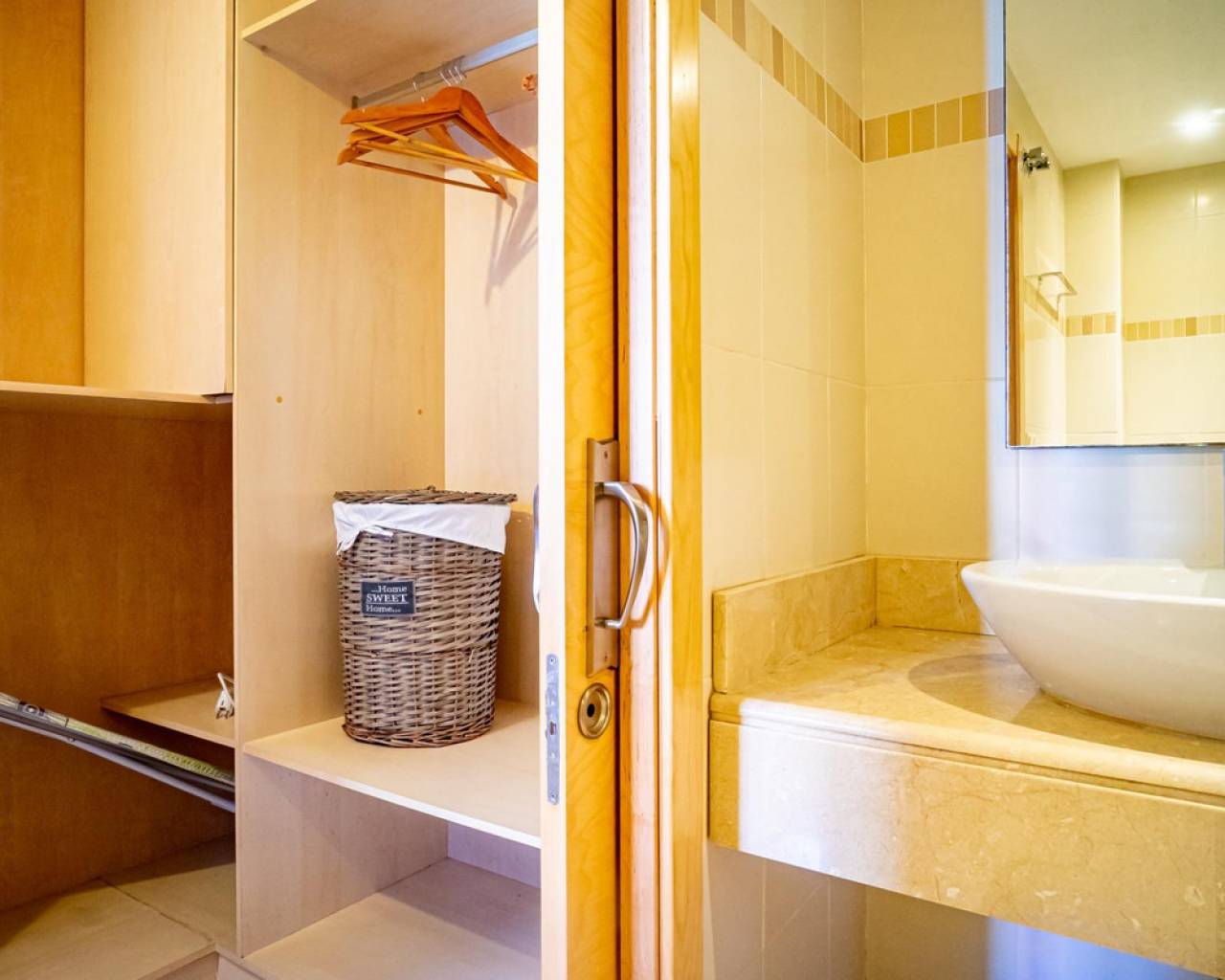 This cozy apartment is located in the popular urbanization of Montemar in Benissa. It features an open-plan kitchen, a living-dining room, two spacious bedrooms, and two bathrooms, one of them en suite. From the living room, you can access a large balcony with views of the pool and the mountains. On the second floor, there is a versatile space that can be used as an additional bedroom or an office, with access to a private terrace—perfect for sunbathing in complete privacy. The apartment is equipped with air conditioning (hot/cold), and the price includes a indoor garage space and a big storage room. The urbanization offers excellent facilities, including two outdoor pools, a children's pool, a heated pool, a sauna, and garden areas. It is situated in a peaceful area, it is 2,200 meters to the nearest beach, 900 meters to the nearest restaurant, 2,300 meters to the nearest grocery store, 6 minutes with car from a 9-hole golf course, and 10 minutes from Benissa and Moraira, where you will find all the necessary services.