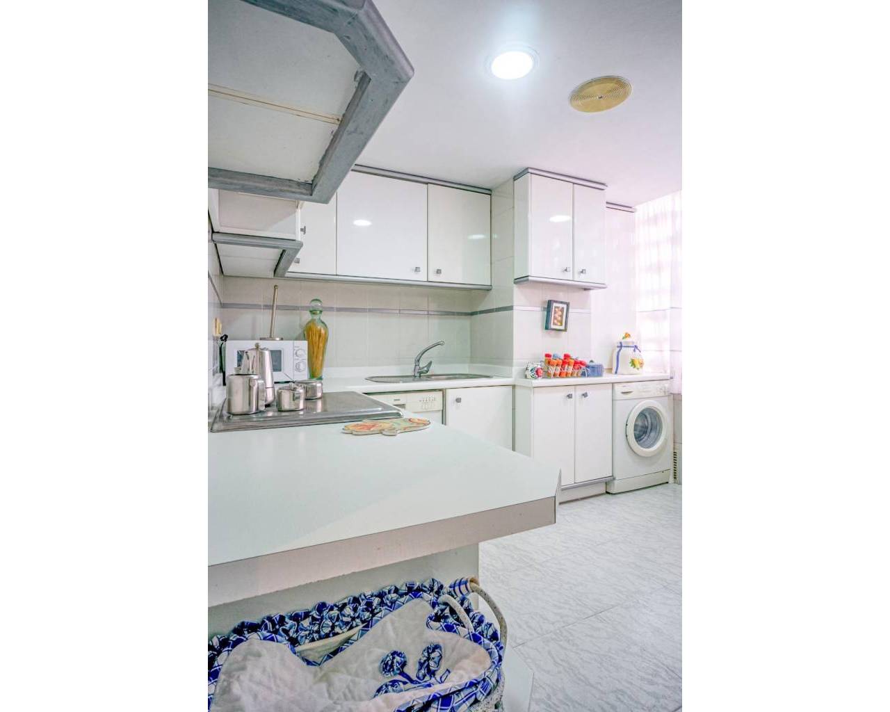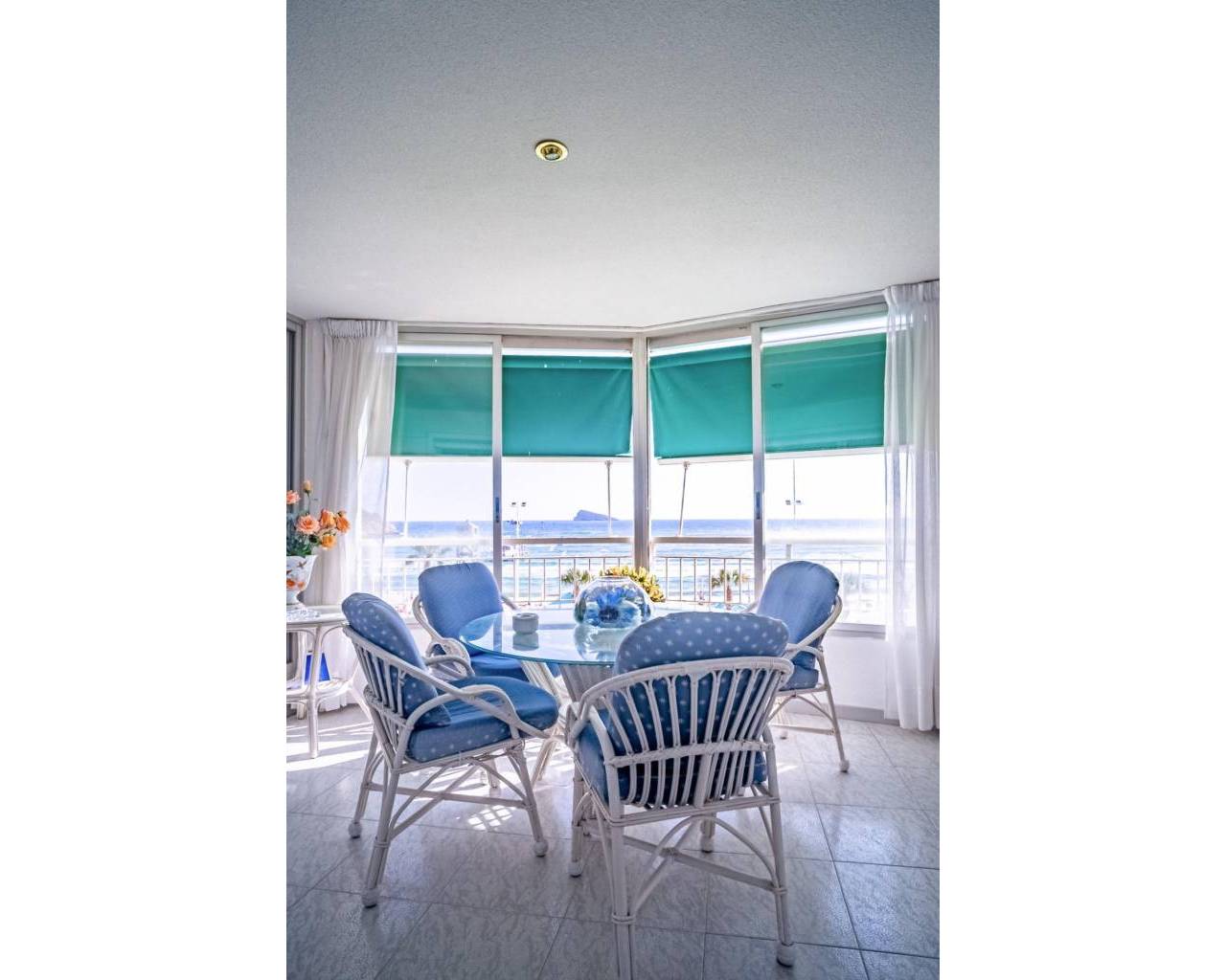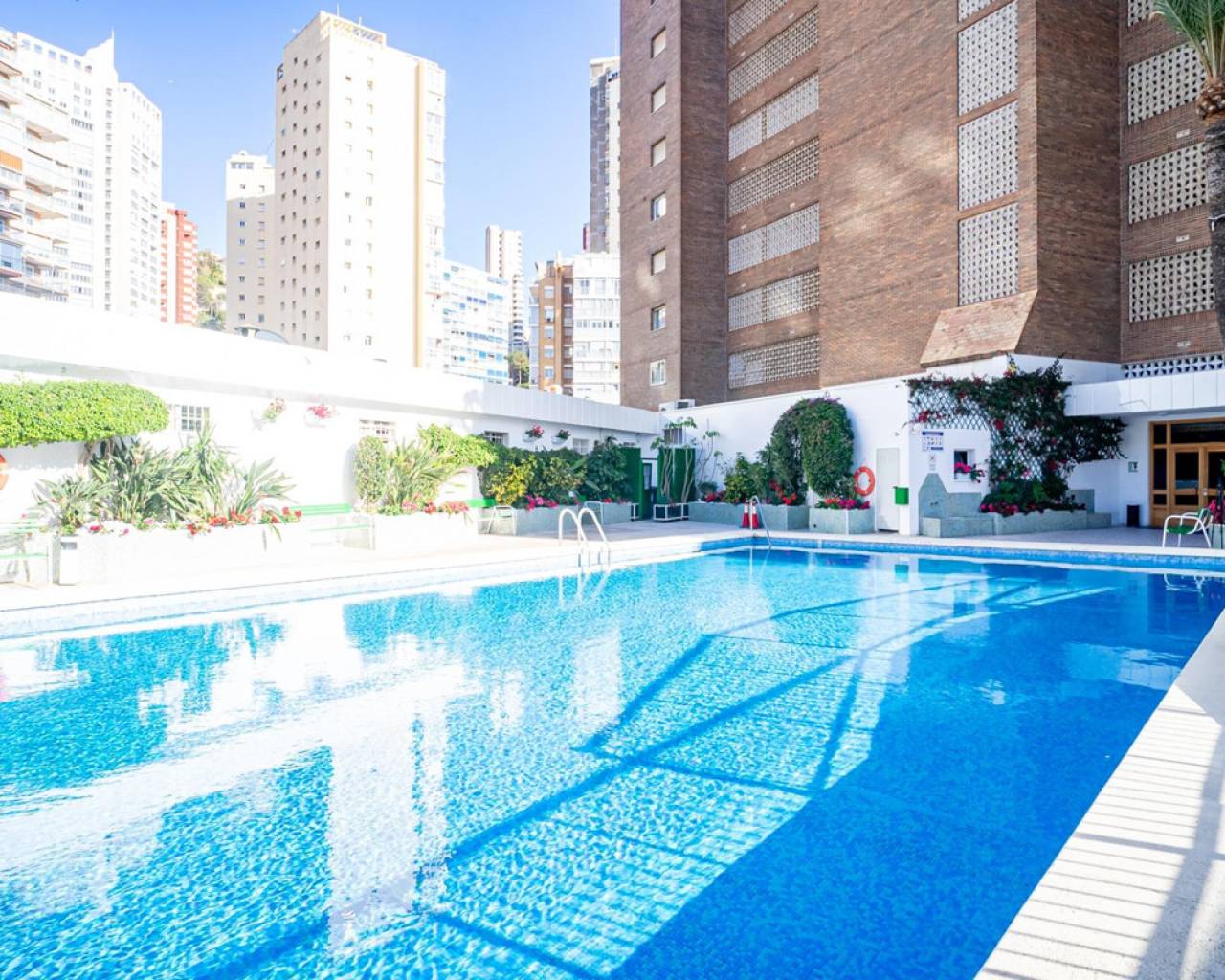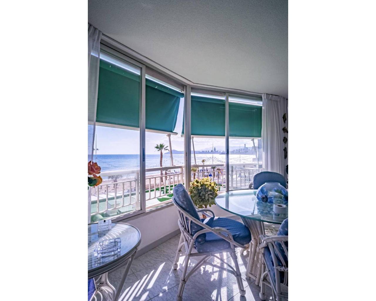 This corner apartment is located on the first line of Playa Levante in Benidorm. The apartment features an entrance, a spacious closed kitchen, 3 large bedrooms, and one smaller bedroom. One of the bedrooms has an en-suite bathroom. From two of the bedrooms and the spacious living room, you can directly access a very large glass-enclosed terrace with panoramic sea views. The terrace is used as an additional living room. The apartment is in good condition, and an unnumbered parking space is included in the price. The building offers a pool area with restrooms, and there is a concierge. From the apartment, you have all services nearby, not to mention the beach. It's a perfect choice for those who want comfortable living in the center of Benidorm