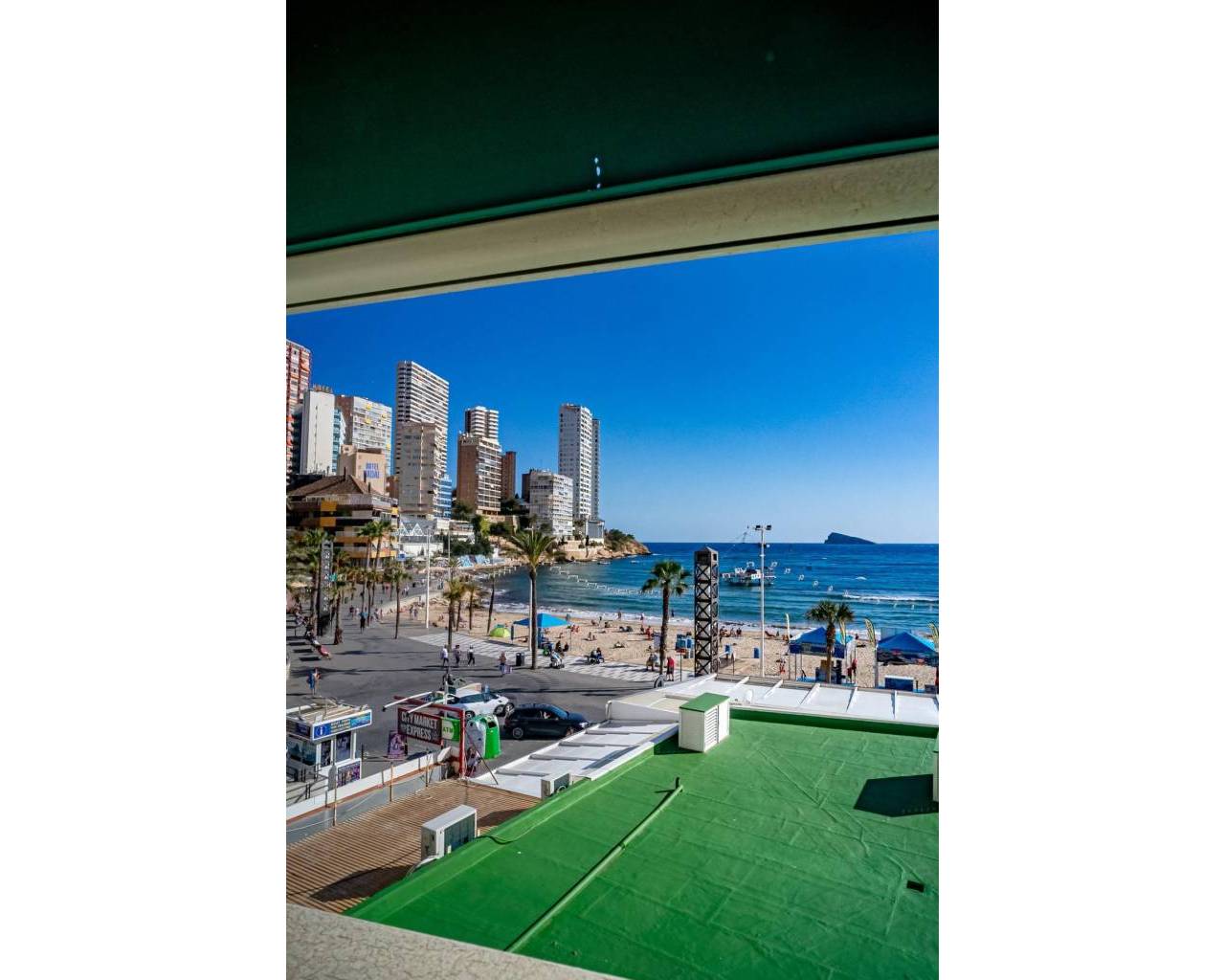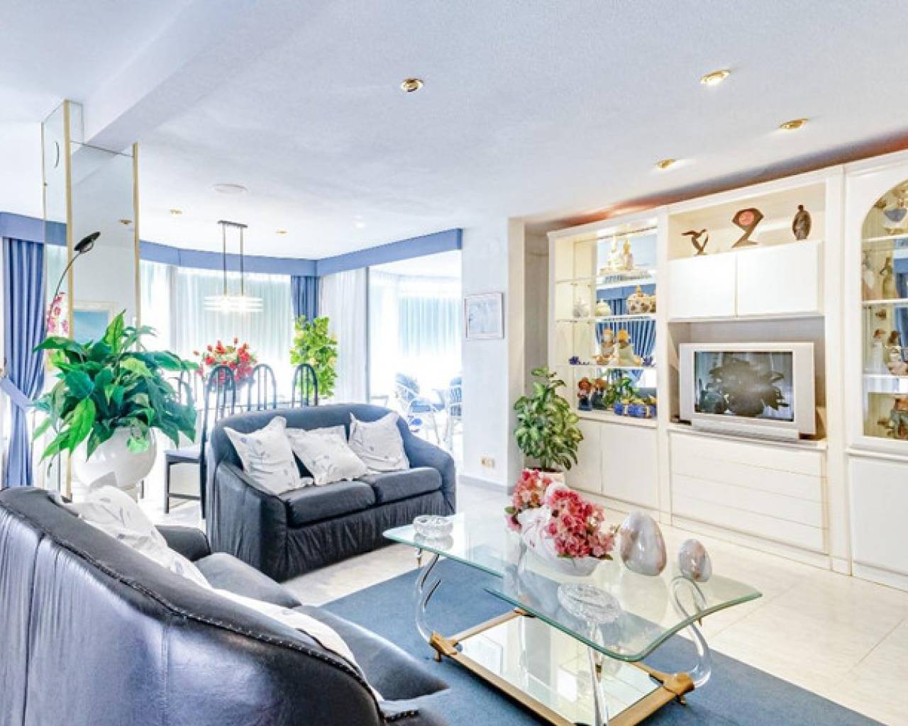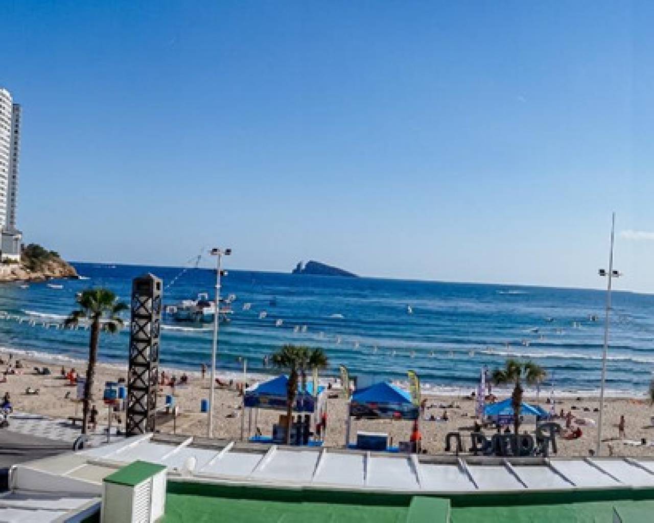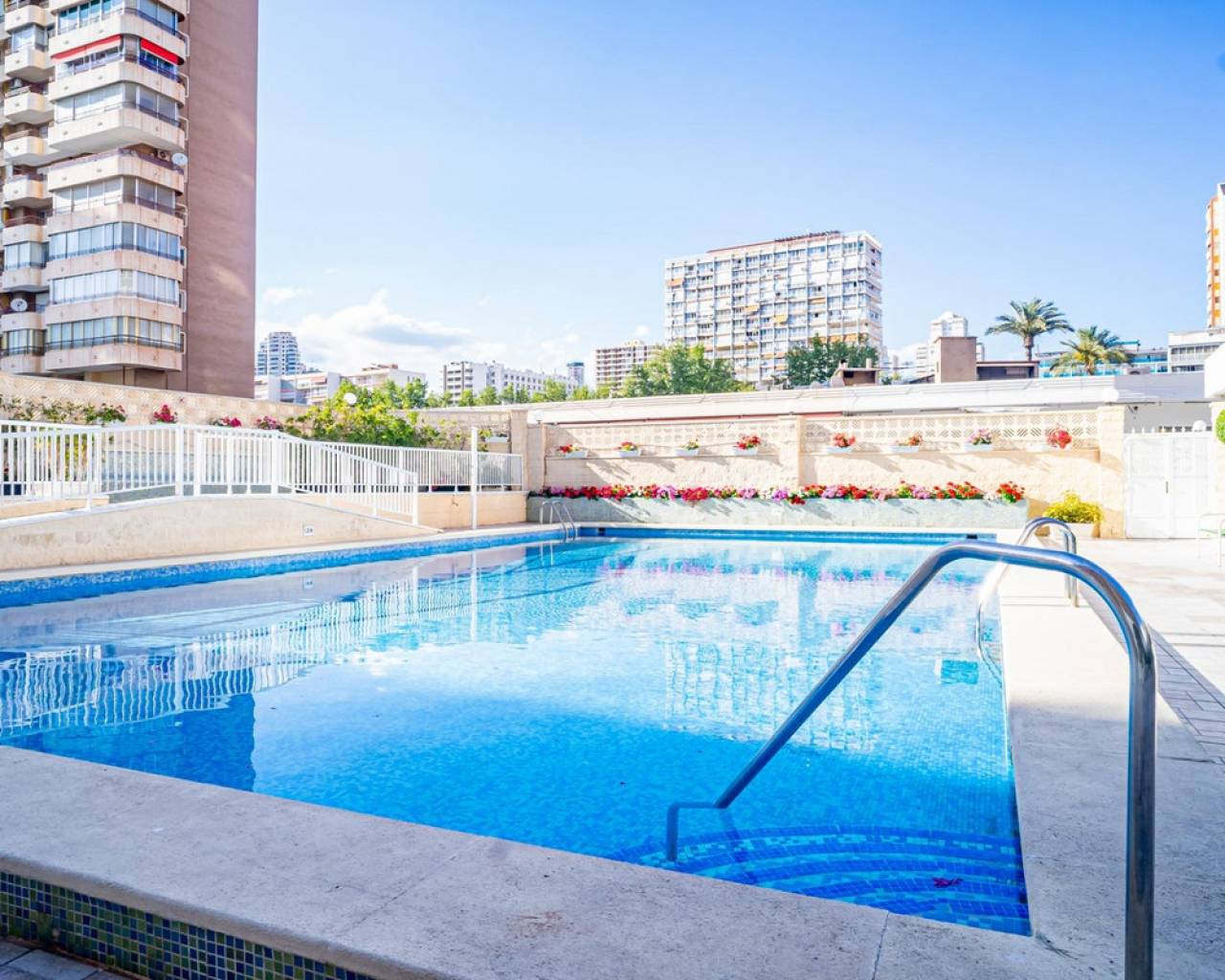 This corner apartment is located on the first line of Playa Levante in Benidorm. The apartment features an entrance, a spacious closed kitchen, 3 large bedrooms, and one smaller bedroom. One of the bedrooms has an en-suite bathroom. From two of the bedrooms and the spacious living room, you can directly access a very large glass-enclosed terrace with panoramic sea views. The terrace is used as an additional living room. The apartment is in good condition, and an unnumbered parking space is included in the price. The building offers a pool area with restrooms, and there is a concierge. From the apartment, you have all services nearby, not to mention the beach. It's a perfect choice for those who want comfortable living in the center of Benidorm