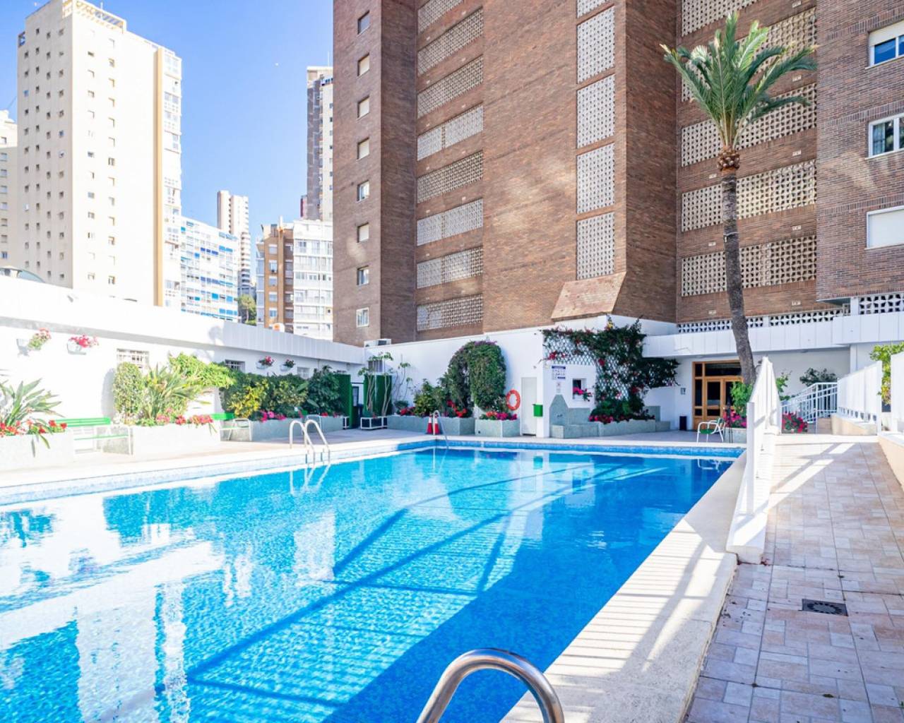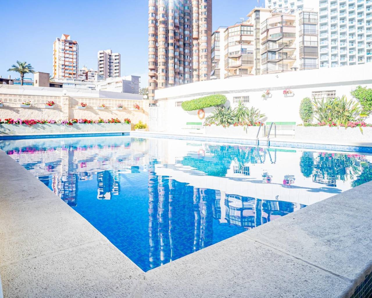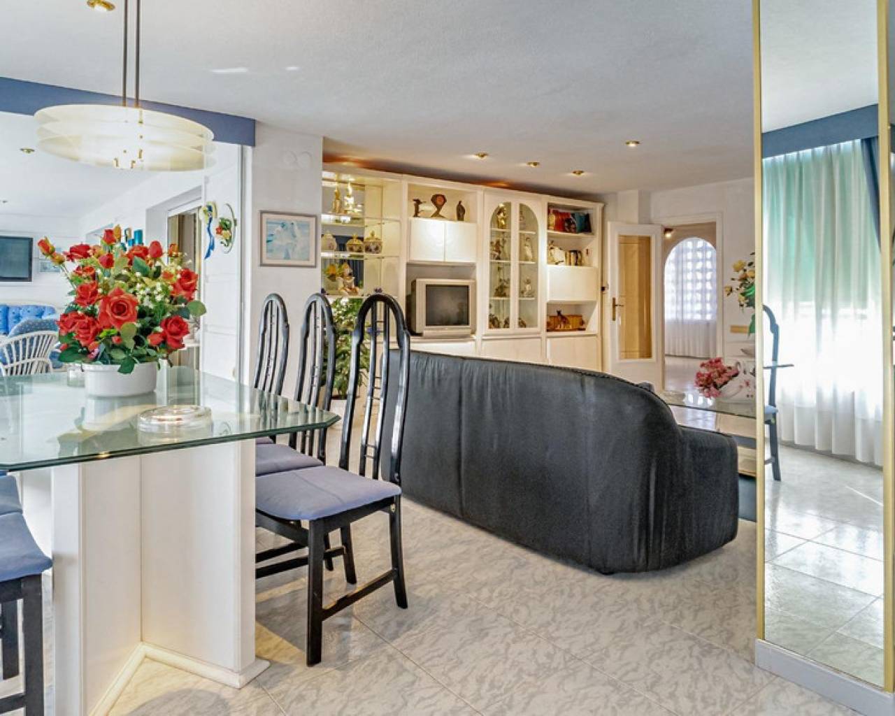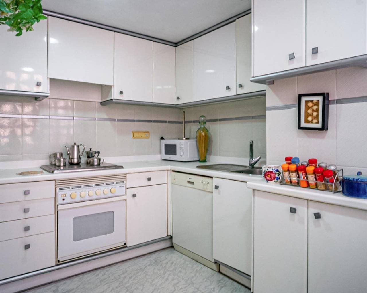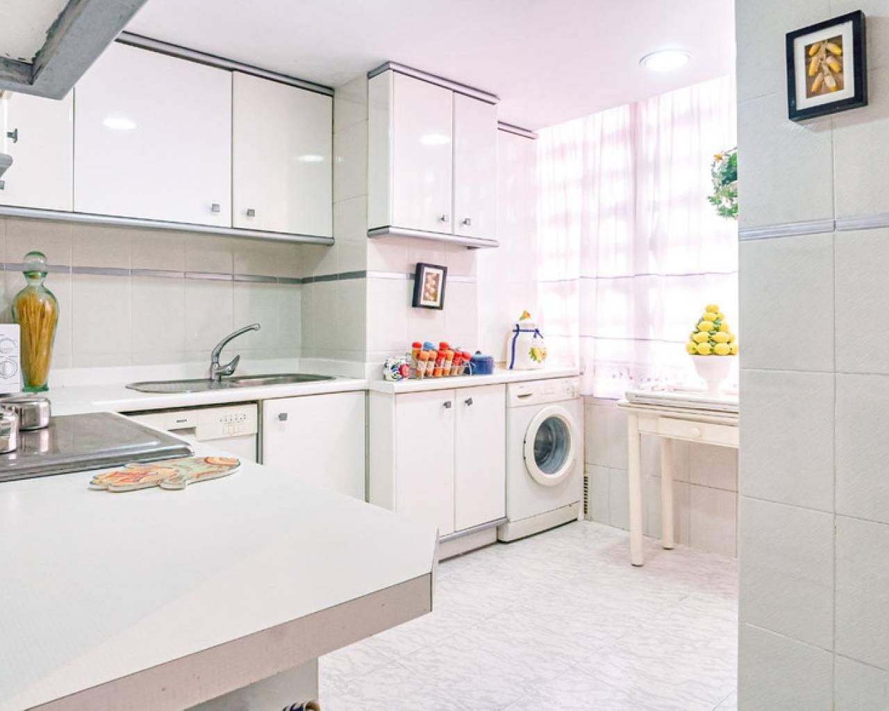 This corner apartment is located on the first line of Playa Levante in Benidorm. The apartment features an entrance, a spacious closed kitchen, 3 large bedrooms, and one smaller bedroom. One of the bedrooms has an en-suite bathroom. From two of the bedrooms and the spacious living room, you can directly access a very large glass-enclosed terrace with panoramic sea views. The terrace is used as an additional living room. The apartment is in good condition, and an unnumbered parking space is included in the price. The building offers a pool area with restrooms, and there is a concierge. From the apartment, you have all services nearby, not to mention the beach. It's a perfect choice for those who want comfortable living in the center of Benidorm