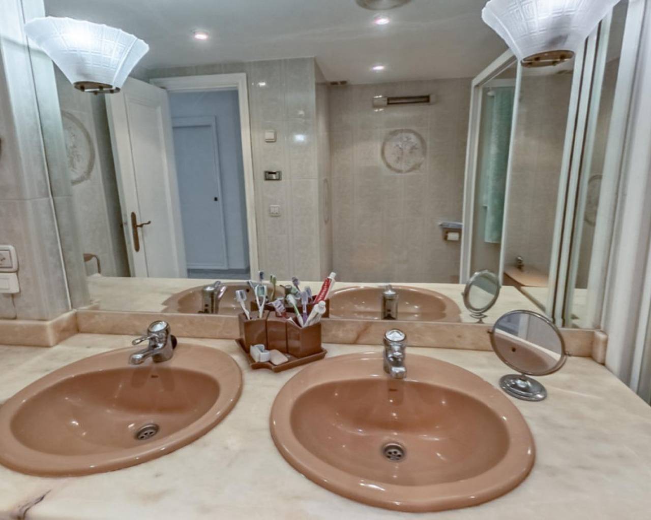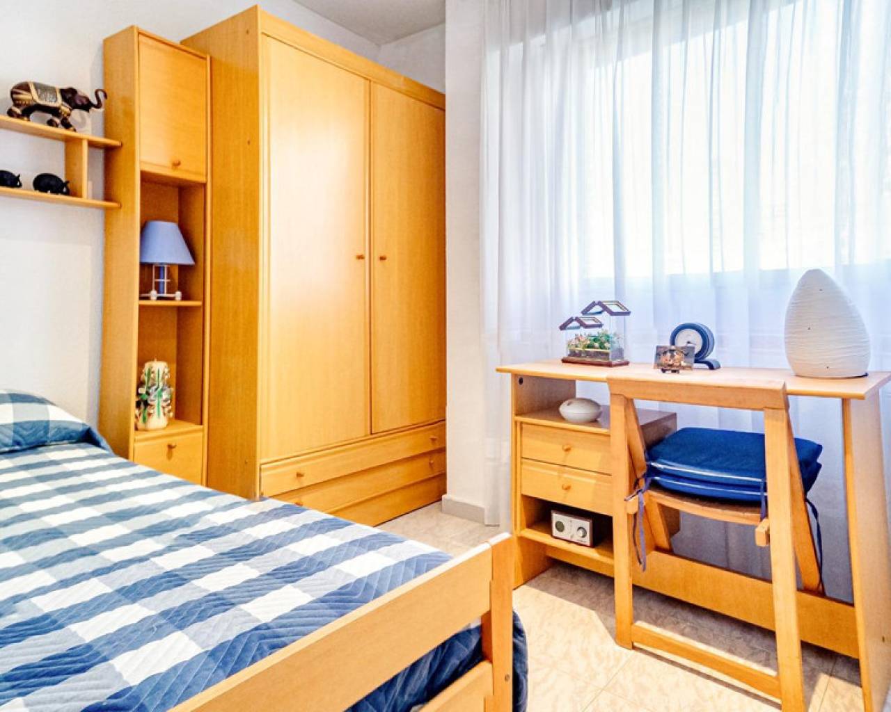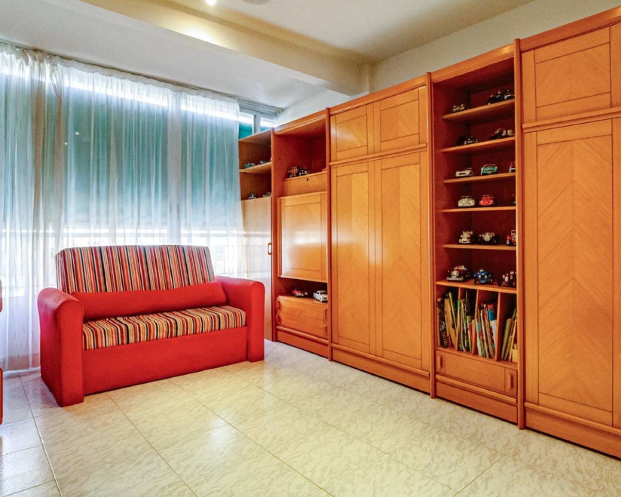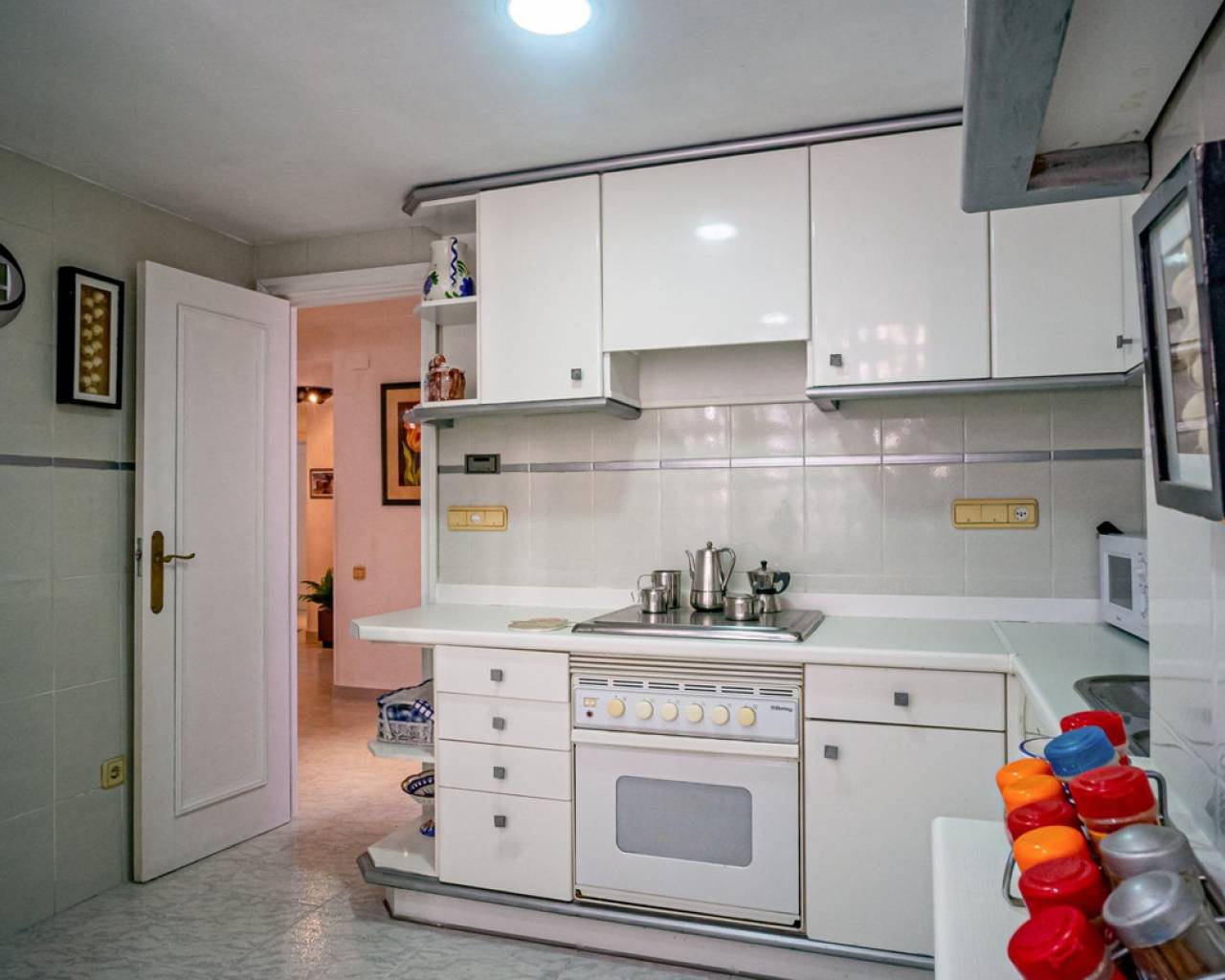 This corner apartment is located on the first line of Playa Levante in Benidorm. The apartment features an entrance, a spacious closed kitchen, 3 large bedrooms, and one smaller bedroom. One of the bedrooms has an en-suite bathroom. From two of the bedrooms and the spacious living room, you can directly access a very large glass-enclosed terrace with panoramic sea views. The terrace is used as an additional living room. The apartment is in good condition, and an unnumbered parking space is included in the price. The building offers a pool area with restrooms, and there is a concierge. From the apartment, you have all services nearby, not to mention the beach. It's a perfect choice for those who want comfortable living in the center of Benidorm