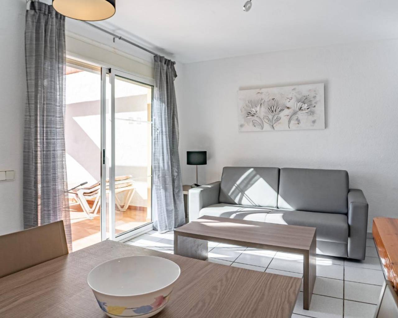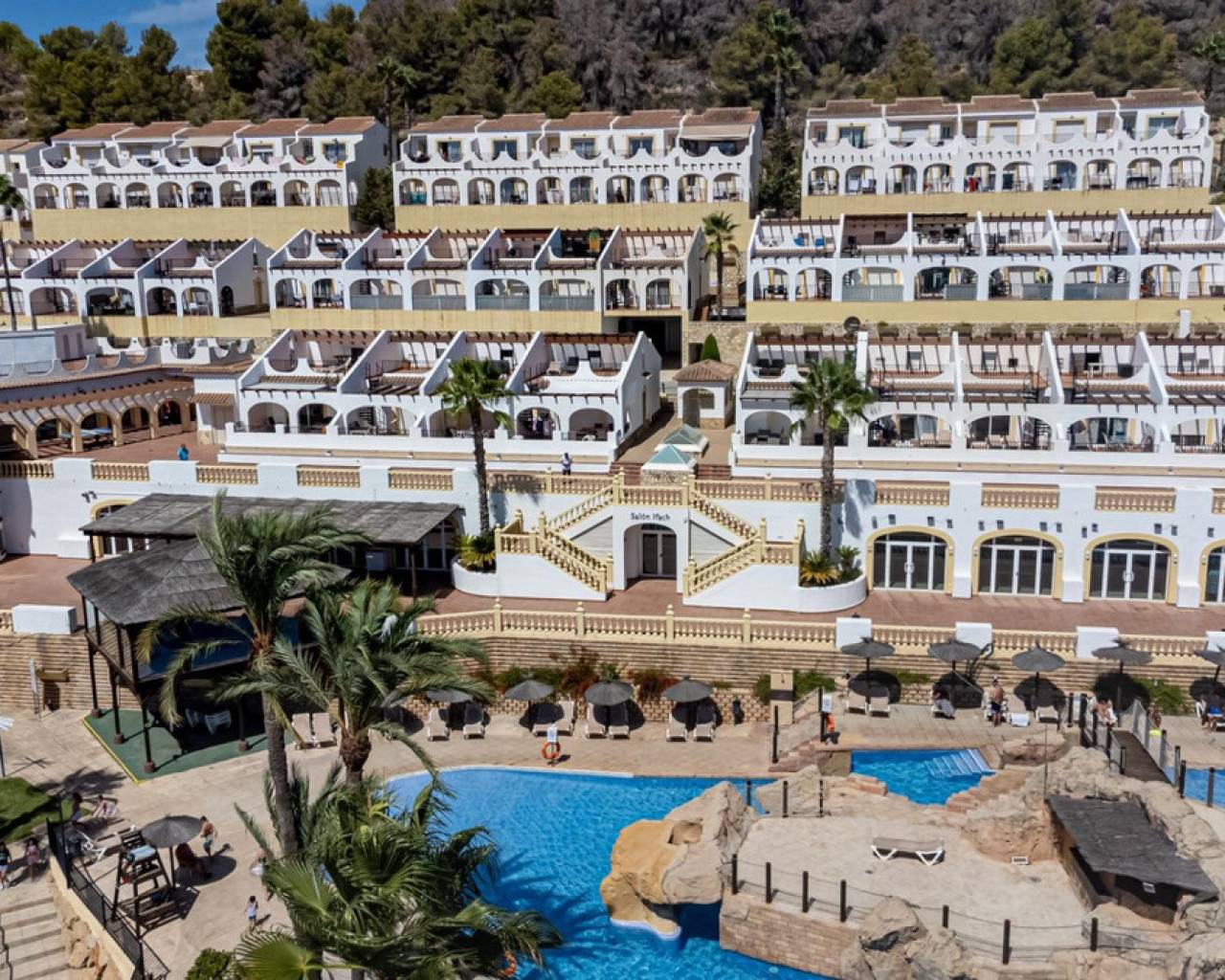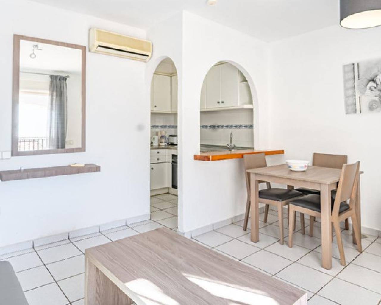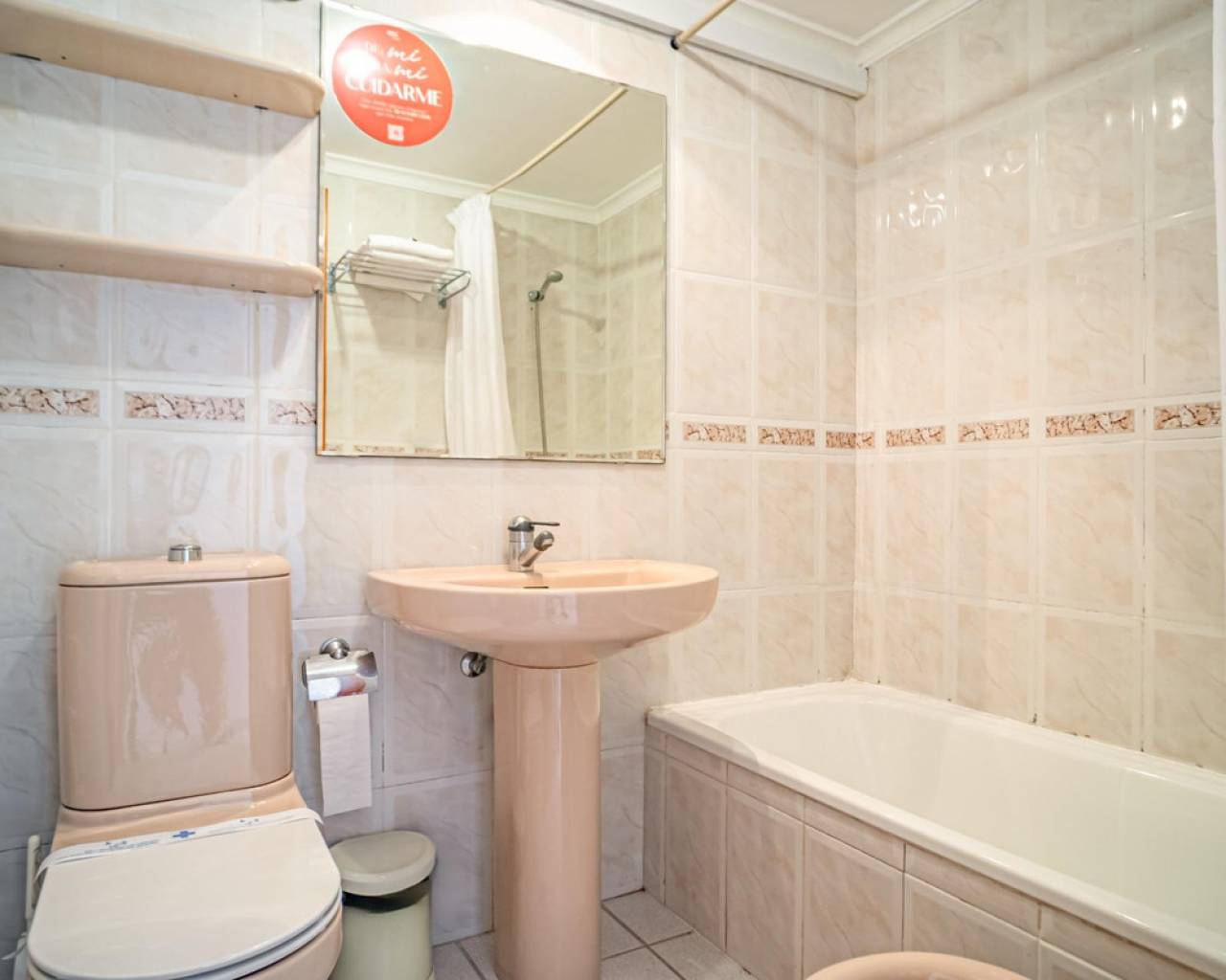 This apartment is part of a residential complex with 200 homes, located approximately 10 minutes from the center of Calpe and the sea. The apartment features a spacious bedroom, a full bathroom, a semi-open kitchen, and a living/dining room. From the living room, you can access a large terrace with stunning views of the sea and the Peñón (rock), and from this terrace, you can go up to a 23 m2 solarium. The apartment is sold furnished, has air conditioning with both heating and cooling, and includes parking. The property is in good condition, but it is in its original state and may require some updating. The complex includes a communal area with several swimming pools—one of which is open year-round—a café, and a reception that is open during the high season. Next to the complex, there is a large green area perfect for walks. This is the perfect apartment for someone looking for a peaceful holiday home, yet close to all amenities. It's also ideal for those looking to invest and rent it out, or rent it out during the times it is not in use.