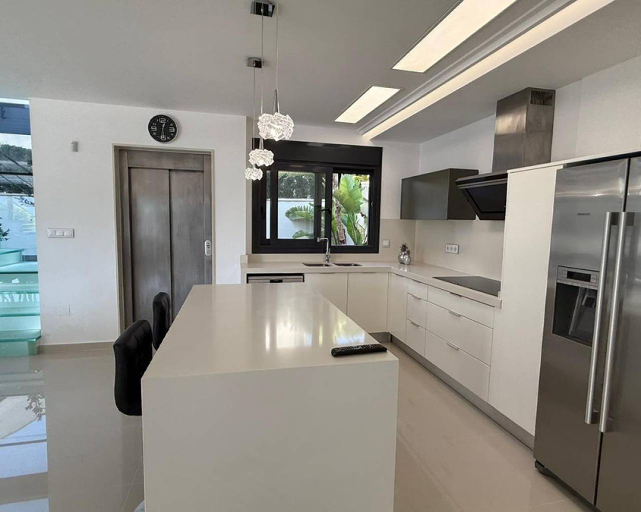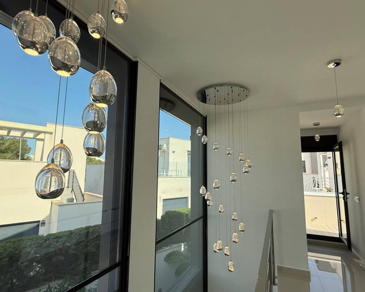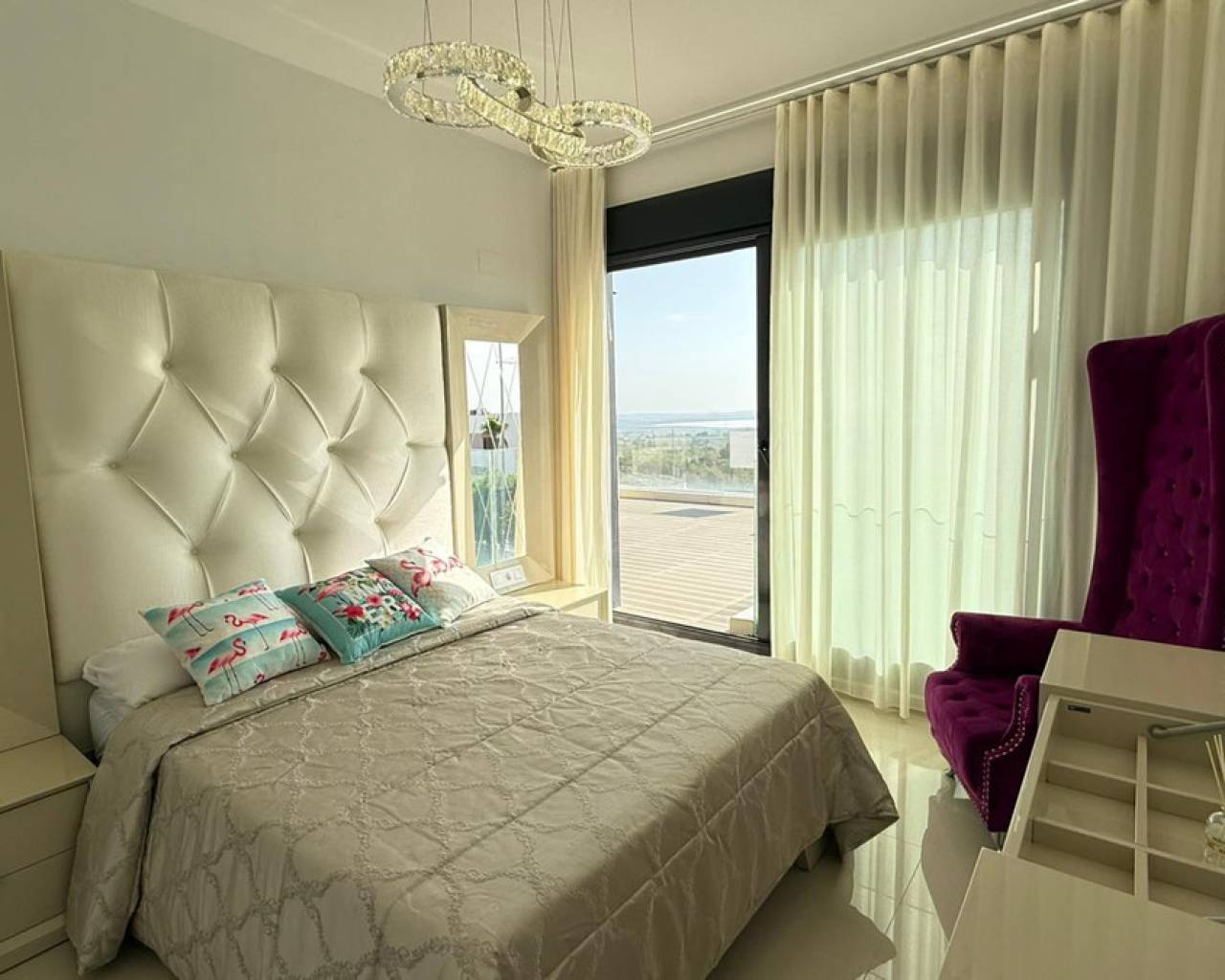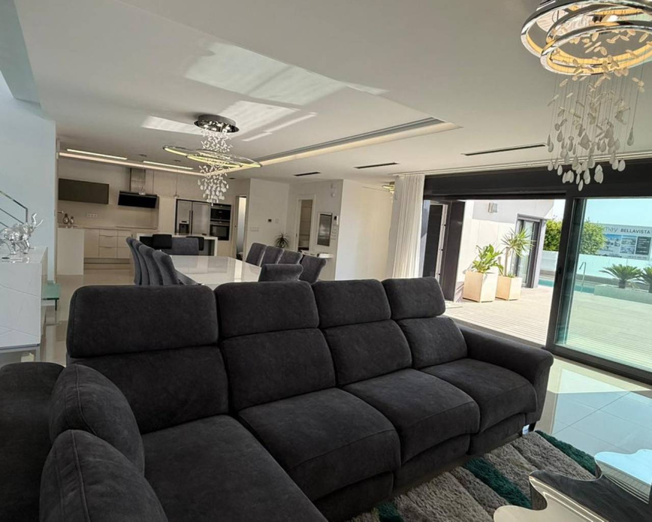This impressive newly built villa is spread across three floors, conveniently connected by an internal elevator and an elegant glass staircase with interior lighting, adding a modern and sophisticated touch throughout the home. Each level has been carefully designed to offer functionality, spaciousness, and maximum comfort. Ground Floor: The Heart of the Home Upon entering the house, you are welcomed by a bright and spacious open-plan living and dining area seamlessly integrated with a modern American-style kitchen featuring a central island — perfect for enjoying time with family or guests. On this same floor is the master bedroom, complete with an en-suite bathroom, providing privacy and comfort. You will also find a separate laundry room and a guest powder room. Everything has been thoughtfully designed to make daily living both stylish and practical. Basement: Leisure and Extra Space Descending to the basement, you'll discover a truly multifunctional area. There is a games room equipped with billiards and foosball for entertainment, as well as a lounge with a fully equipped kitchen — ideal for gatherings, celebrations, or even as a guest apartment. This floor also includes two additional bedrooms, a full bathroom, and two storage rooms, offering great versatility whether for storage, a home office, or extra relaxation space. First Floor: Restful Bedrooms with Views On the upper floor, there are two large bedrooms, each with access to private balconies that offer pleasant views. This floor also features two full bathrooms, ensuring each bedroom has its own space without the need to share. Top Floor: Dreamy Solarium with Stunning Views The house boasts a 70 m² solarium on the top floor — a perfect spot to relax, sunbathe, or simply enjoy the panoramic views of the surroundings. It's the ideal place to unwind at the end of the day or spend time outdoors. Exterior Features Outside, the home boasts a beautifully landscaped garden, featuring a beautiful private saltwater pool with a waterfall, a Jacuzzi and hydromassage area, and an outdoor shower. The plot also includes space for convenient parking for several vehicles and a practical outdoor kitchen, ideal for enjoying al fresco dining year-round. Additional Amenities The home is equipped with underfloor heating throughout, air conditioning, a pellet heating system, solar panels, and an electric water heater, making it efficient and comfortable year-round. It also features a comprehensive security system with sensors in every room and high-security locks. The villa is sold fully furnished (except personal belongings) with designer furniture, motorized sofas, new mattresses, and high-end appliances such as a steam oven with pyrolysis and an American-style fridge with regular and crushed ice dispenser. San Miguel de Salinas: Tranquil Living with All the Amenities. Located in the heart of the Costa Blanca, San Miguel de Salinas offers a relaxed lifestyle in a privileged setting. With a mild Mediterranean climate year-round, this town combines natural beauty with modern conveniences, including shops, restaurants, sports centers, and schools. Its close proximity to stunning beaches and prestigious golf courses makes it the perfect place to live or invest. Discover the peace, sunshine, and quality of life that San Miguel de Salinas has to offer.