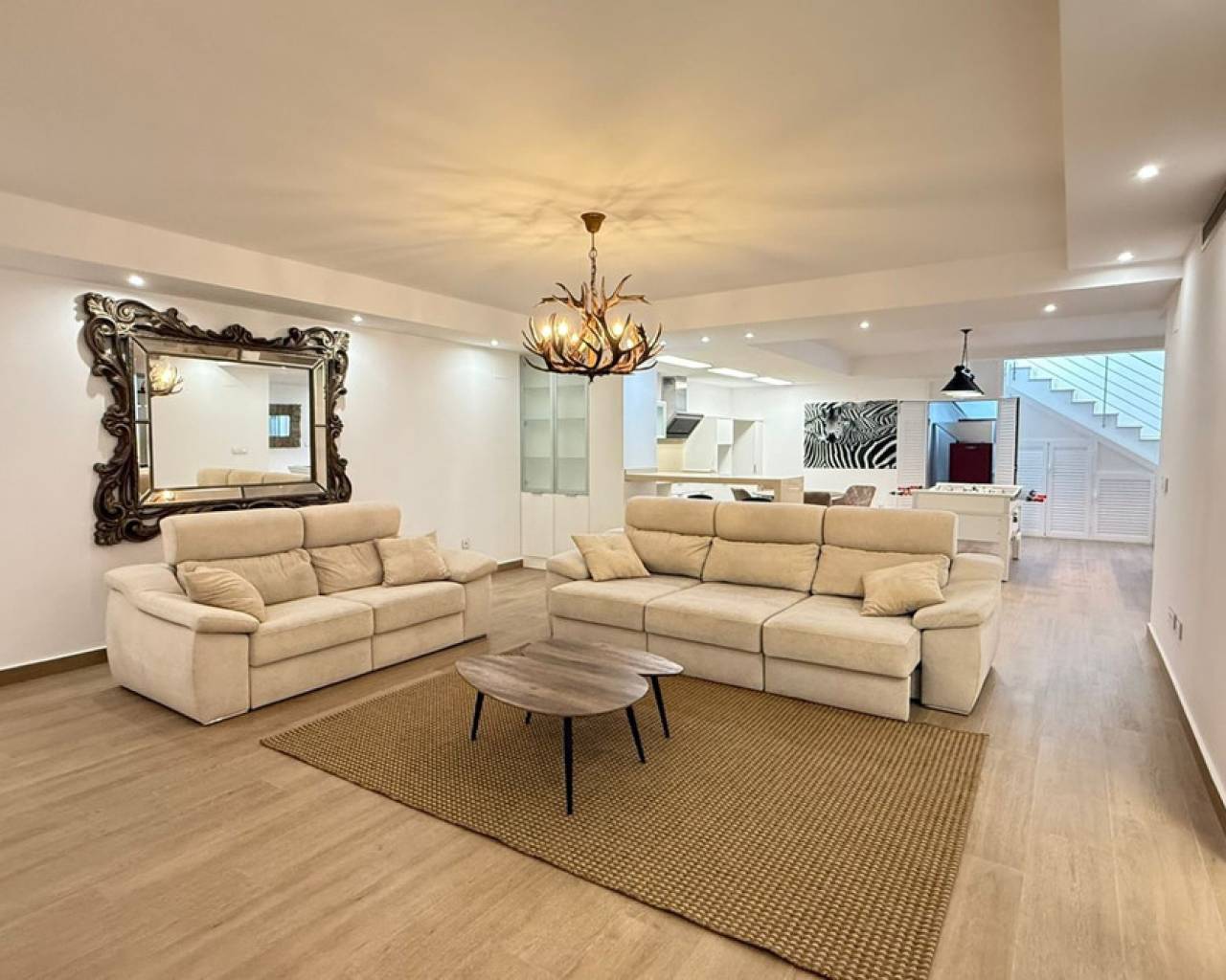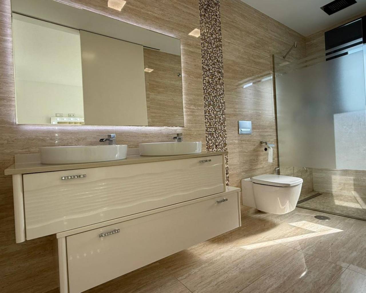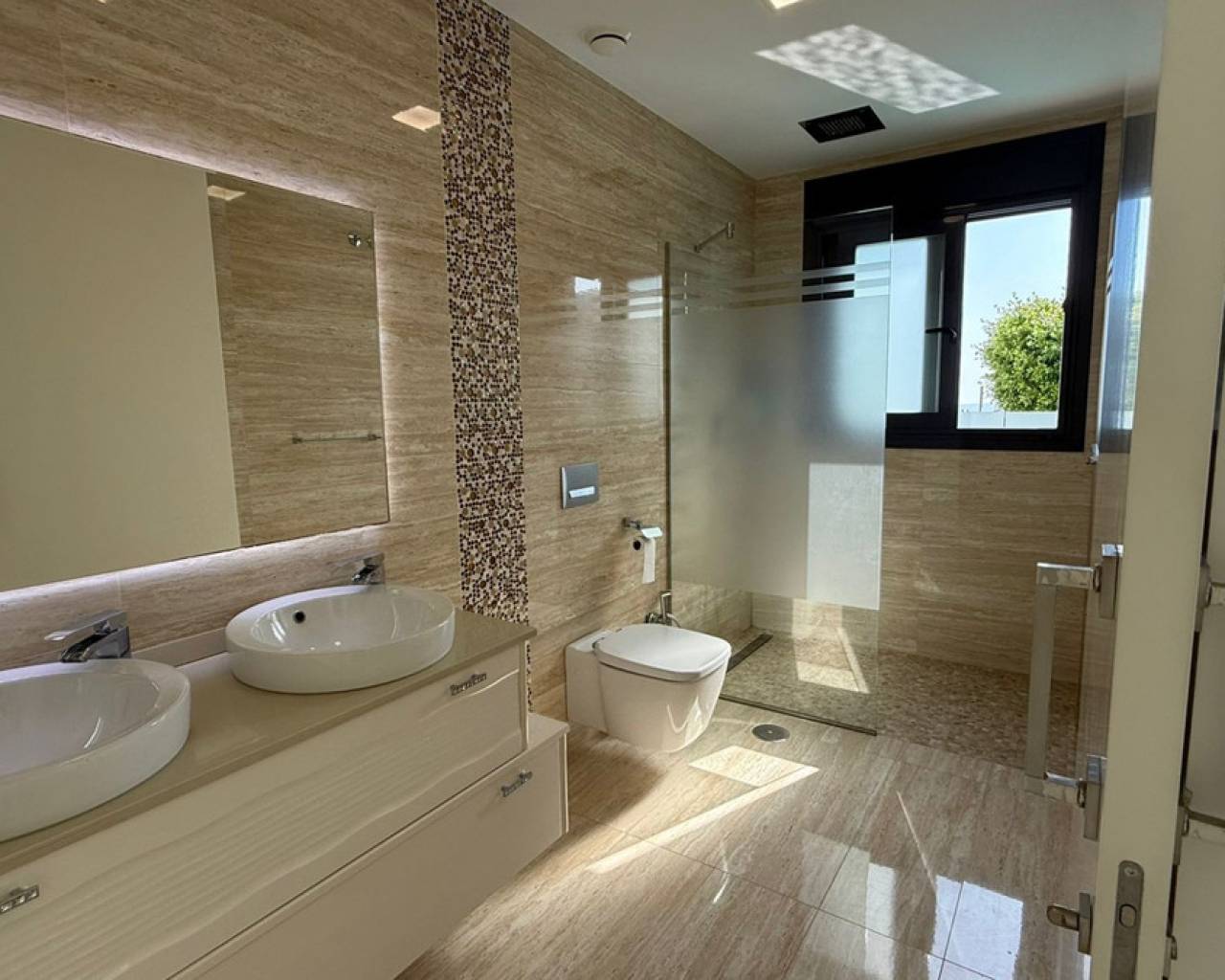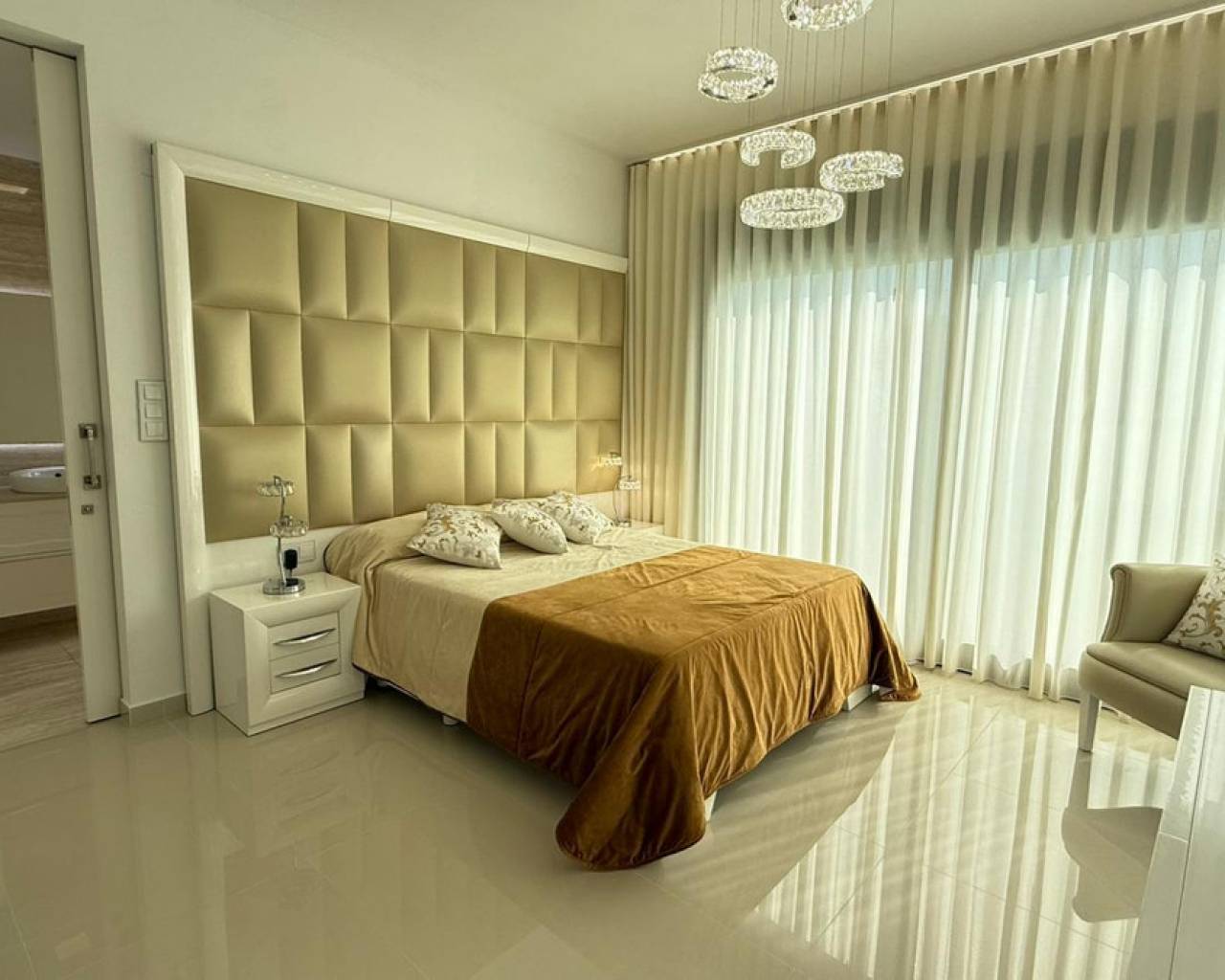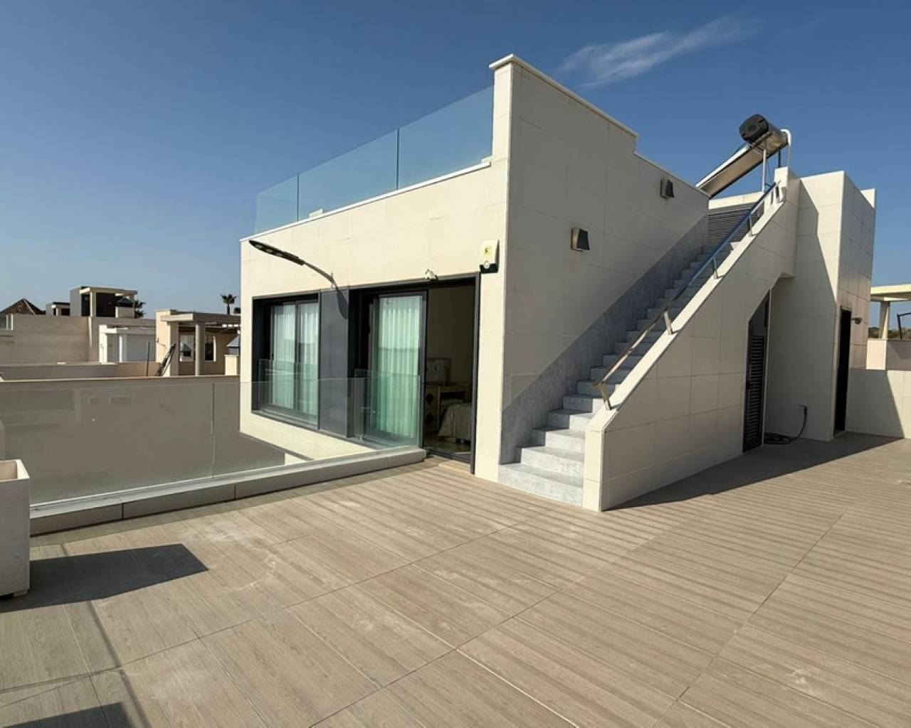 This impressive newly built villa is spread across three floors, conveniently connected by an internal elevator and an elegant glass staircase with interior lighting, adding a modern and sophisticated touch throughout the home. Each level has been carefully designed to offer functionality, spaciousness, and maximum comfort. Ground Floor: The Heart of the Home Upon entering the house, you are welcomed by a bright and spacious open-plan living and dining area seamlessly integrated with a modern American-style kitchen featuring a central island — perfect for enjoying time with family or guests. On this same floor is the master bedroom, complete with an en-suite bathroom, providing privacy and comfort. You will also find a separate laundry room and a guest powder room. Everything has been thoughtfully designed to make daily living both stylish and practical. Basement: Leisure and Extra Space Descending to the basement, you'll discover a truly multifunctional area. There is a games room equipped with billiards and foosball for entertainment, as well as a lounge with a fully equipped kitchen — ideal for gatherings, celebrations, or even as a guest apartment. This floor also includes two additional bedrooms, a full bathroom, and two storage rooms, offering great versatility whether for storage, a home office, or extra relaxation space. First Floor: Restful Bedrooms with Views On the upper floor, there are two large bedrooms, each with access to private balconies that offer pleasant views. This floor also features two full bathrooms, ensuring each bedroom has its own space without the need to share. Top Floor: Dreamy Solarium with Stunning Views The house boasts a 70 m² solarium on the top floor — a perfect spot to relax, sunbathe, or simply enjoy the panoramic views of the surroundings. It's the ideal place to unwind at the end of the day or spend time outdoors. Exterior Features Outside, the home boasts a beautifully landscaped garden, featuring a beautiful private saltwater pool with a waterfall, a Jacuzzi and hydromassage area, and an outdoor shower. The plot also includes space for convenient parking for several vehicles and a practical outdoor kitchen, ideal for enjoying al fresco dining year-round. Additional Amenities The home is equipped with underfloor heating throughout, air conditioning, a pellet heating system, solar panels, and an electric water heater, making it efficient and comfortable year-round. It also features a comprehensive security system with sensors in every room and high-security locks. The villa is sold fully furnished (except personal belongings) with designer furniture, motorized sofas, new mattresses, and high-end appliances such as a steam oven with pyrolysis and an American-style fridge with regular and crushed ice dispenser. San Miguel de Salinas: Tranquil Living with All the Amenities. Located in the heart of the Costa Blanca, San Miguel de Salinas offers a relaxed lifestyle in a privileged setting. With a mild Mediterranean climate year-round, this town combines natural beauty with modern conveniences, including shops, restaurants, sports centers, and schools. Its close proximity to stunning beaches and prestigious golf courses makes it the perfect place to live or invest. Discover the peace, sunshine, and quality of life that San Miguel de Salinas has to offer.
