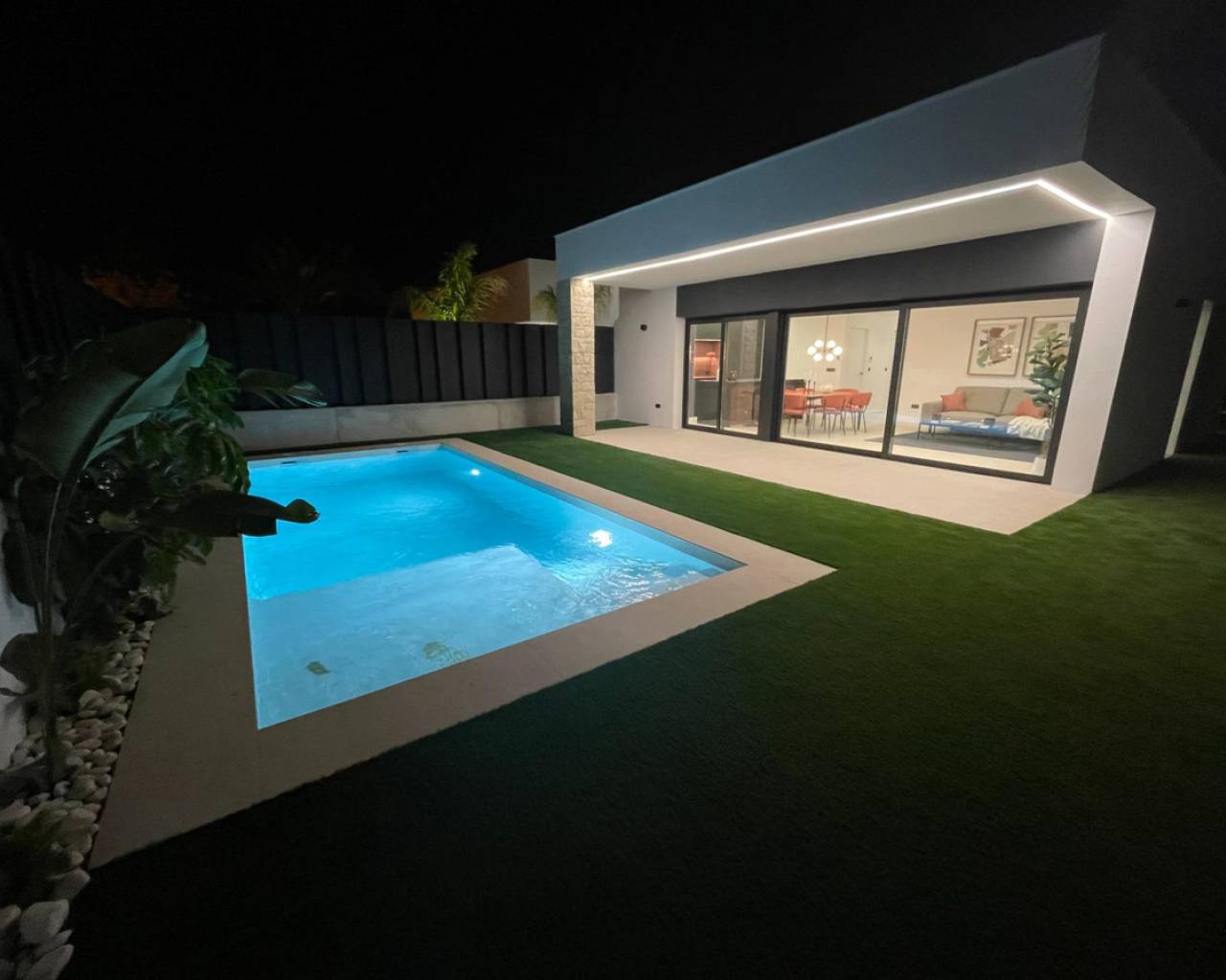 Charming single-story villa with 3 bedrooms and private pool Upon entering, you are greeted by a spacious, light-filled open-plan living and dining area that flows seamlessly into a modern, fully equipped kitchen. The home offers three bedrooms, including two generously sized at 10 m² and a master bedroom with an en suite bathroom. In total, there are two full bathrooms and a dedicated laundry room, providing functionality and comfort. The villa sits on a 327 m² plot, offering generous outdoor space for relaxation and entertaining. A 20 m² covered porch provides a shaded area for outdoor dining, while a private 18 m² swimming pool invites you to enjoy the sunny days. The property also includes a parking area within the plot for added convenience. The price includes a 6x3 meter private swimming pool, a fully equipped kitchen with white goods, natural stone details on the facade, modern bathrooms with quality fixtures, and built-in wardrobes in the bedrooms. Constructed with high-quality materials and fine finishes, this home blends modern design with practical living in a peaceful and serene environment. LOCATION: La Quinta at La Manga Club is nestled within the expansive La Manga Club resort in the Region of Murcia, southeastern Spain. This exclusive area is renowned for its luxurious accommodations, world-class sports facilities, and picturesque Mediterranean landscapes. Situated on a hillside, La Quinta boasts 46 Andalusian-style villas surrounded by lush tropical gardens. The location offers panoramic views of the resort and the nearby Mar Menor lagoon. Guests can enjoy a tranquil environment while being just minutes away from the resort's central amenities, including the Racquets Club and various shopping centers like Bellaluz, La Plaza, and Las Sabinas . Should you have any question do not hesitate to contact us!
