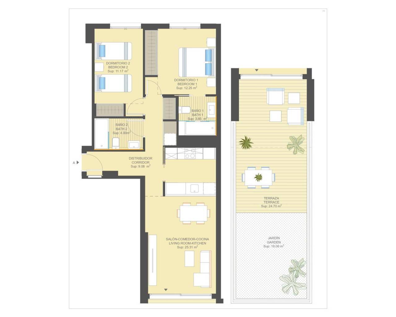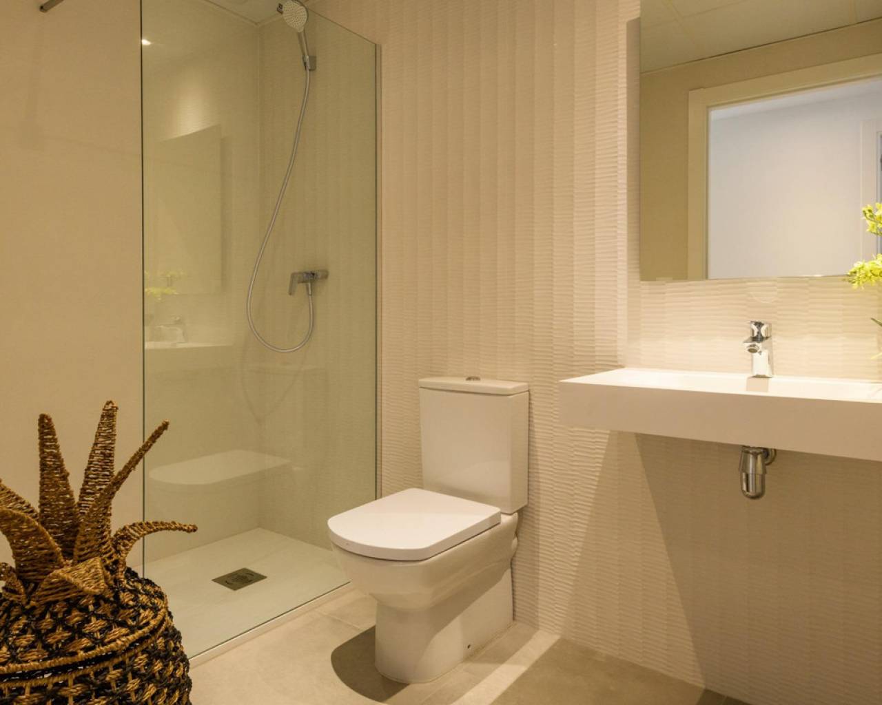 2 bedroom apartment in the the closed complex close to the beach in Dehesa de Campoamor Welcome to this new Residential in Campoamor, the home where you can live the life you have always dreamed of with the most beautiful horizon in the background: the Mediterranean. Apartment with 2 bedrooms,2 bathrooms, a living area connected to an open-plan kitchen equipped with modern appliances, a large terrace. There are also 3 bedroom apartments available. You will be able to enjoy green areas for strolling and sunbathing. The communal areas include a large indoor heated swimming pool, a chill out area on the roof terrace, as well as a sports area to enjoy outdoor exercise, a gym, a children's play area and a large outdoor swimming pool together with a smaller one for children and a gourmet room. And because we know you'll love cycling in the area, we've set aside space for bike storage. There is an option to buy a parking plot and a storage room. LOCATION: The Residential is located in the highest part of Campoamor, very close to La Glea beach and the marina. Just 1000 m from the beach and a short drive from shopping centres, famous golf courses, restaurants with exquisite gastronomy and major cities such as Alicante and Murcia just 1 hour away. And all this in a climate with 300 days of sunshine a year and almost 20ºC average annual temperature. The perfect place for your holidays or to establish your permanent residence. Dehesa de Campoamor is surrounded by beautiful beaches such as La Zenia, Cabo Roig, Mil Palmeras or Punta Prima. This town has 2,500 meters of coast divided into three beaches with fine white sand. The beach of La Glea, which is the one that receives more visitors and is equipped with all services for lovers of water sports. There is also a paddle tennis and tennis club, where you can enjoy a sunny day or enjoy a drink in any of its bars and restaurants, making this beach the most lively and cosmopolitan in the area. At Orihuela Costa, golf enthusiasts come here all year long for the great quality of their golf courses as well as those who are passionate about their parties and events (Moors and Christians, Medieval Market, Saint Patrick's Day, etc.). Easy access by highway, and good public transport network. The closest hospital is the Hospital Universitario de Torrevieja (8 km away) and within minutes you can find the Hospital Quirónsalud Torrevieja. It is also close to airports such as Region of Murcia International Airport (35 km away) and Alicante Airport (47 km away). Should you have any question do not hesitate to contact us!