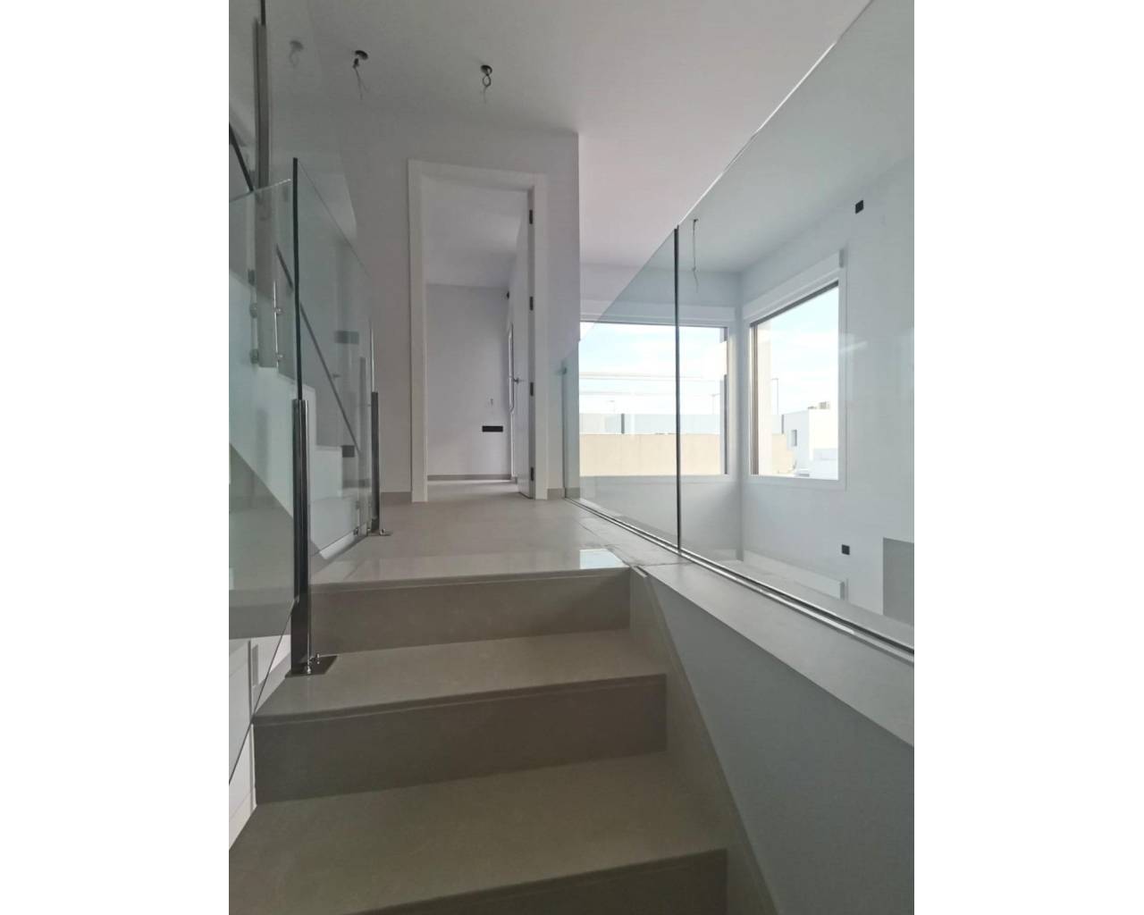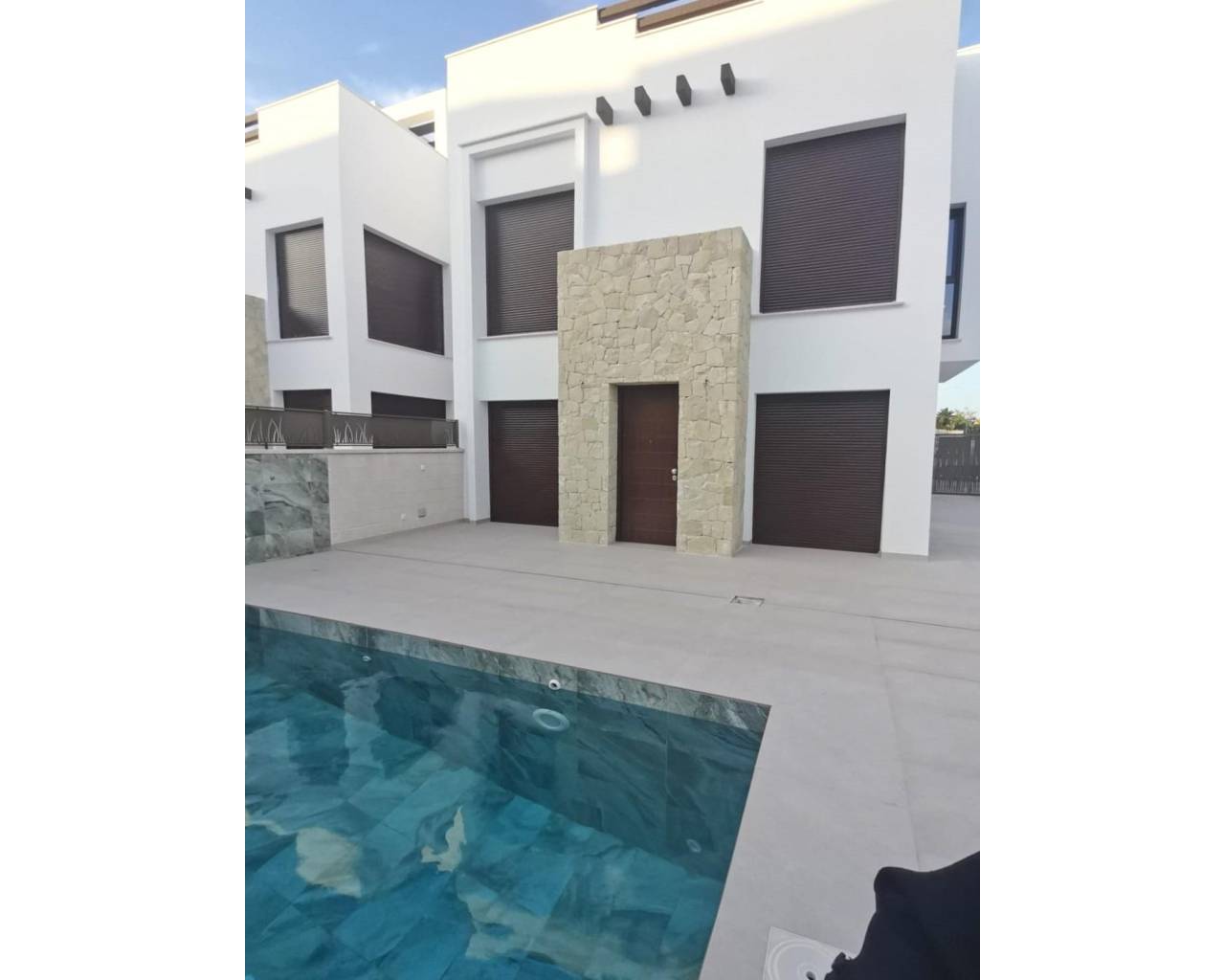 Nice and bright 3 bedroom villa with swimming pool and solarium in Los Montesinos On the ground floor, the heart of the home is a large open space that integrates the living room, dining room and kitchen, bathed in natural light thanks to its large windows that connect directly to the outside. The kitchen, equipped with a central island and state-of-the-art appliances, is ideal for day-to-day living as well as for special moments with friends and family. On this same floor there is also a bedroom and a complete bathroom. From here there is access to an outdoor area with a private swimming pool, a gallery with a laundry room and a storage space. On the first floor there are two en-suite bedrooms, each with its own bathroom, which guarantees privacy and comfort, and the layout allows for pleasant views of the garden or the surroundings from each room. The roof floor offers a spectacular 52 m² private solarium, a true oasis with an auxiliary kitchen, chill-out area and jacuzzi, ideal for relaxing at sunset or enjoying outdoor gatherings under the starry sky. The villa also has a parking space, which provides comfort and security in the day to day life. This villa represents a perfect fusion of modern design, functionality and pleasure, ideal both as a permanent residence and as a relaxing getaway. LOCATION: Los Montesinos is a charming municipality located in the heart of the Vega Baja del Segura region, in the province of Alicante. Surrounded by agricultural fields, salt pans and nature, this picturesque village combines the tranquillity of the rural environment with the proximity to the beaches of the Mediterranean. With its lively streets, welcoming squares and warm and hospitable community, Los Montesinos offers a relaxed lifestyle, ideal for both residents and those looking for a sunny spot to relax. Its traditional atmosphere, combined with modern amenities and good connections to cities such as Torrevieja and Alicante, makes it an increasingly popular place to live or invest. Alicante-Elche International Airport is only a 40 minute drive away, making it easy for both tourists and international residents to arrive. Murcia Airport (Región de Murcia International Airport) can also be reached in approximately 45 minutes. If you have any questions, please do not hesitate to contact us!
