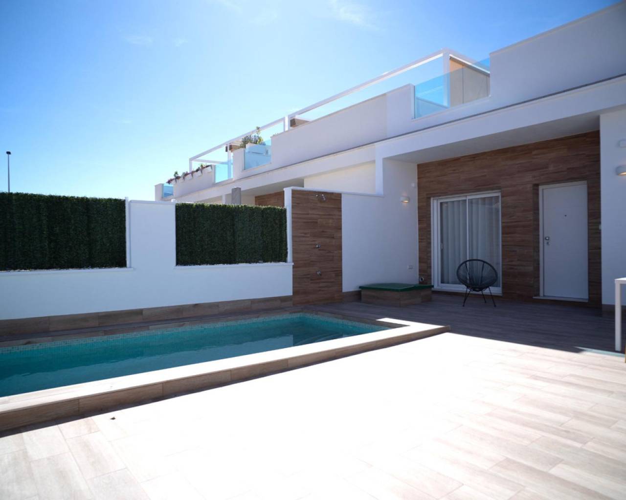 Wonderful 2-bedroom townhouse with swimming pool, solarium and parking in San Javier Entering into this townhouse is like discovering a home designed for everyday enjoyment. The exterior welcomes you with a private space where your car is protected and the swimming pool invites you to cool off on sunny days. On the ground floor, life flows comfortably: two well-distributed bedrooms offer the rest that every family needs, while the two bathrooms provide functionality and comfort. The spacious and bright living room joins the open kitchen to create a perfect living space, where gatherings feel natural and light accompanies every corner. The upper floor surprises with a large solarium. There, time stands still between outdoor breakfasts, afternoons of reading or dinners with friends under the open sky. LOCATION: San Javier is a privileged corner of south-eastern Spain, located on the shores of the Mar Menor in the Region of Murcia. Strolling through its streets conveys the calm of a coastal town that combines seafaring tradition with a modern lifestyle, surrounded by quiet beaches and a mild climate all year round. Its location is one of its greatest attractions. Just 35 km away is the city of Cartagena, with its historic port and Roman heritage, while the city of Murcia is about 47 km away, offering the cultural and commercial life of a large city. It is also easily connected to Torrevieja (about 35 km away) and the tourist area of Orihuela Costa (about 40 km away). Airports make it even easier to connect with the outside world. Murcia Region International Airport (Corvera) is about 35 km away, which means you can get there in just half an hour. In addition, Alicante-Elche Airport is about 85 km away, ideal for international flights to multiple destinations in Europe. If you have any questions, please do not hesitate to contact us!