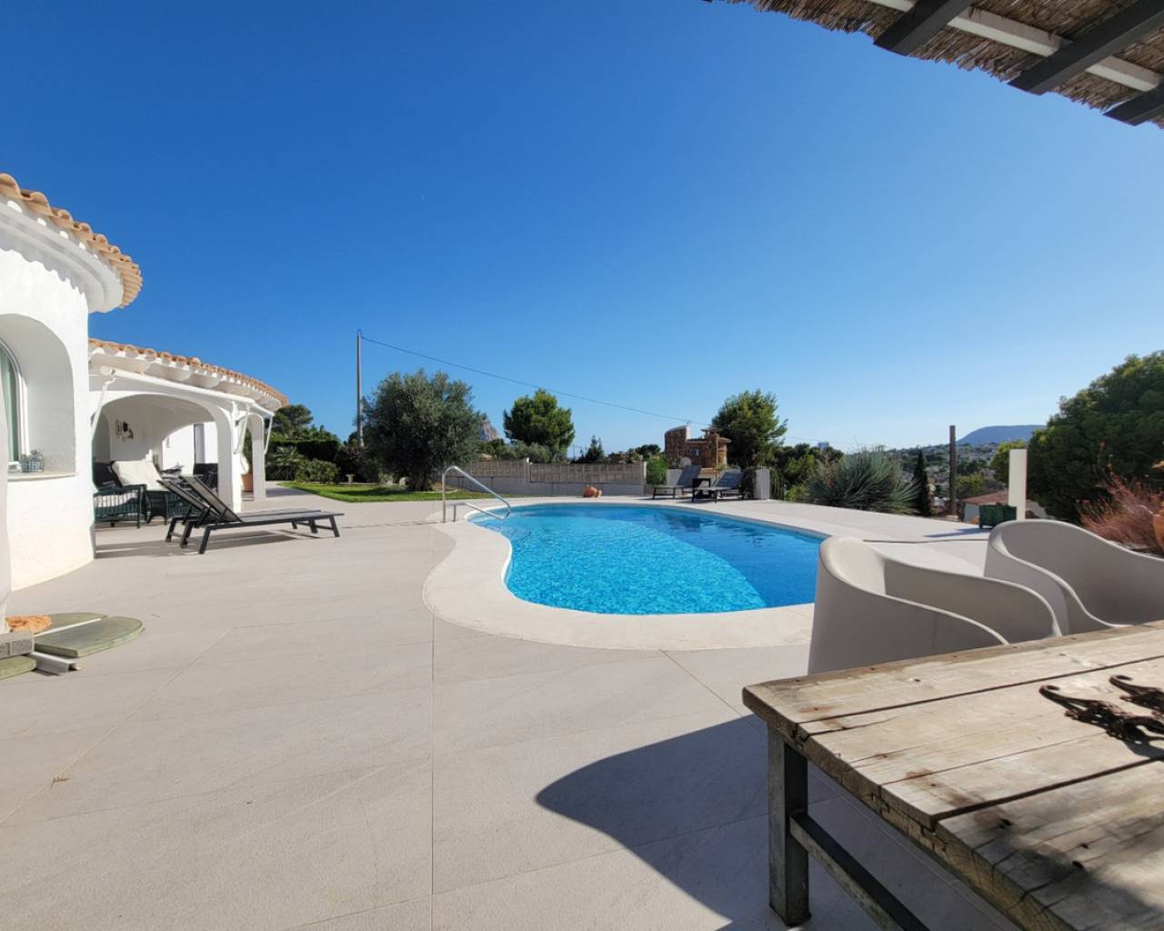 Welcome to your new home in Calpe! This charming villa in the Gran Sol urbanization is the perfect retreat to enjoy the tranquility and beauty of nature. With 3 cosy bedrooms and 3 bathrooms, there is enough space for the whole family. Imagine spending your days in a spacious living room with mountain views, creating unforgettable memories. The well-equipped kitchen is ideal for preparing delicious meals and sharing special moments with your loved ones. With a constructed area of 184 m² and a plot of 1,167 m², you will have ample outdoor space to enjoy the outdoors, whether to relax, play or simply enjoy the peace that the surroundings offer. Don't miss the opportunity to make this villa your new home. Come and visit it and let yourself fall in love with its charm and privileged location!
