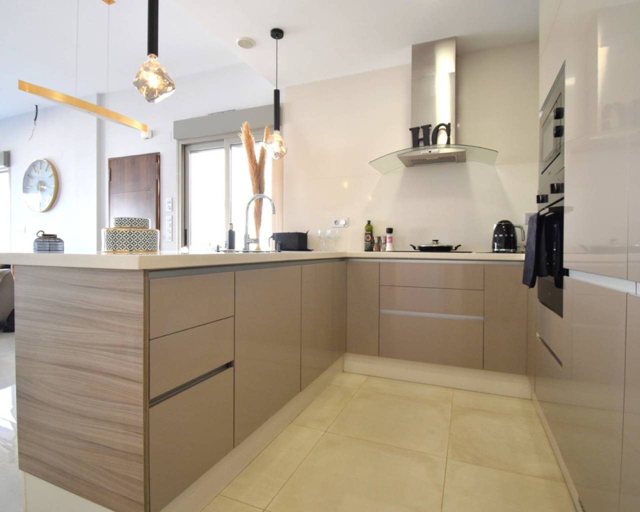 This Stunning South-East Facing, Three Bedroom Detached Villa in Villamartin is located in the desirable area of Orihuela Costa, Costa Blanca South. Within a 10-minute walk to the closest shops and just a short drive to the popular La Zenia Boulevard commercial center, this villa offers both convenience and comfort. The stunning beaches of the area are only a 10-minute drive away, providing the ideal setting for a relaxed Mediterranean lifestyle. The villa features three spacious bedrooms, each with air conditioning and fitted wardrobes, ensuring comfort throughout the year. The main bedroom also includes a ceiling fan for added comfort. The open-plan fully fitted kitchen is modern and practical, and it seamlessly connects to the living room, which is equipped with air conditioning. Additionally, a separate utility room adds to the functionality of the space. The outdoor area is just as impressive, with a low-maintenance tiled garden surrounding a private swimming pool. The outdoor sitting area overlooks the pool, offering the perfect space for enjoying the warm Mediterranean weather. With a 200m² plot, this villa offers ample space for relaxing and entertaining. Located in a prime position, this villa provides an exceptional opportunity for year-round living or a perfect holiday retreat in Orihuela Costa.