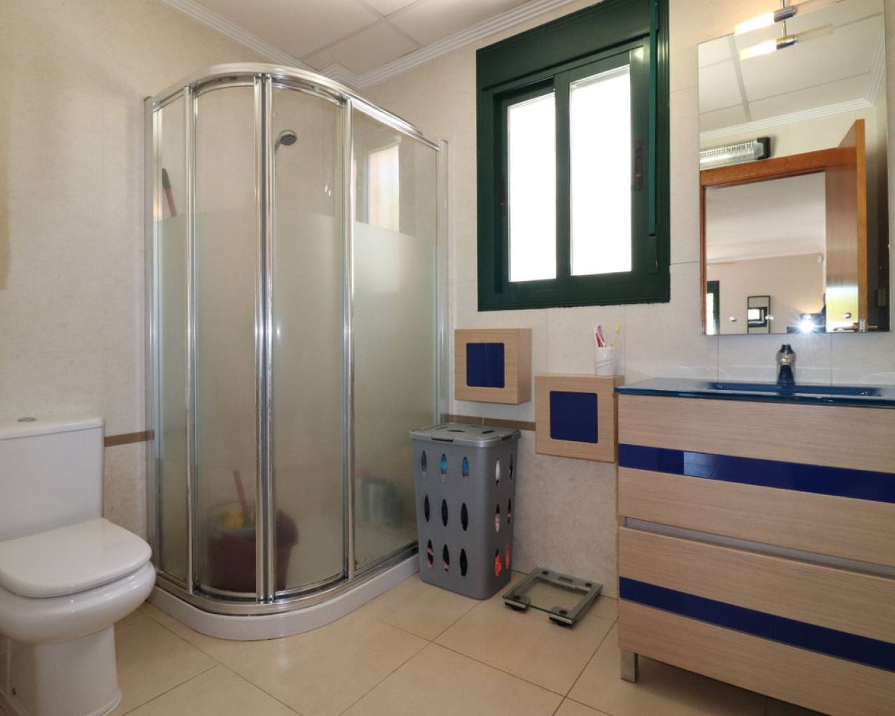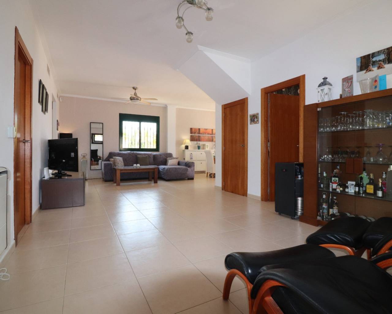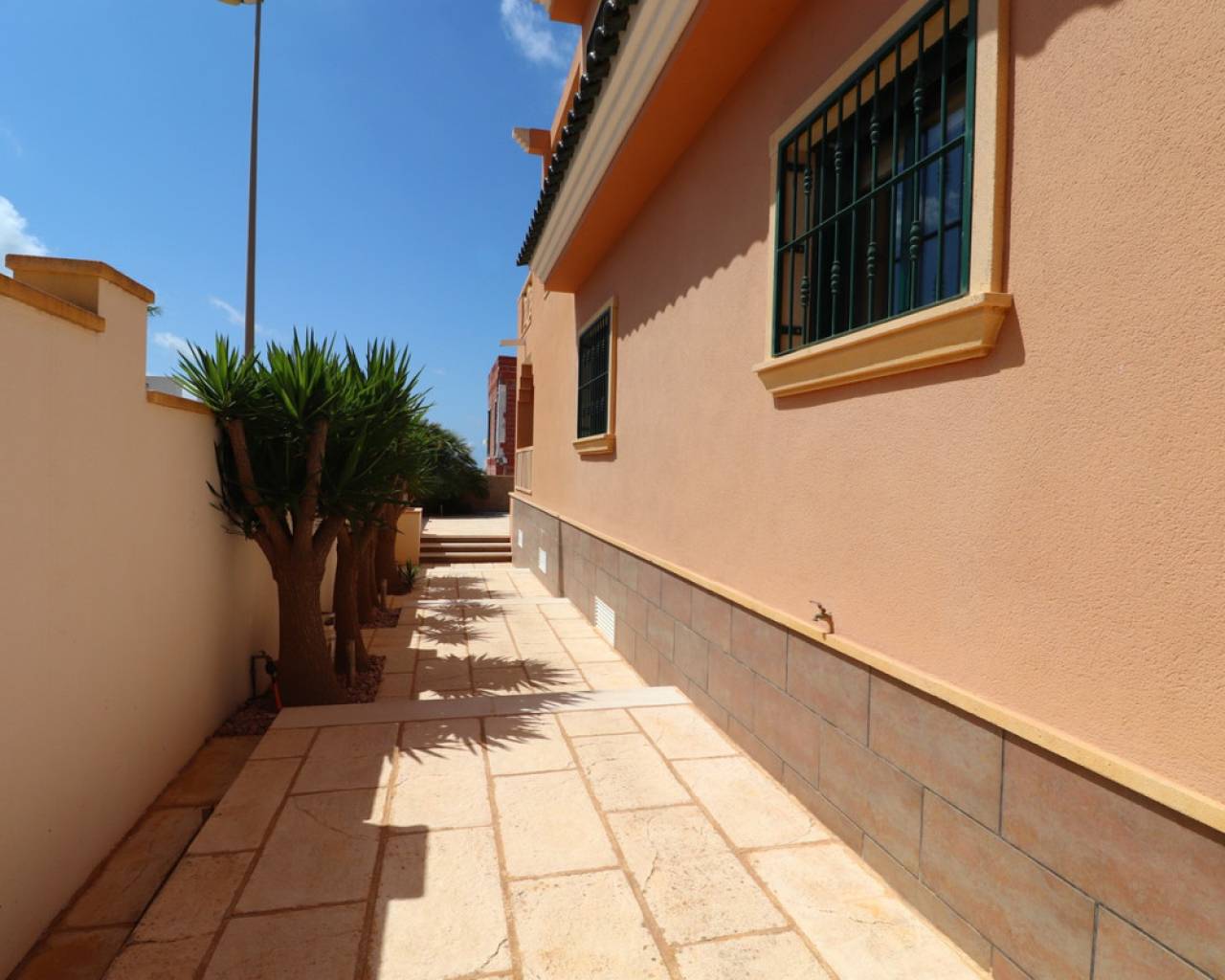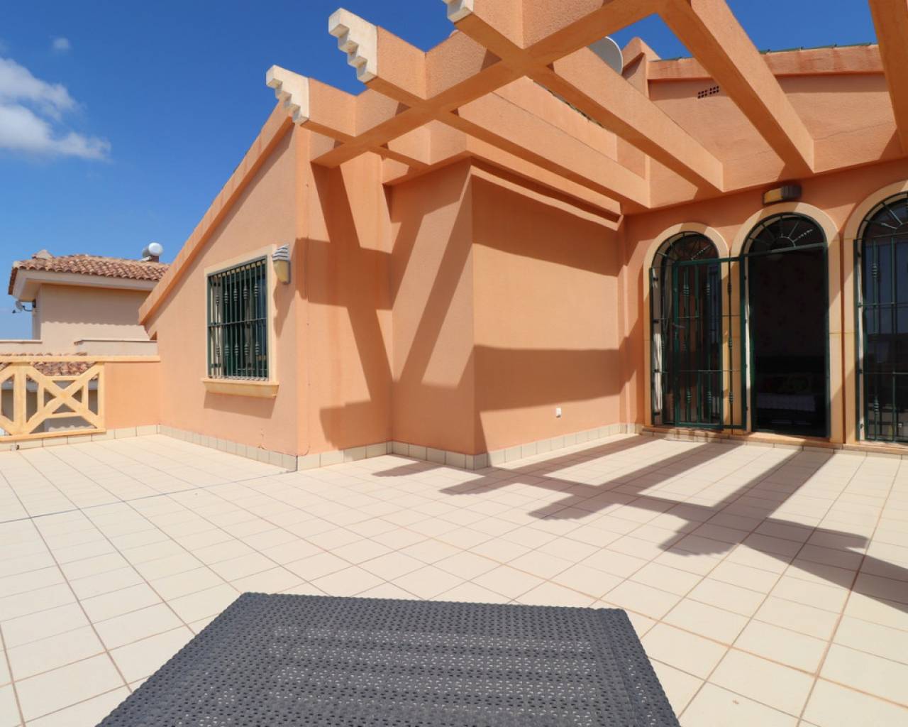 This South Facing, Four Bedroom, Detached Villa in Ciudad Quesada is located in a prestigious area, surrounded by exclusive properties in the highly desirable La Fiesta neighbourhood of the Costa Blanca South. Conveniently situated just a 10 minute walk from a variety of bars, restaurants, and a supermarket, this villa is also only a 5 minute drive to the La Marquesa Golf Course and just 10 minutes from the beautiful beaches of Guardamar. This imposing 175m2 build is set on a generous 500m2 tiled plot and offers spacious, comfortable living across two levels. The ground floor features an impressive 'L'-shaped lounge/dining room with stairs leading to the first floor, a separate fully fitted kitchen with access to a utility area, three double bedrooms with built-in wardrobes – including a master with en-suite bathroom – and a family shower room. Upstairs, the first floor boasts an open plan area as fourth bedroom/office and access to a large, 'L'-shaped terrace with stunning views over the salt lakes and out towards the sea – the perfect place to relax and enjoy the Mediterranean surroundings. Outside, the property offers a private 8 x 5 swimming pool, off-road parking, a covered terrace for outdoor dining, some planted trees, and a storeroom. Comfort is guaranteed year-round with ducted air conditioning, underfloor heating, and wall heaters in the living area and master bedroom. This well-appointed villa offers a perfect blend of luxury, location, and lifestyle — ideal for permanent living or as a high-quality holiday home in one of Ciudad Quesada's most sought-after areas.