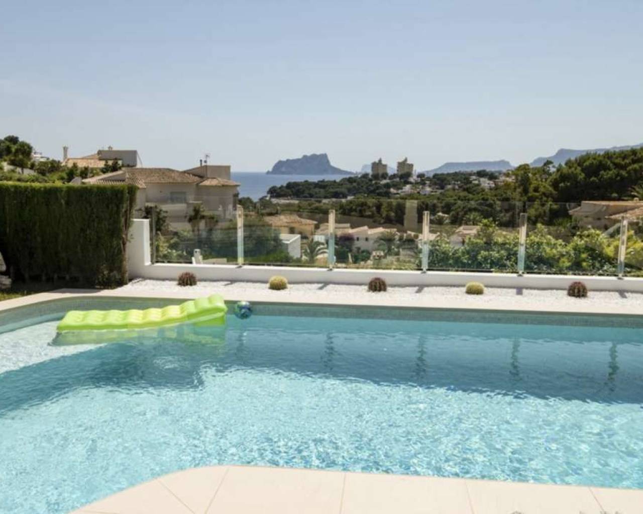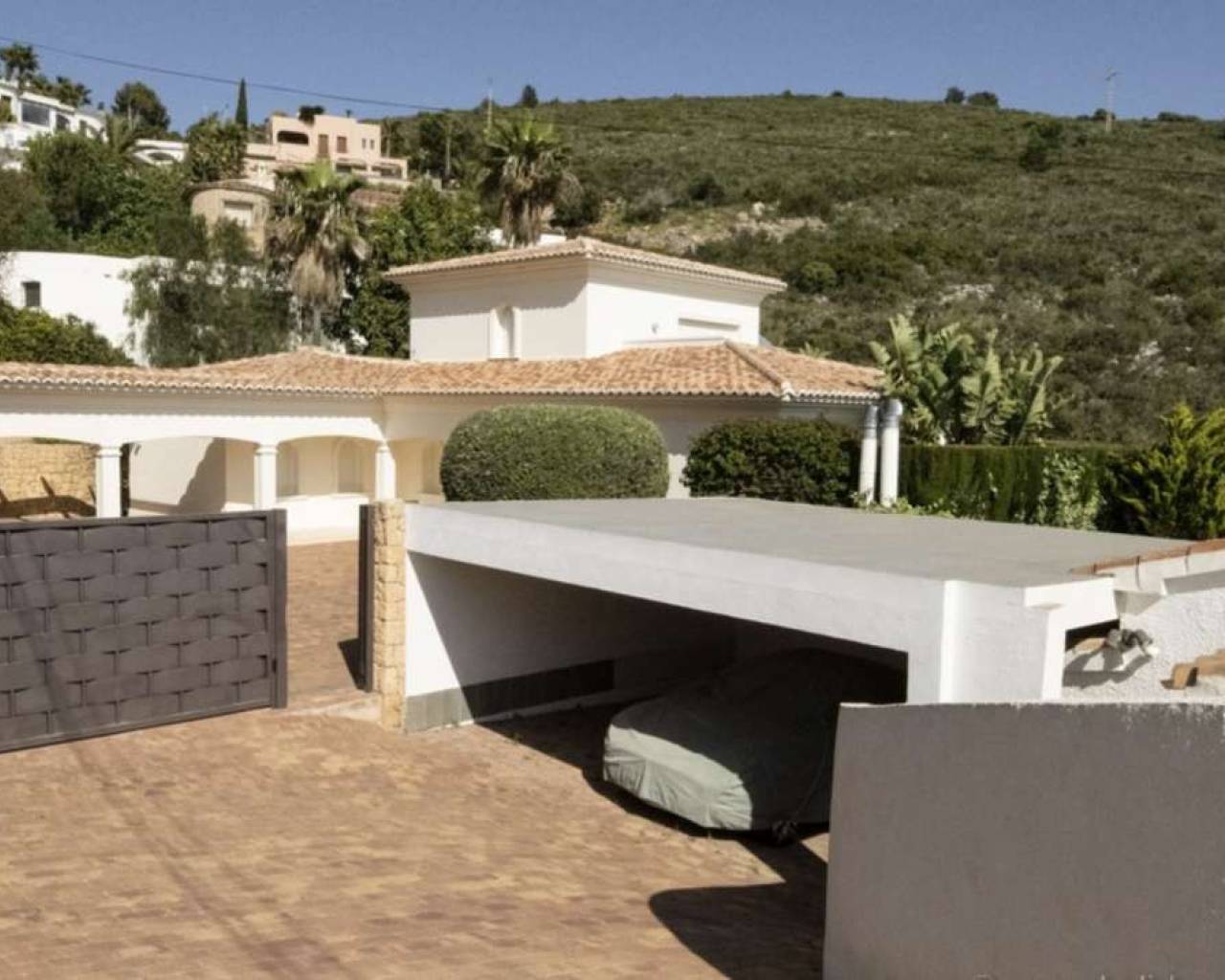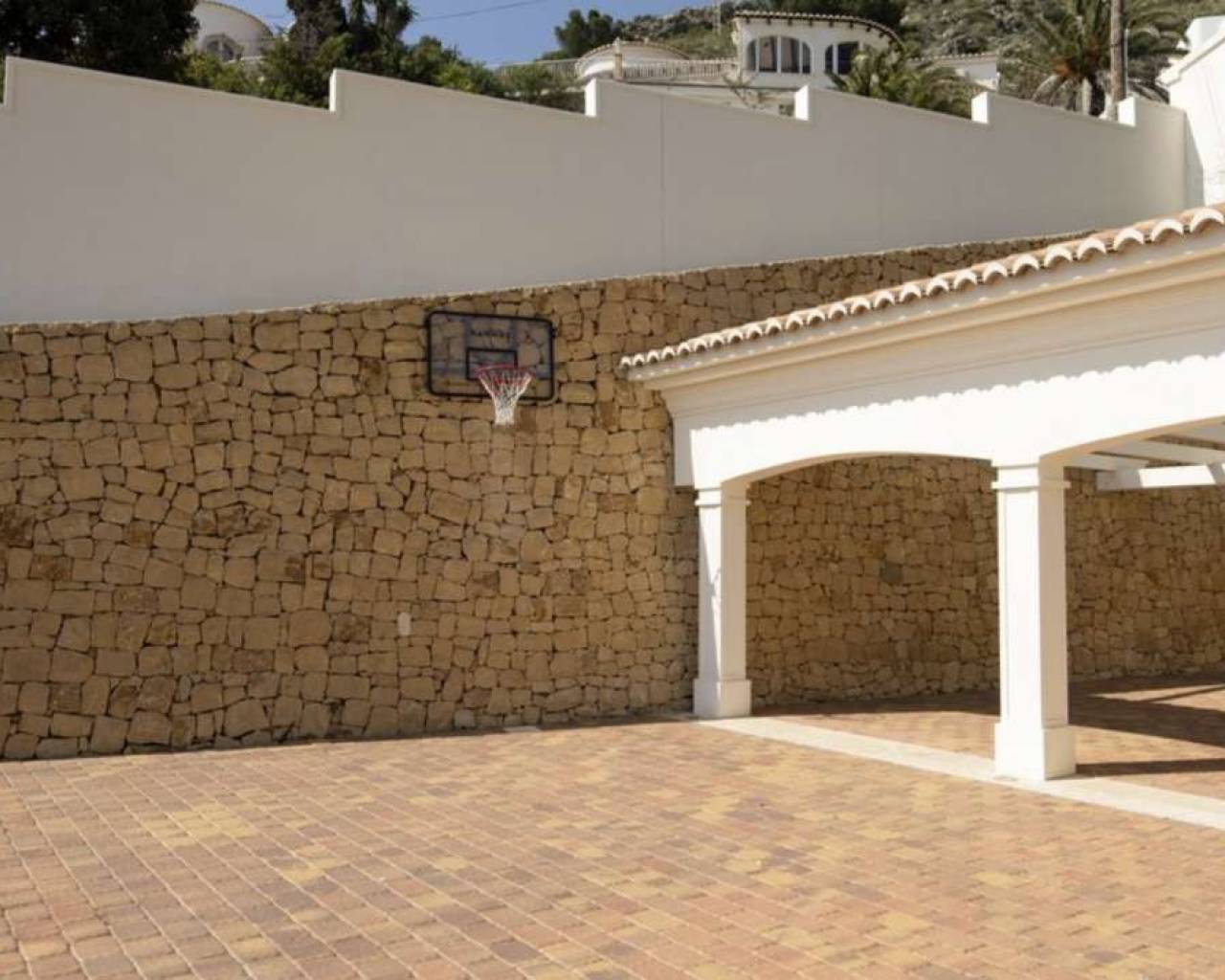 Dream Villa Above El Portet Bay, Moraira – Stunning Views & Top EquipmentSituated in one of Moraira's most sought-after locations, this spacious Spanish-style villa lies just 900 meters above the picturesque El Portet Bay. From here, you can enjoy breathtaking sea views, peaceful surroundings, and easy access to the beach, local restaurants, shops, and the charming town center of Moraira (approx. 2 km away).Key Facts:Living space: approx. 373 m²Plot size: approx. 836 m²Bedrooms: 4 – each with en-suite bathroom and air conditioningBathrooms: 4Private Pool: 9 x 4 m with sea views and outdoor showerAccommodates: up to 8 people Outdoor Areas:Covered dining terrace with large wooden table for 8 peopleSpacious sun terrace with loungers, Bose outdoor sound system, and shaded lounge areaInfinity sea and mountain views from multiple levelsPrivate pool with Roman steps and underwater lightingBasketball hoop, table tennis, pull-up bar – perfect for families and active guestsLandscaped garden with trees and hedges, bordering a green zoneCarport for 2 cars, plus additional parking on the gated property with electric entrance gateFeatures & Highlights:Bright, open living and dining area with sea view and direct access to terraceUnderfloor heating, double-glazed windows, electric shuttersPhotovoltaic solar system for cost-efficient energy during the dayAir conditioning in the living/dining area and all bedroomsModern American kitchen fully equipped with Bosch appliances (ceramic cooktop, oven, dishwasher, microwave, coffee machine, toaster, etc.)Elegant cream marble floors throughout the entire house4 stylish bedrooms, each with en-suite bathroom, TV, mosquito screens, and A/CMaster bedroom with large private balcony and panoramic views of the sea and Sierra Bernia mountainsWine cellar (Bodega) in the basement – perfect for wine loversPrivate cinema room with 85-inch TV – ideal for movie nights or gaming sessionsThis villa combines luxury, comfort, and one of the best locations on the Costa Blanca. Whether for personal use, as a holiday retreat, or as a high-end rental property – this home ticks all the boxes.