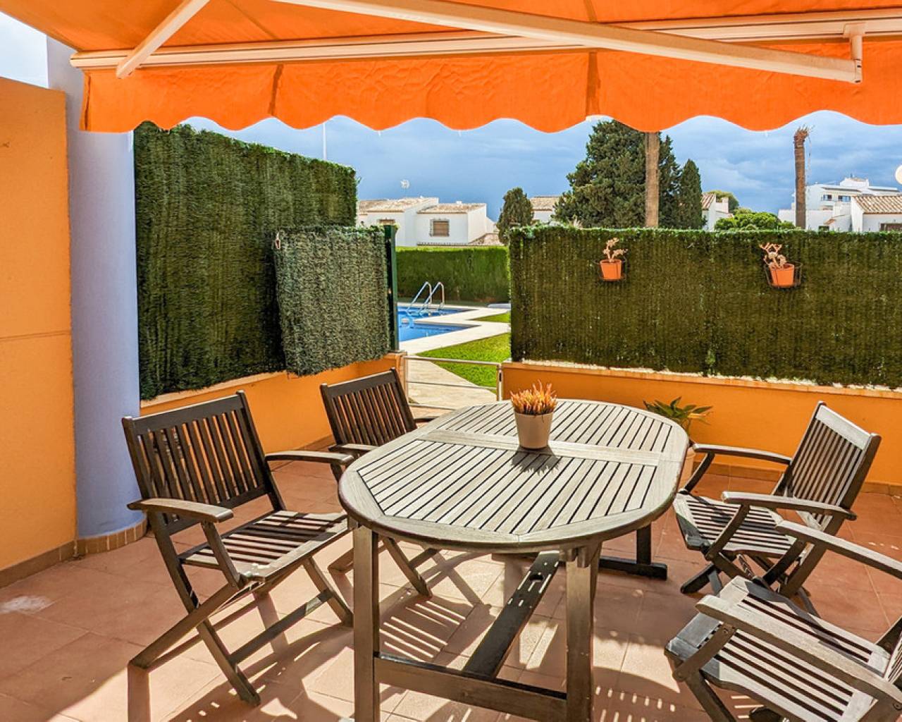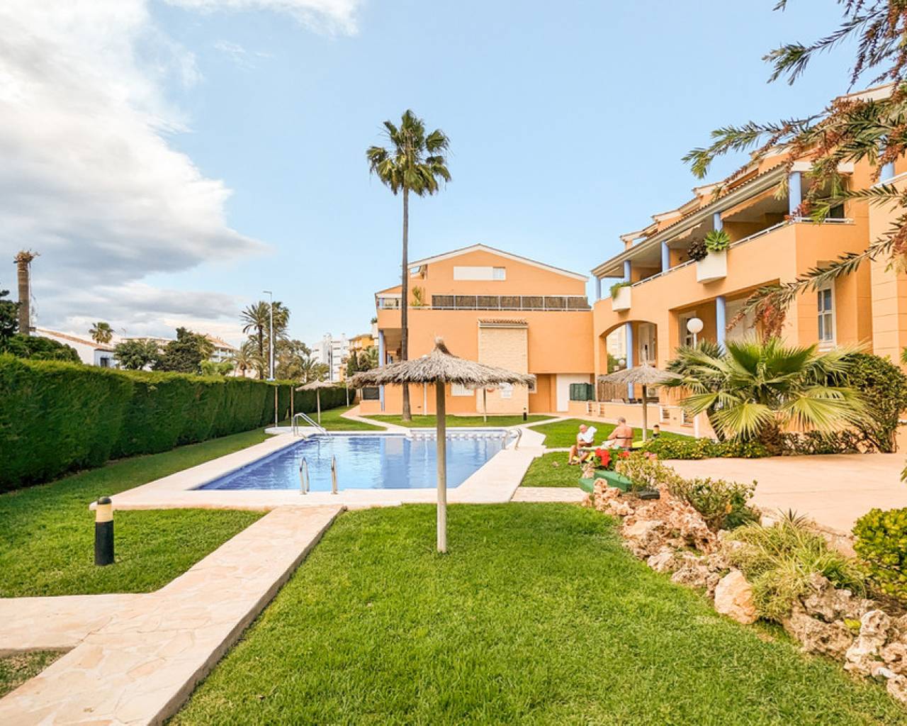 Located just a short walk from Javea's Cala Blanca, this exceptional 3 bed 3 bath ground floor duplex is ideal for full time living or to generate a rental income. The urbanisation is almost completely flat with a good sized communal pool and is within walking distance not only to the sea but also a supermarket, bars and restaurants and a pharmacy, and only a short walk or drive to the Arenal area.The property is entered into via a hallway, that due to its end of block location is flooded with light. To one side there is a fully fitted kitchen, a shower room and at the end of the hallway there is the staircase to the upper level and from here it opens to a bright living/dining room that not only features a window to one side, but also sliding doors to the terrace which is ideal for outside dining and which also gives access to the communal garden and has views over the pool. On the upper level there are 3 good sized double bedrooms all with built in wardrobes. The master bedroom has an ensuite bathroom while the other two bedrooms share a separate bathroom.This property benefits from a large parking space in the underground garage and a good sized storage room adjacent to the parking.