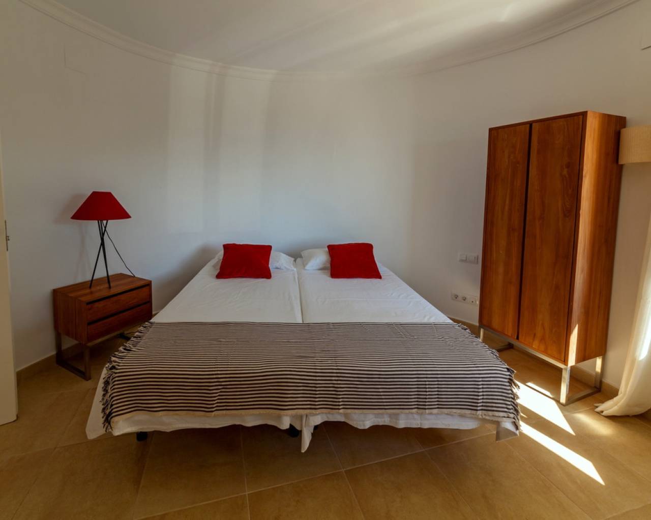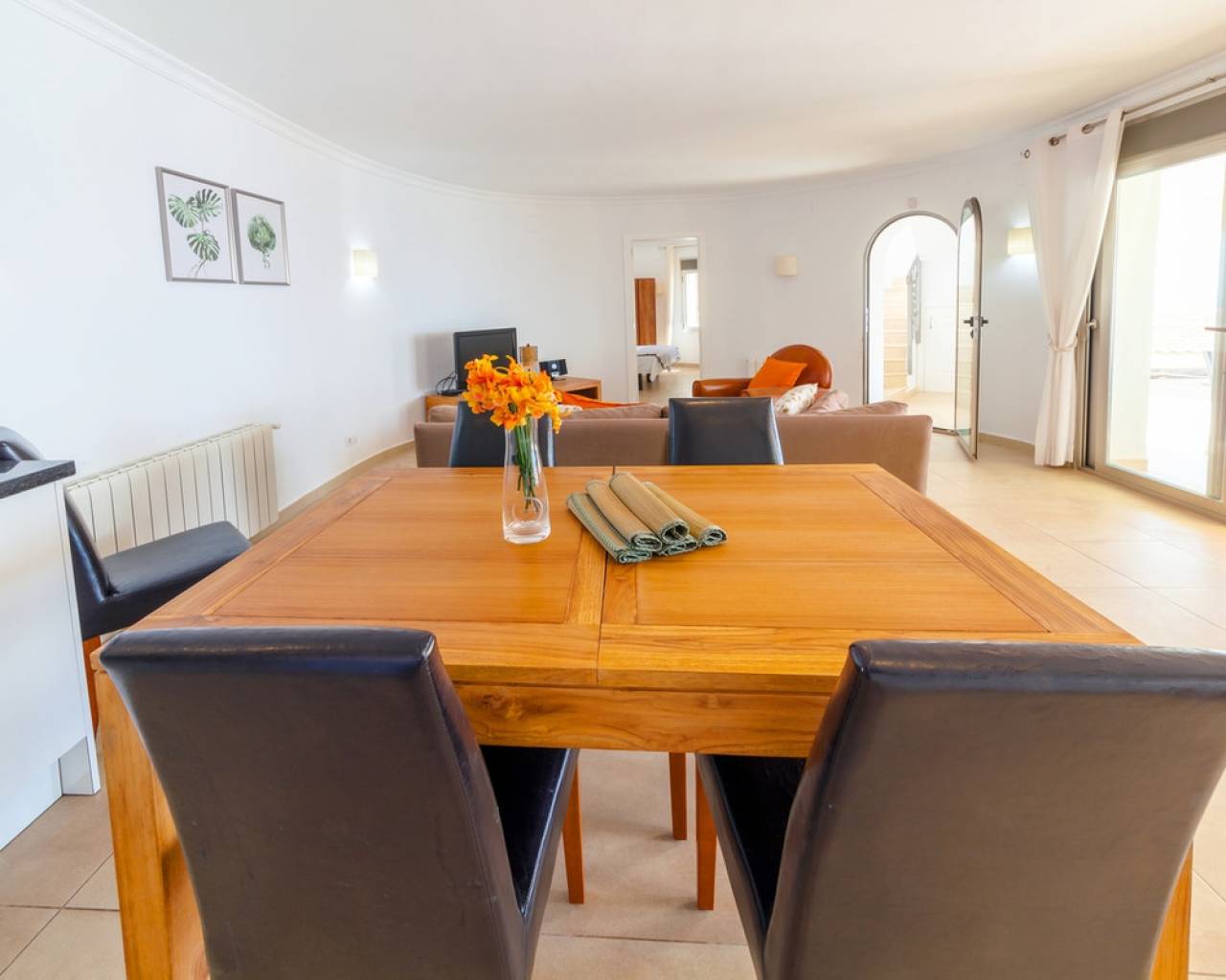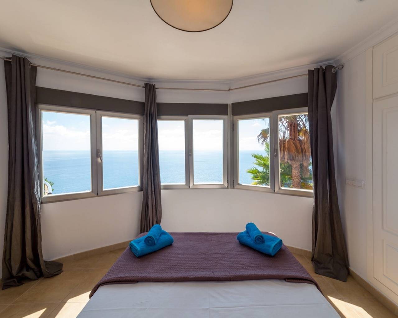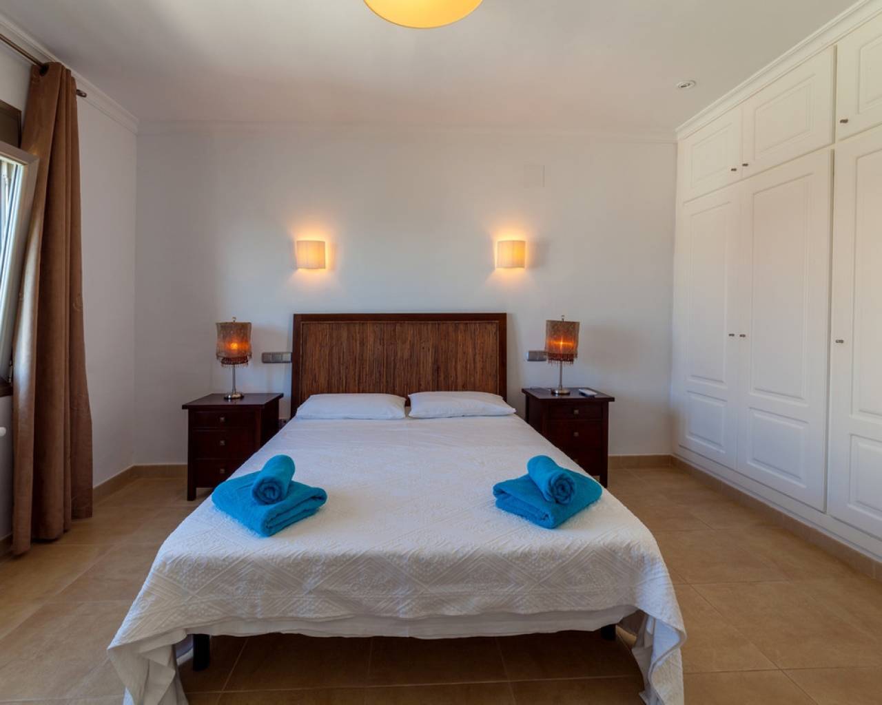 This impressive 6 bed 4 bath villa is located in a quiet area close to Cabo De la Nao, Javea. The sea views are incredible throughout the villa and while it is not situated on the first line, you would think you are from the majority of the villa.The property is entered either by a pedestrian gate or an electric sliding vehicle gate to a single car parking area. once through the front door and a short hallway you enter the living room where your gaze is drawn to the sea views in front of you. The large lounge gives access to the kitchen, dining room and the covered dining terrace. there is also access via a short hallway to three bedrooms, a double and a twin which share a bathroom and a master bedroom with ensuite bathroom where you can lie in bed and admire the sea views. From the living room, there is a staircase up to a circular tv room and then up to a roof terrace offering unbeatable views. Another staircase leads to the lower level which comprises an open plan living/dining/kitchen area from which you can access another covered dining/sitting area, and also another three bedrooms, two of which share a bathroom while the other, which also offers fantastic sea views, has an ensuite bathroom.From the lower covered terrace there is access to the parking area, and also down a few stairs to the pool terrace where again the sea views are incredible. To one side of the infinity pool area is a covered sitting/dining area complete with built in BBQ, while to the other is a built in Jacuzzi and all around is plenty of space for sunbeds.This is a property which demands to be viewed to appreciate how good the sea views are, and all the benefits offered by the villa.