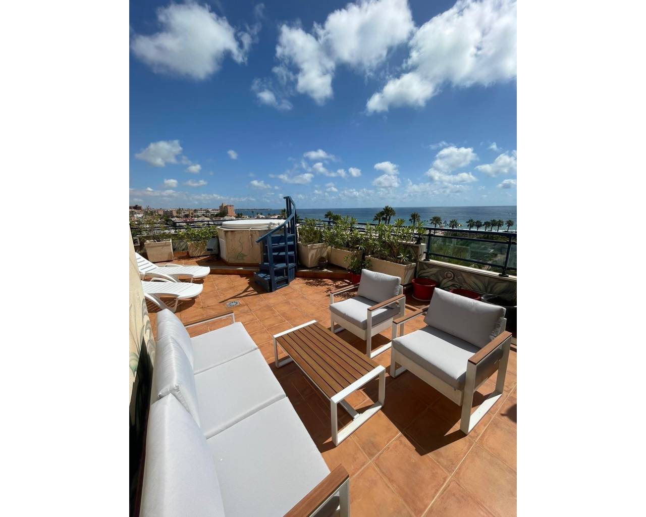 Penthouse, Mil Palmeras, Costa Blanca. 3 Bedrooms, 2 Bathrooms, Built 140 m², Terrace 40 m². Setting : Beachfront. Orientation : North. Pool : Room For Pool. Climate Control : Air Conditioning. Views : Sea. Furniture : Fully Furnished. Kitchen : Fully Fitted. Garden : Communal. Parking : Garage, More Than One.