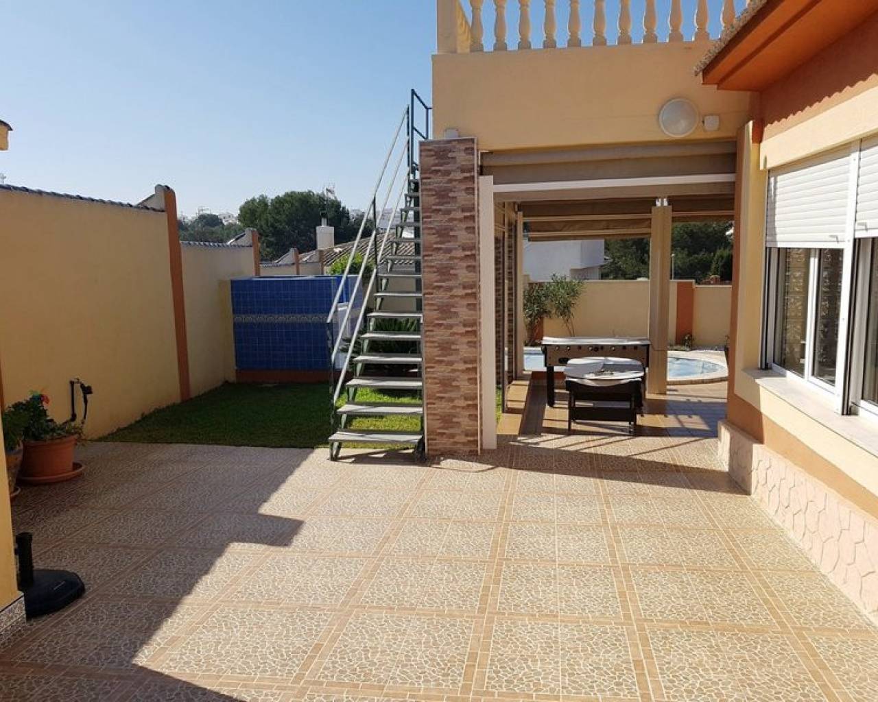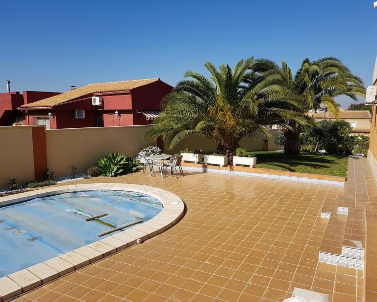 Fabulous opportunity to purchase a Detached Villa for resale on a large plot of 1400m2, and just a 6 minute drive to the beach. 5 bedrooms 2 bathrooms Living/dining area with fireplace Fully fitted kitchen Large private terraced areas Garage Gardens with fruit trees and private swimming pool Outside kitchen with BBQ Roof solarium You will also find a basement with wine cellar/storage room Los Balcones is a thriving community situated just 3 km south of the city of Torrevieja on the Southern Costa Blanca. Many people have bought property for sale in Los Balcones and now live here all year round. Los Balcones is a popular destination due to the close proximity of many fine golf courses and beaches of Torrevieja 3km away and the Orihuela Costa of Spain. Los Balcones has its own facilities close by at the Filton shopping centre with amenities such as a supermarket, hairdressers, bars and restaurants etc. In the main road you will find the prestigious university hospital of Torrevieja and the main bus stops to surrounding areas.There is also a large supermarket and 2 pharmacies one at each end of the main zone. There is a local primary school a short distance away, and the bus route for all secondary schools and to the city of Torrevieja.. Alicante airport or Murcia airport both are just 35 min drive away