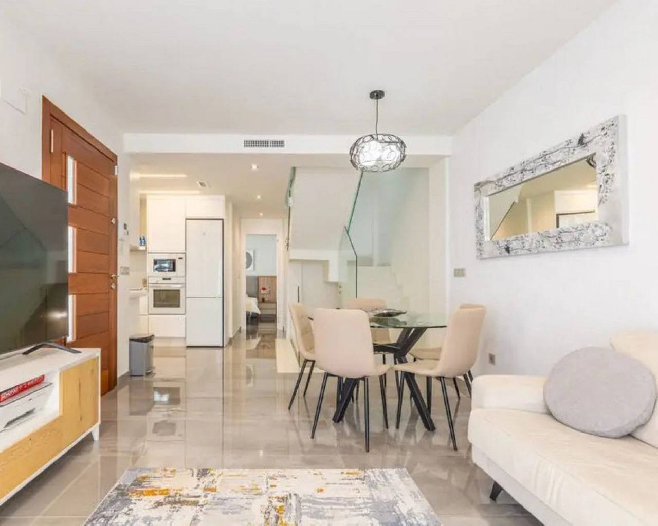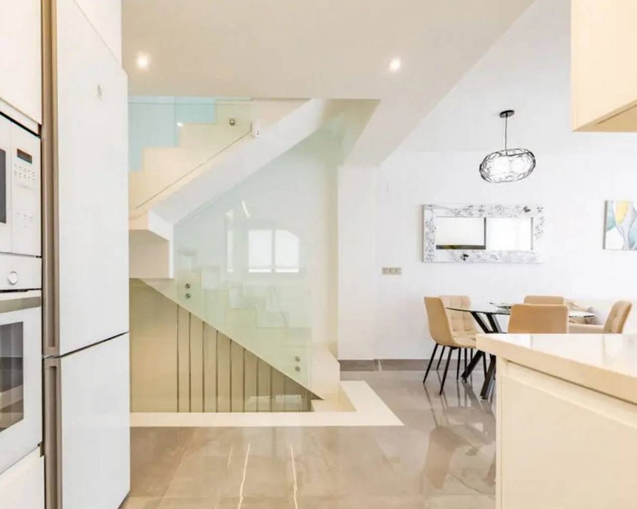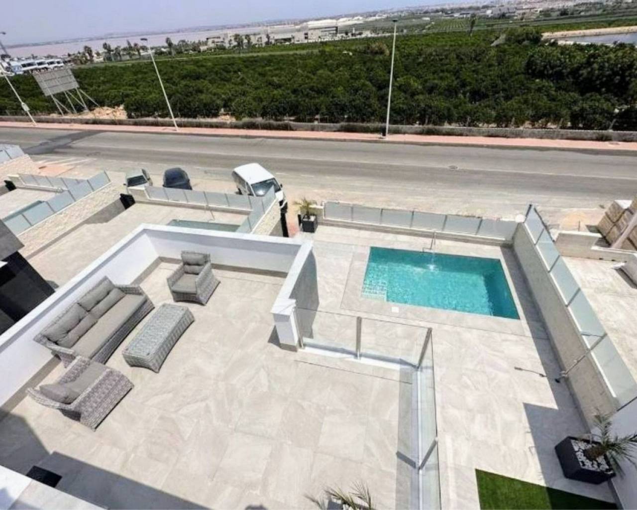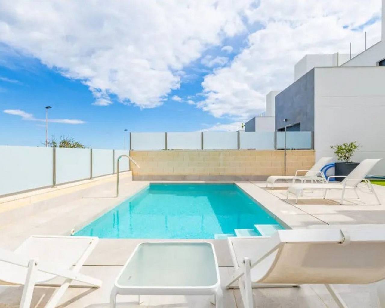 Take a look at this Fabulous New Build Resale Detached Villa located in Los Balcones. The property offers 3 spacious bedrooms with wardrobes, 3 bathrooms, living/dining area and a fully fitted kitchen. On the ground floor you will find a bedroom with ensuite bathroom and walk-in closet and on the upper floor a further 2 bedrooms and bathroom. The property benefits from terraced areas, roof solarium with views of the salt lakes, underfloor heating, solar panels and a 70 m² basement with a garage and plenty of storage for bicycles or sports equipment. The property also benefits from a private swimming pool, outside shower, air conditioning and much much more. The villa is located in a peaceful and well-connected area and you'll find supermarkets, pharmacies, restaurants, and cafés within walking distance. The beach is only a short bike ride away, and for shopping and entertainment, the popular La Zenia Boulevard is just a short drive away. Los Balcones is a quiet area with good transport connections. It is a quiet residential area with many parks and green areas and it is close to wonderful beaches from Torrevieja such as Playa de los Náufragos and it is 7 km away from Aquopolis Torrevieja water park. It is also close to hospitals like the Hospital Universitario de Torrevieja (3 km away) and airports such as Alicante Airport (35 km away) and Region of Murcia International Airport (43 km away). Los Balcones has its own facilities close by at the Filton shopping centre with amenities such as a supermarket, hairdressers, bars and restaurants, and an Ironmongers etc There is also a large supermarket and 2 pharmacies one at each end of the main zone. There is a local primary school a short distance away, and the bus route for all secondary schools and to the city of Torrevieja.