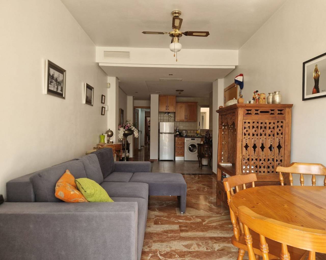 Discover this spacious and inviting apartment located in the heart of Torrevieja. Surrounded by shops, bars, restaurants, the boulevard, and the marina, it provides the perfect blend of convenience and leisure. The apartment boasts a large living room with an open kitchen, three generous bedrooms, and two bathrooms, one of which is ensuite. Additionally, the complex features a communal solarium and a lift for your comfort. From the apartment, you can almost glimpse the sea and the marina, enhancing its charm. The property will be delivered fully furnished, allowing you to settle in with ease. Embrace the coastal lifestyle with everything at your doorstep, from shopping and dining to sports facilities and stunning beaches. Public transportation is conveniently available, with bus stops right in front, making it easy to explore the coast. Torrevieja, situated in Spain's southeastern Alicante province on the Costa Blanca, is renowned for its Mediterranean climate and picturesque coastline. Stroll along the promenades that line the sandy beaches and visit the vibrant hippie or night market. This town offers all the amenities you could need, making it ideal for those who prefer not to drive. The beach, marina, and an array of shops are all within close proximity. Immerse yourself in the local culture at the tiny Museo del Mar y de la Sal, which showcases the town's fishing and salt-mining history. With regular bus routes to various destinations, you can effortlessly explore the area, including the bustling Friday market where great bargains await. Don't miss out on the water sports, boat trips to the island of Tabarca, and numerous golf courses just a short drive away. Experience the best of Torrevieja with this fabulous apartment, offering a blend of comfort, convenience, and coastal charm.