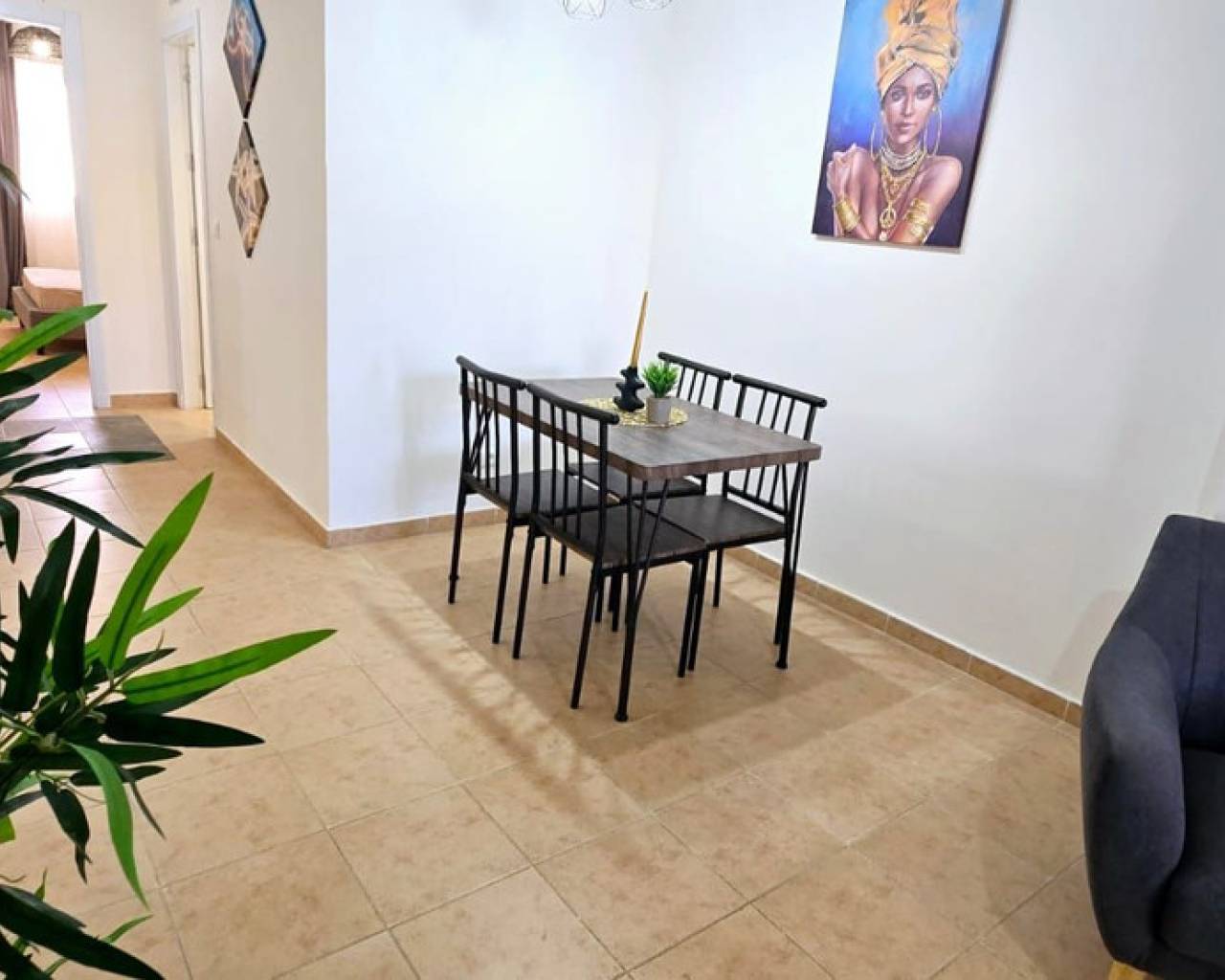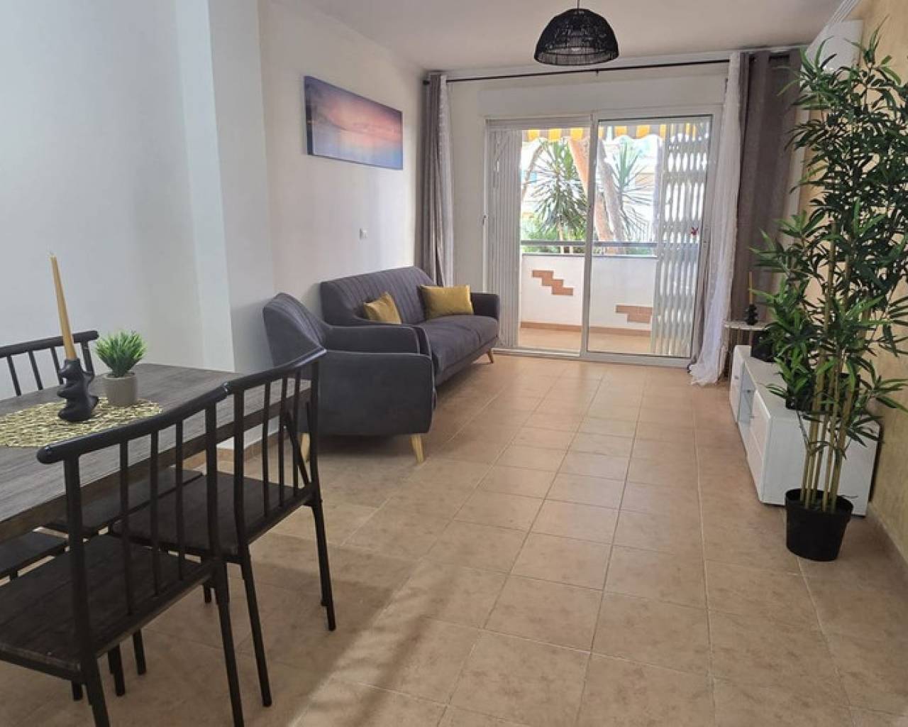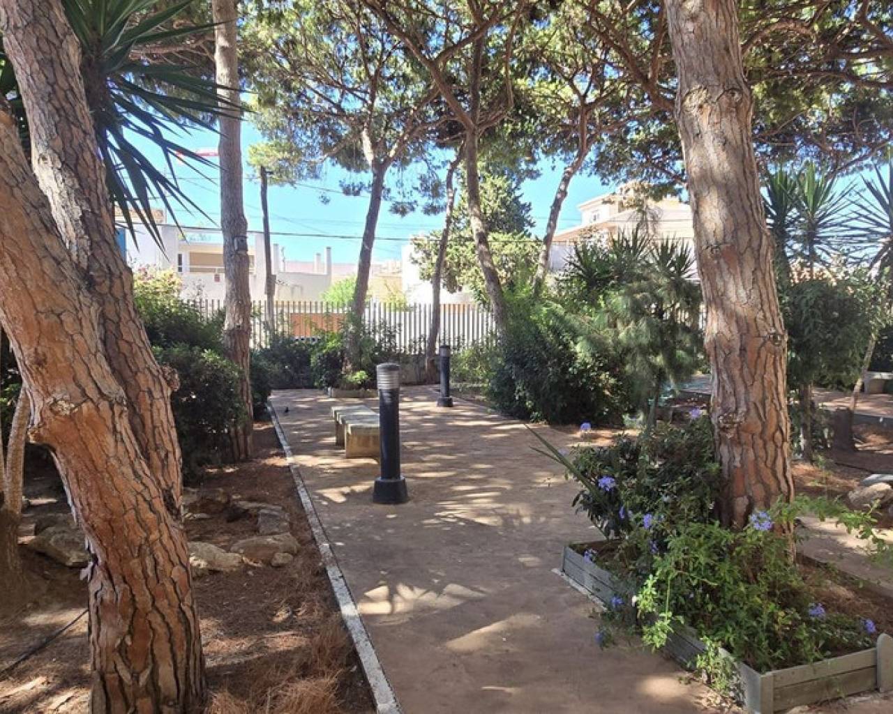 Refurbished ground floor apartment in Lo Pagan, San Pedro del Pinatar. This apartment is located just 200m from the beach within a gated complex, offering easy access for individuals with low mobility. Inside, the apartment features an open-plan kitchen and living room, two double bedrooms, and a bathroom. The living room provides access to a good-sized private terrace that overlooks the community garden. There is a storage room included in the price