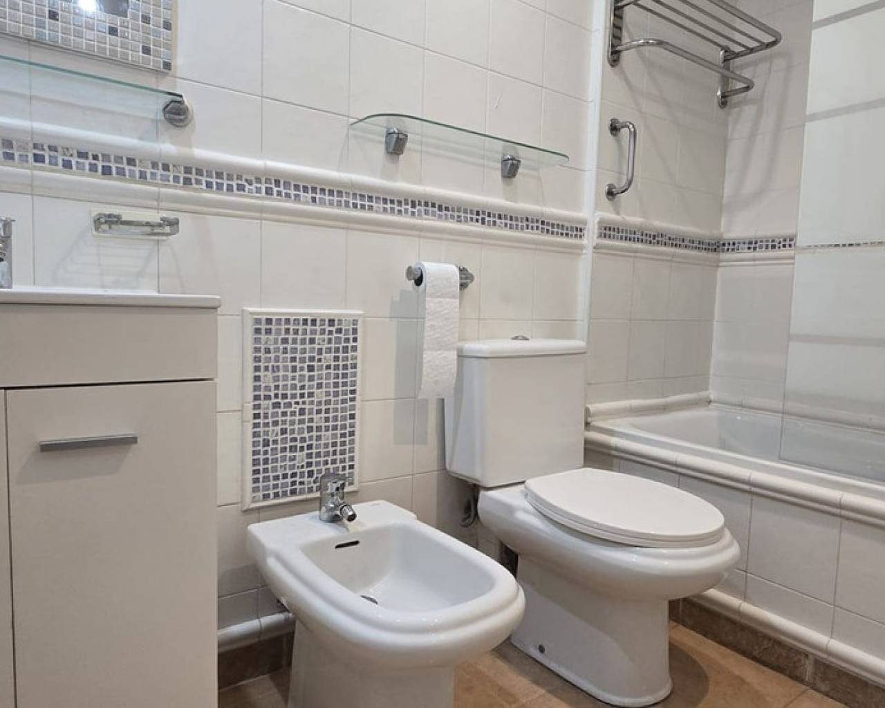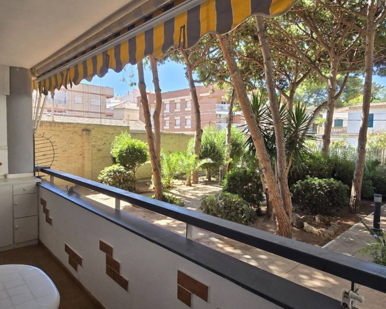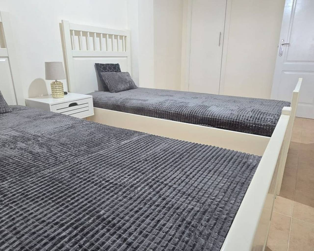 Refurbished ground floor apartment in Lo Pagan, San Pedro del Pinatar. This apartment is located just 200m from the beach within a gated complex, offering easy access for individuals with low mobility. Inside, the apartment features an open-plan kitchen and living room, two double bedrooms, and a bathroom. The living room provides access to a good-sized private terrace that overlooks the community garden. There is a storage room included in the price