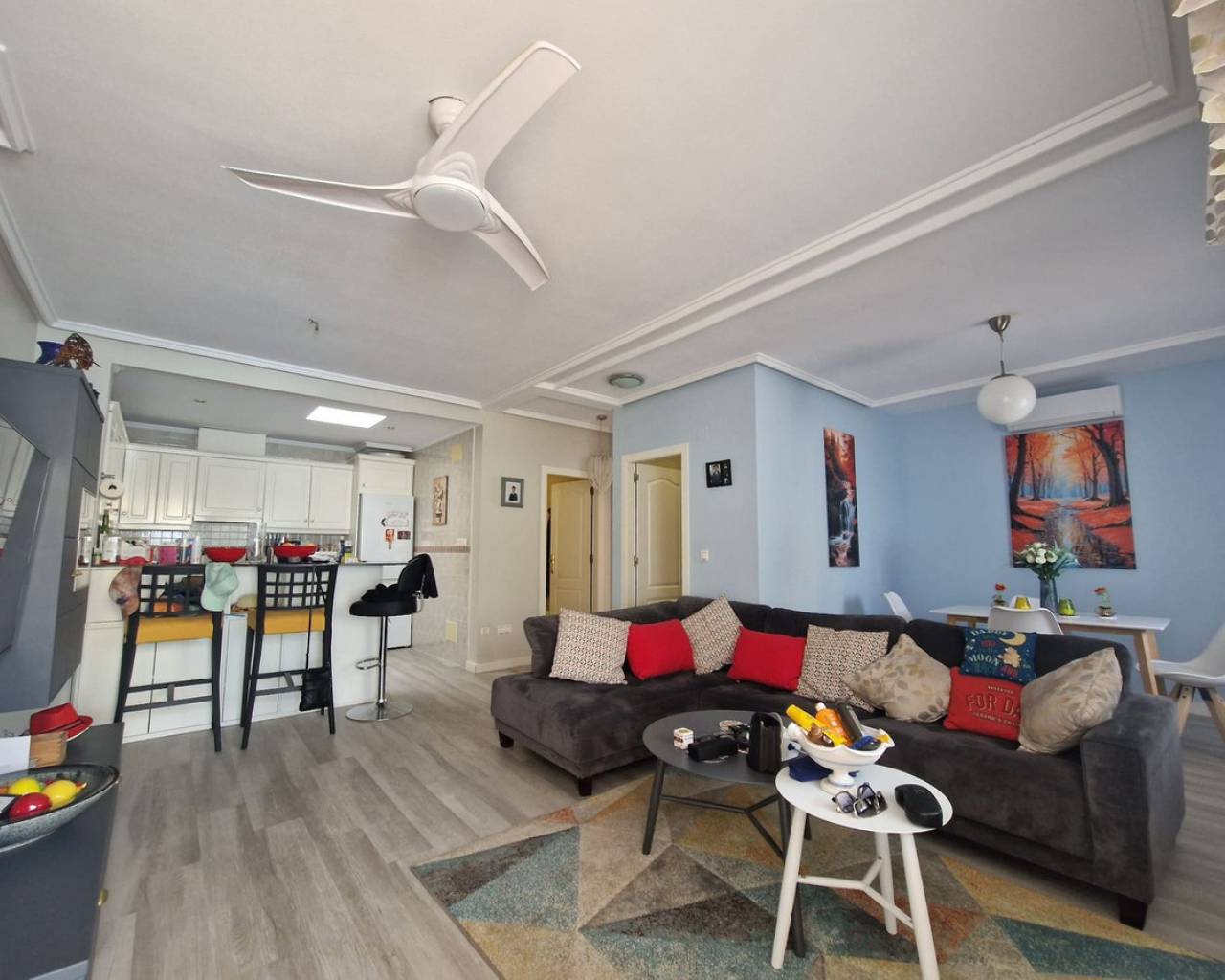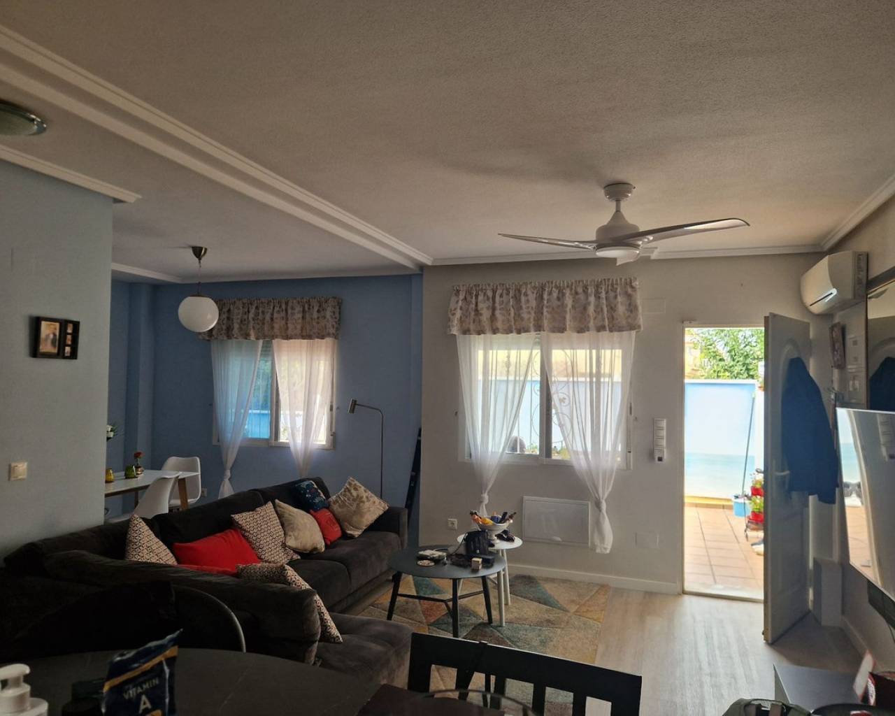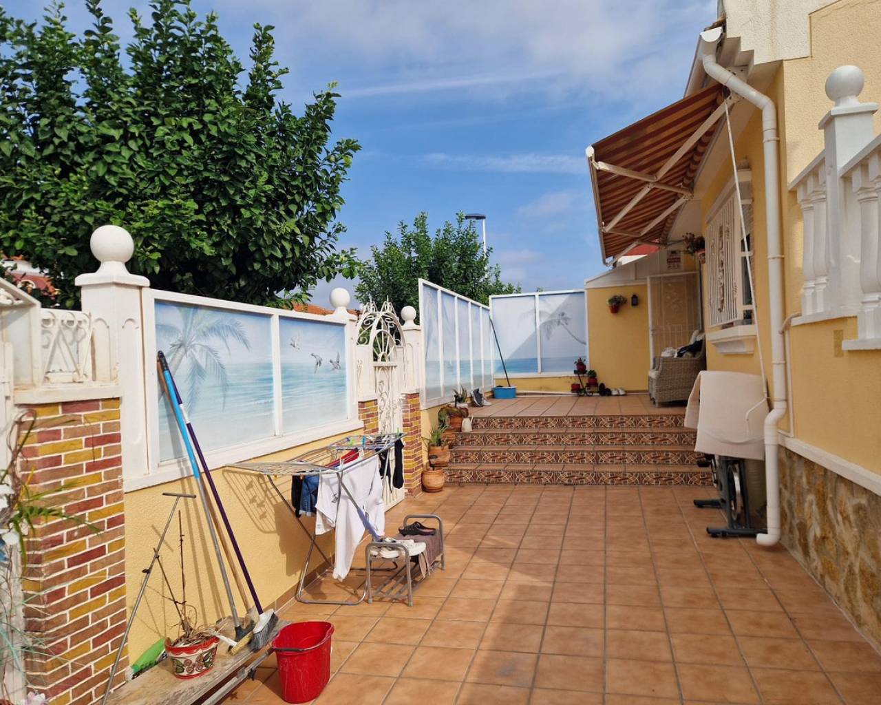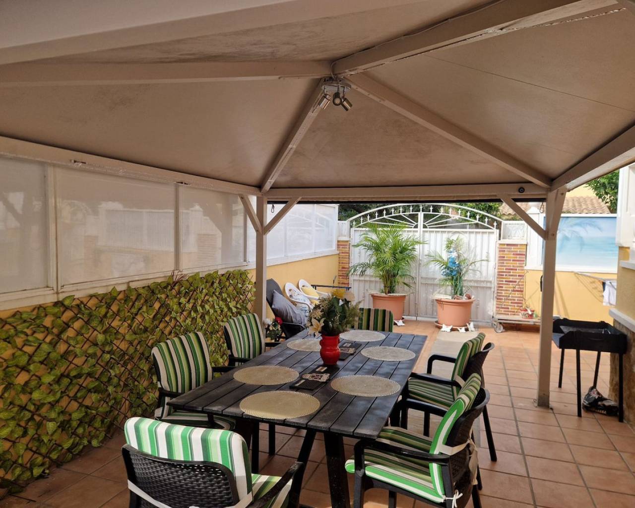 Nestled in the charming Urbanisation Sunlake 1 in Torrevieja, this lovely bungalow offers an inviting atmosphere with ample green spaces and proximity to the picturesque salt lakes. The ground floor features two bedrooms with wardrobes, two bathrooms, a spacious living and dining area, and a fully fitted kitchen. Additionally, the solarium houses a third guestroom or can be utilized as storage. The property boasts a generous garden with a pleasant private terrace, a covered dining and BBQ area, and a storage room. There is also the option to park a car in the garden or create a private pool. The community offers a communal pool and an underground parking space, although the latter is not included with the property. Torrevieja, located in Spain's southeastern Alicante province on the Costa Blanca, is renowned for its Mediterranean climate and stunning coastline. The city features promenades along sandy beaches, a vibrant local market, and all the amenities one could need within walking distance. Ideal for those who prefer not to drive, Torrevieja offers convenient access to the beach, marina, shops, and the Museo del Mar y de la Sal, which highlights the town's fishing and salt-mining history. Regular bus routes make getting around easy, and the Friday market is not to be missed for great bargains. Water sports, boat trips to the island of Tabarca, and numerous golf courses just a short drive away add to the town's appeal.