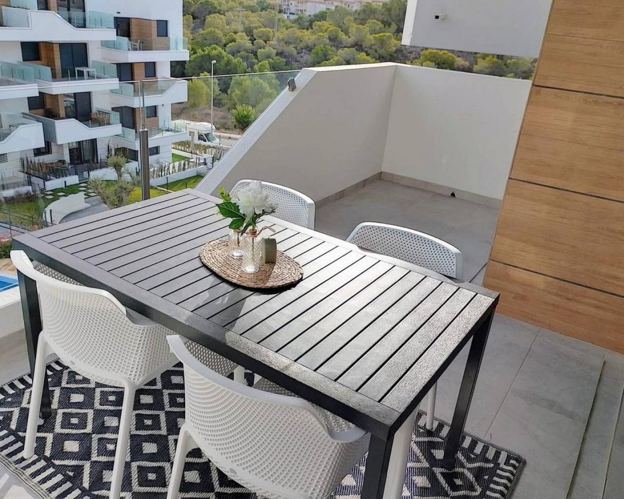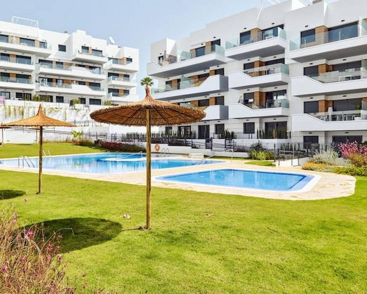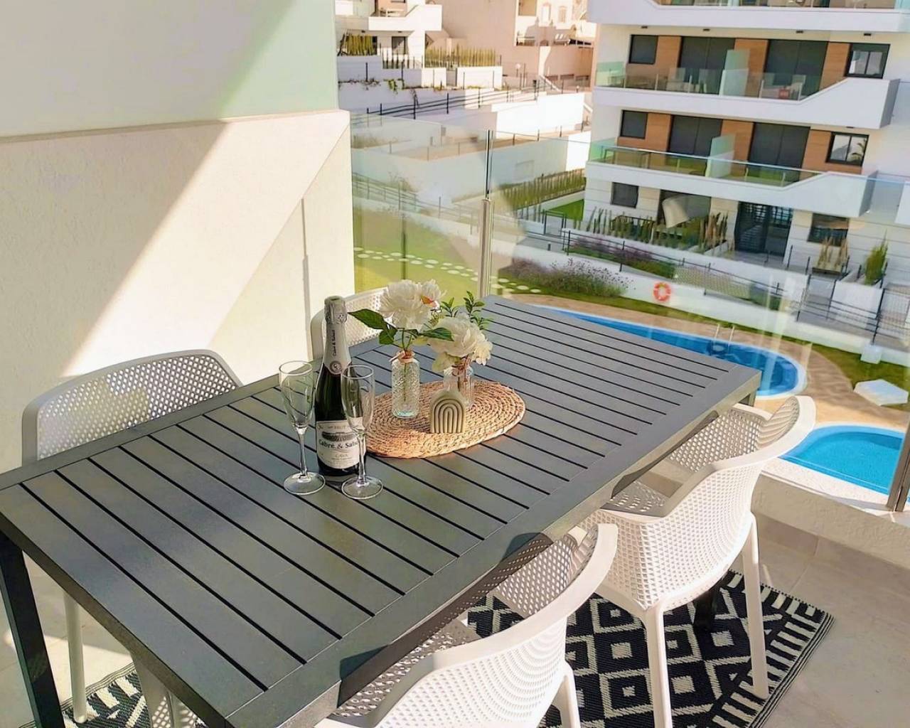 Aire Residencial is located in Orihuela Costa (Villamartin Golf area), designed for those seeking the Mediterranean lifestyle in a quiet yet well-established area, less than 8 minutes from the beach and with all amenities within easy reach. The gated community comprises gardens with 4,400m² and has 2 large swimming pools, a jacuzzi and 2 petanque courts. The property is located on the 2nd Floor and consists of 2 bedrooms with fitted wardrobes, 2 bathrooms, living/dining area and a fully fitted kitchen. The property benefits with a storage room, air conditioning, Private terrace overlooking the communal swimming pool and gardens and there is also underground parking space where you can park your car or store bicycles. Villamartin is situated inland from the beaches of Dehesa de Campoamor, Cabo Roig, La Zenia, Playa Flamenca and Punta Prima, although it is still included in Orihuela Costa area. There are a number of commercial centres, the largest of which is the Villamartin Plaza,where you will find a huge array of cuisine and entertainment for all the family. It is full of Spanish charm with its ceramic tiles, iron balconies and lamps and is a very popular dining destination. Added to these is the well established 18 hole Villamartin golf course