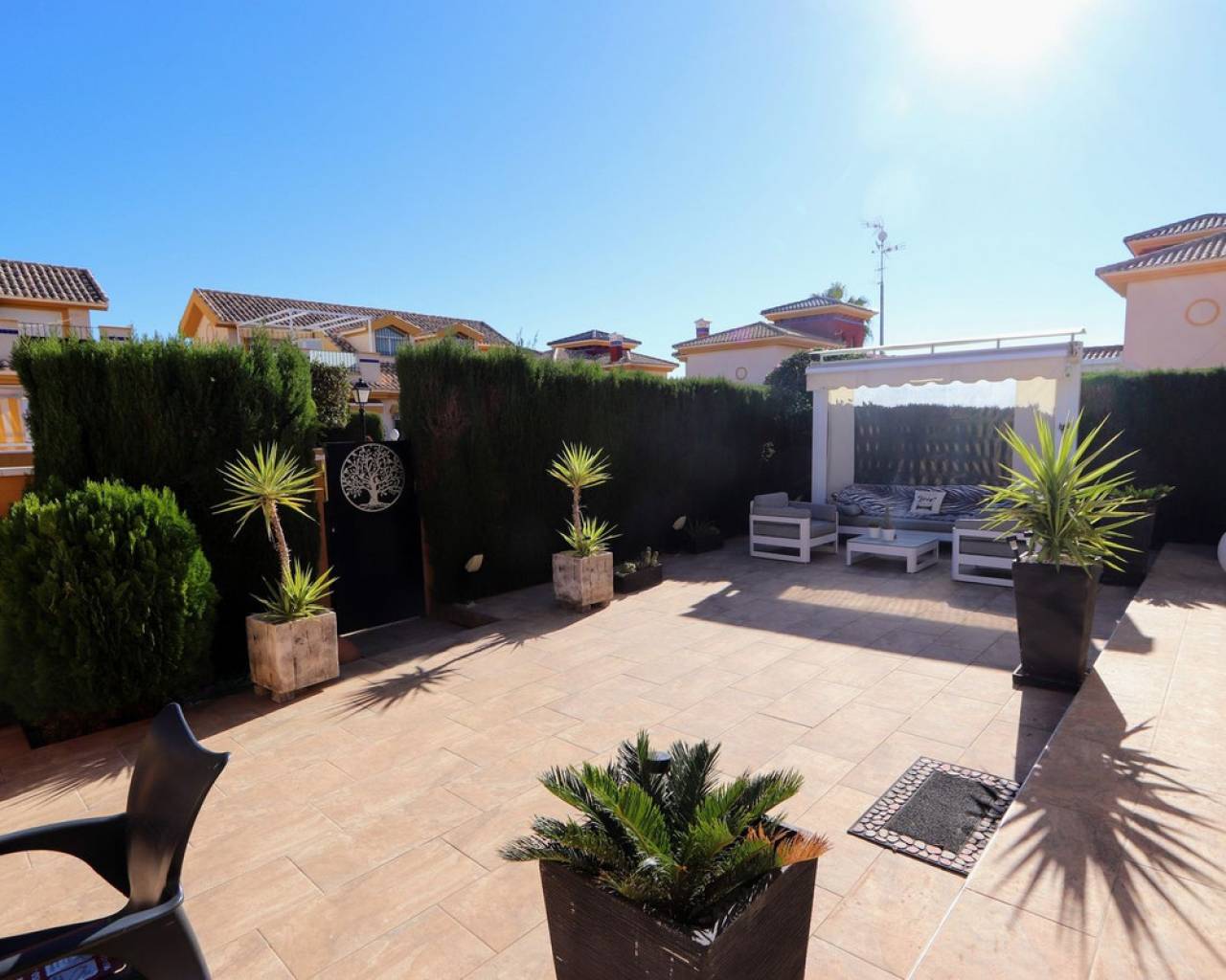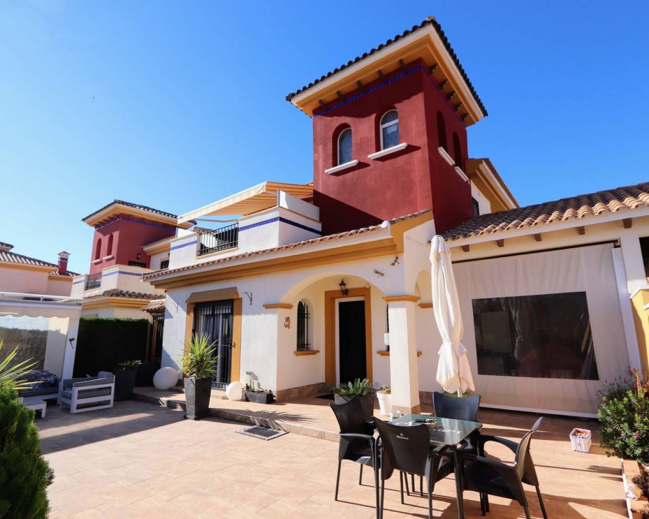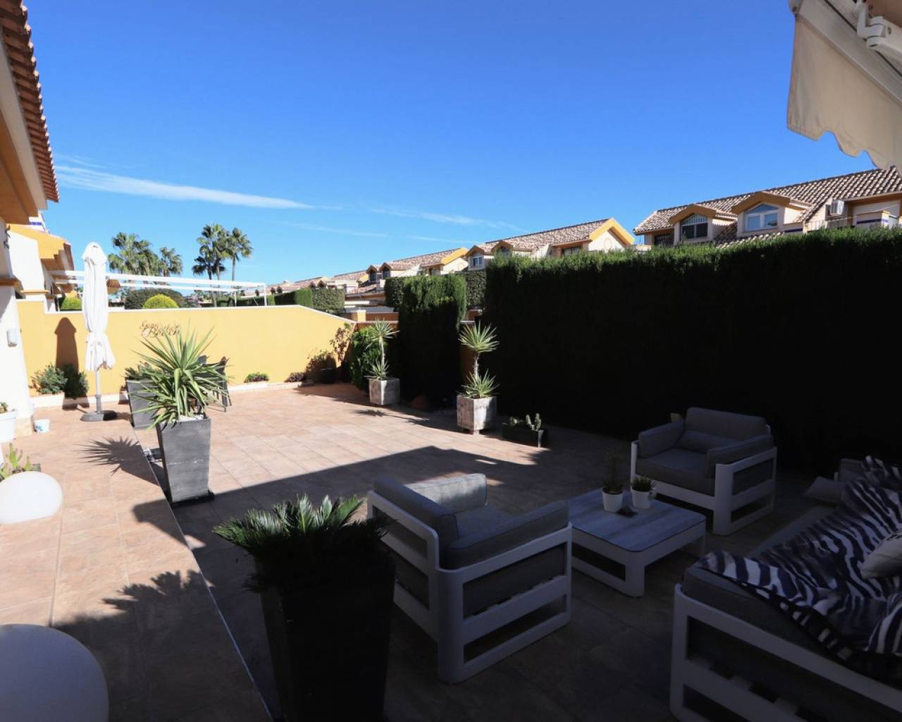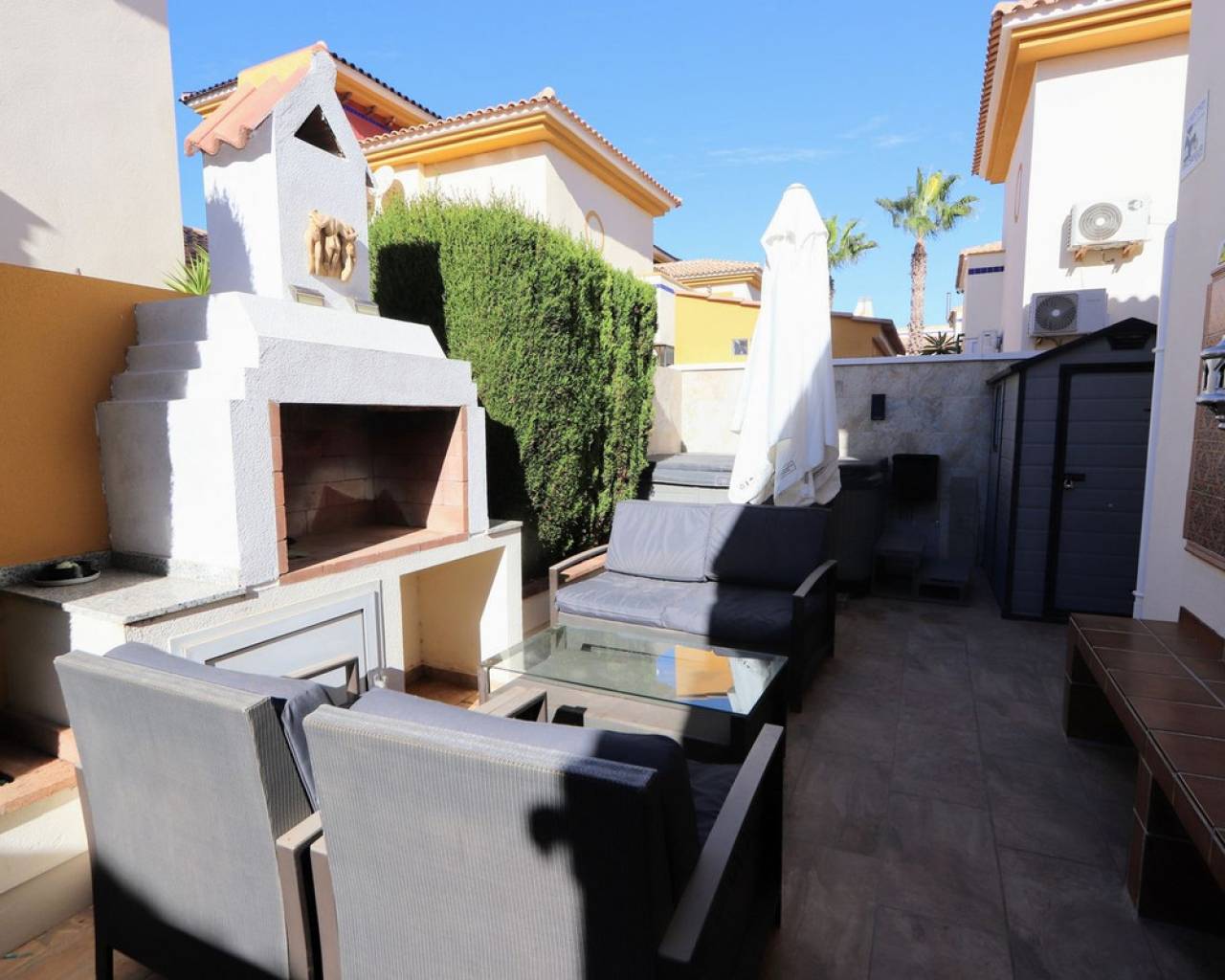 Take a look at this Beautiful Detached Villa located in Lomas de Cabo Roig, within walking distance to all amenities. This renovated property features three bedrooms with fitted wardrobes, two bathrooms, a spacious living/dining area, and a fully fitted kitchen. Additional benefits include air conditioning, private terraced areas, BBQ, off-road parking, communal parking, a terrace off the master bedroom. The property is within a gated community which offers a communal swimming pool and gardens Lomas de Cabo Roig is a tranquil residential area in Orihuela Costa, Alicante, situated 4 km south of Torrevieja. The area offers a variety of shops, restaurants, and bars. You'll find many beautiful blue flag beaches nearby, including the popular beach next to Cabo Roig marina, which offers excellent views. For golf enthusiasts, Cabo Roig is ideally located near several championship courses, including the three Villamartin courses and the world-renowned La Manga golf complex