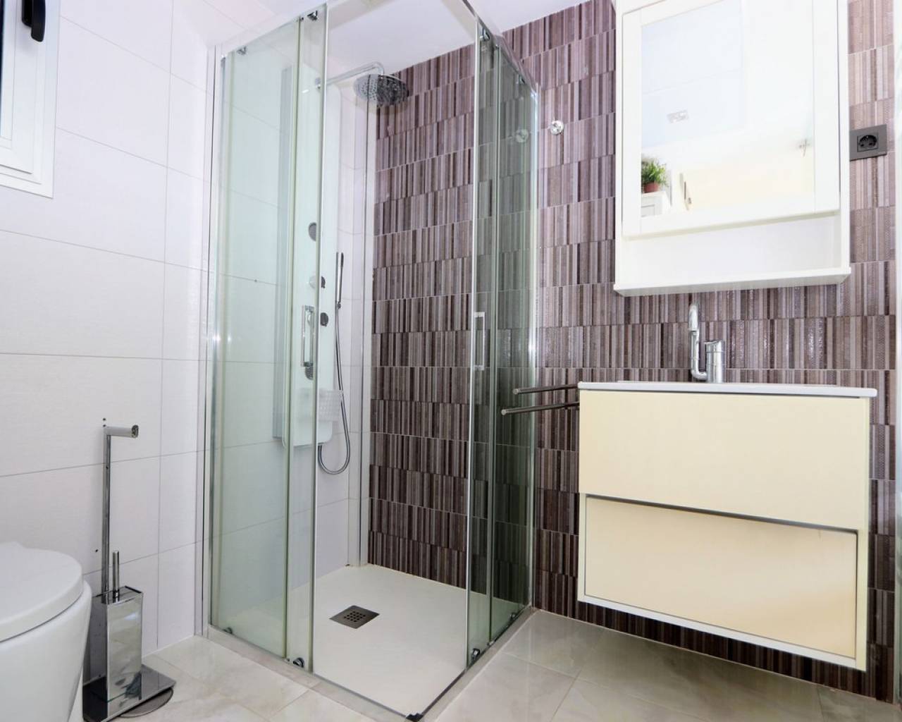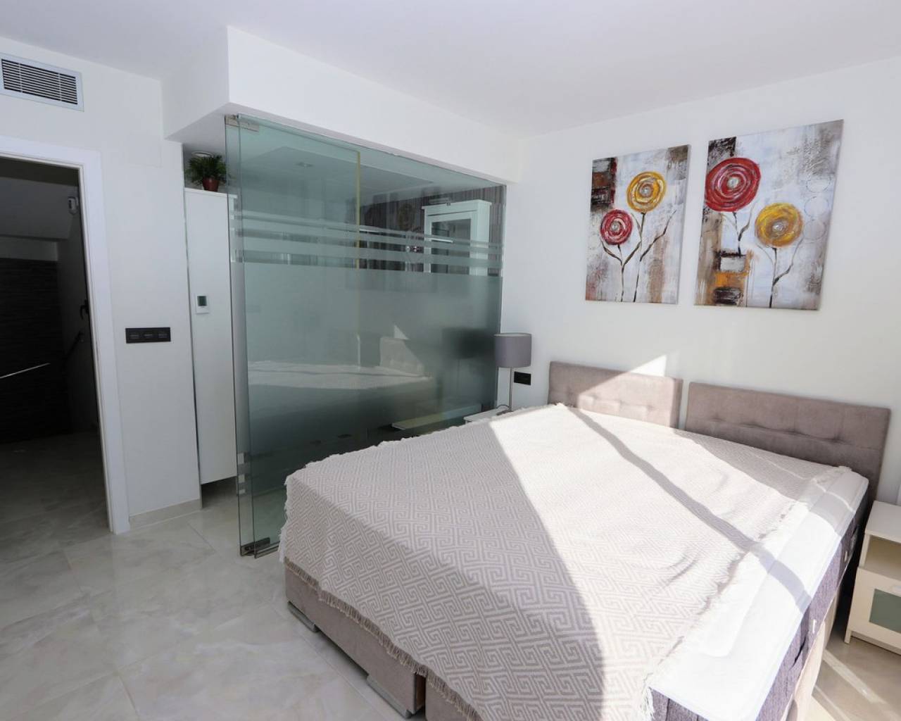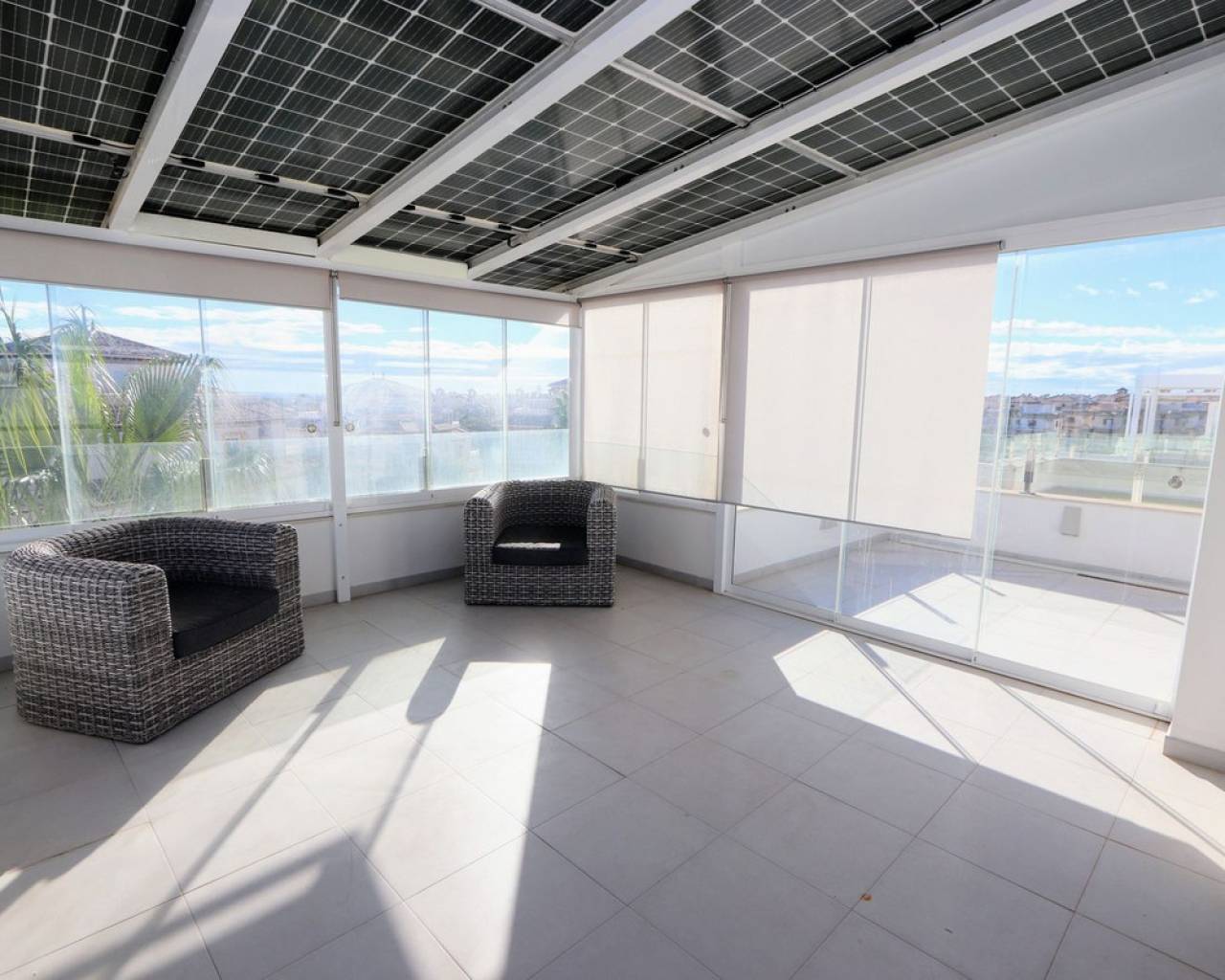 Take a look at this Fabulous Detached Villa located in Lomas de Cabo Roig. This newly built resale property features three bedrooms with fitted wardrobes, three bathrooms, a spacious living/dining area, and a fully fitted kitchen. Additional benefits include air conditioning, private terraced areas to the front and back, off-road parking, underfloor heating in living area and bathrooms, electric blinds, and solar panels for electric. The property benefits also from a private swimming pool. Lomas de Cabo Roig is a tranquil residential area in Orihuela Costa, Alicante, situated 4 km south of Torrevieja. The area offers a variety of shops, restaurants, and bars. You'll find many beautiful blue flag beaches nearby, including the popular beach next to Cabo Roig marina, which offers excellent views. For golf enthusiasts, Cabo Roig is ideally located near several championship courses, including the three Villamartin courses and the world-renowned La Manga golf complex