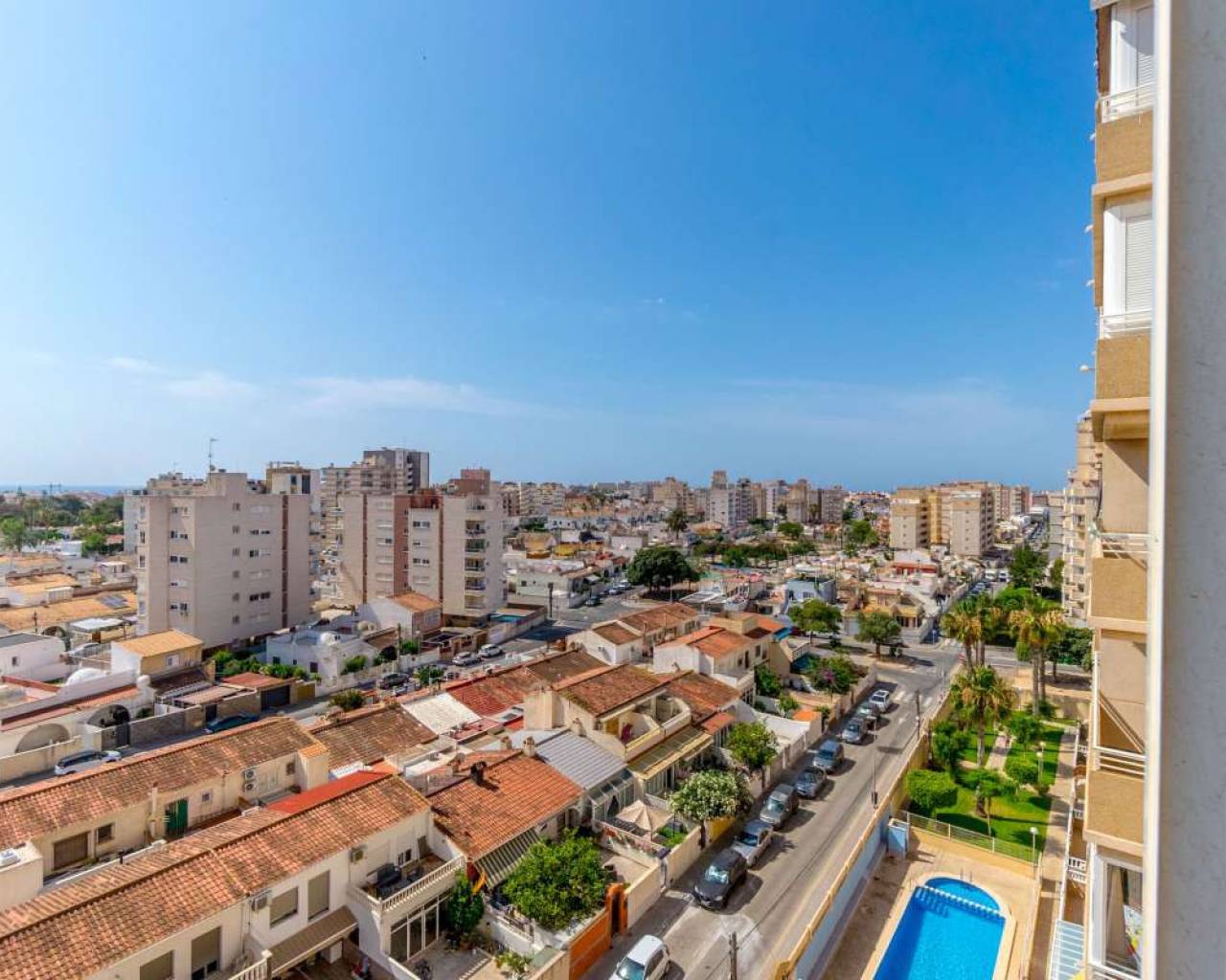 In the Nueva Torrevieja neighborhood of Torrevieja, there is a spacious two-bedroom corner apartment located on the eighth floor. This classic apartment has been recently renovated with high-quality materials and is in excellent condition. The only thing left to install are the skirting boards, which are already available in the apartment. The furniture is made of very high-quality materials, and some pieces are unique handcrafted items. The furniture included in the sale will be discussed separately.The gated community offers a communal swimming pool and a courtyard with a children's playground. The location is excellent — close to a bus stop and a shopping center. There are also parks, a pharmacy, playgrounds, restaurants, schools, supermarkets, and city services nearby.This apartment is an excellent choice for those who appreciate a modern and well-maintained home, a good location, and the benefits of having a swimming pool. Come and discover this unique property in Torrevieja!ASK FOR THE VIDEO!