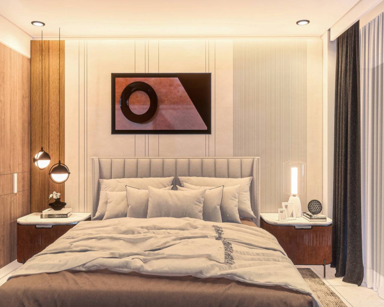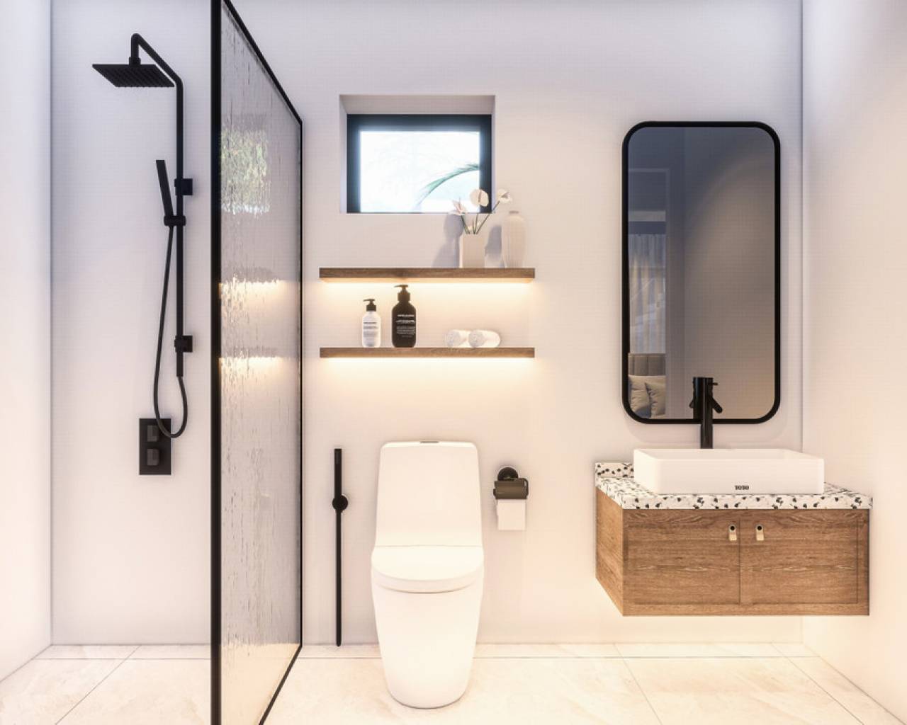 10 Ibiza style 3 bedroom, 2 bathroom, detached villas with sea views and private swimming pools. Located just a 5 minute drive from the town of Pedreguer on Monte Solana and less than 15 minutes from the beaches and town of Denia. All villas consist of an open-plan kitchen, diner and living room, 3 double bedrooms, one of which is with an en-suite shower room and a second separate shower room. Patio doors lead out to the pool terrace which offers amazing sea and valley views. Some of the villas are accessed via a staircase and there is an option to have an external lift installed at an extra cost. Plot of 300m2 Living area and porch of 114.09m2 Swimming pool of 6 X 3 meters with preinstallation of pool heating, glass railings on pool terraces. Double car port. Basic finish to gardens. Model Cortizo 60-4200 external carpentry in colour RAL7016 Glass UV protected minimum 4/6/4. Solid wood interior carpentry in white, door handles of brushed steel. Wardrobe doors swish brake system. False ceilings with curtain recess' in bedrooms and lounge. Ducted Air Conditioning/heating powered by Panasonic reverse heatpump. Modern ceramic tiles on floors and bathroom walls. Kitchen wall and floor units with granite tops. Sanitary ware including floating WC, vanity units, modern shower bases, mixer taps in black or chrome. Mix of tiled and plastered façade.