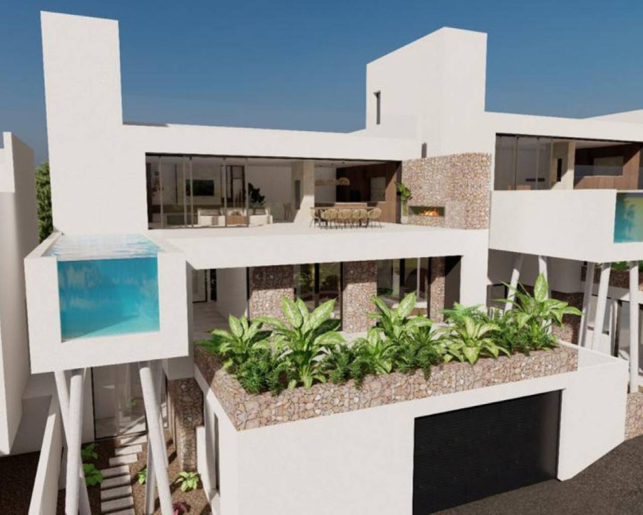 Design villa with a total area of 250 square meters with views over Guardamar and the sea. 3 ensuite bedroom with terraces looking over the Sierra del Recorral. From the infinity pool you can enjoy the beautiful views and the nature that Rojales has to offer. The natural light in the lower ground floor ensures that you can also maximize the use this space for additional bedrooms, multiple parking spaces or for the hobby space you've always dreamed of! The unique and sustainable villas are designed to fully enjoy the magnificent views towards the skyline of Guardamar. A combination of sea views, nature and a luxurious lifestyle within walking distance of Quesada and Rojales with all the amenities at hand. Sustainable design, high quality finishes and the unique location distinguish the Villas as one of the best of the Costa Blanca.