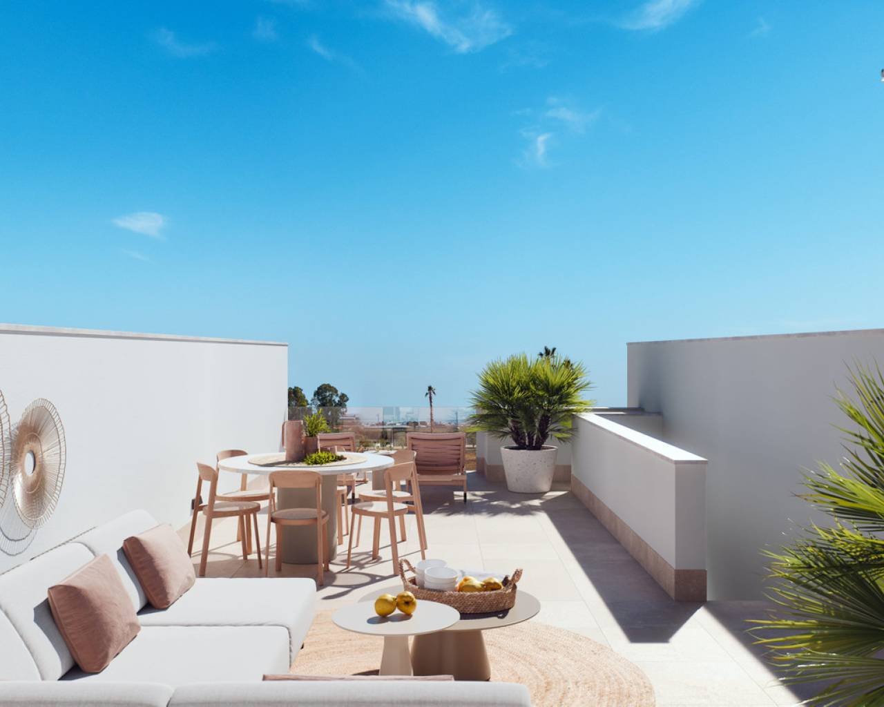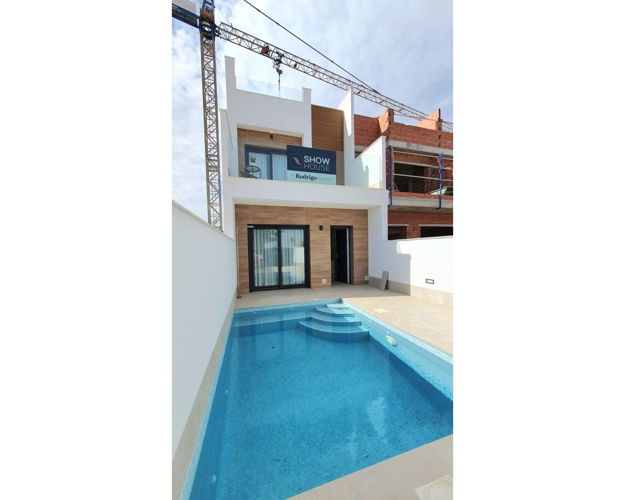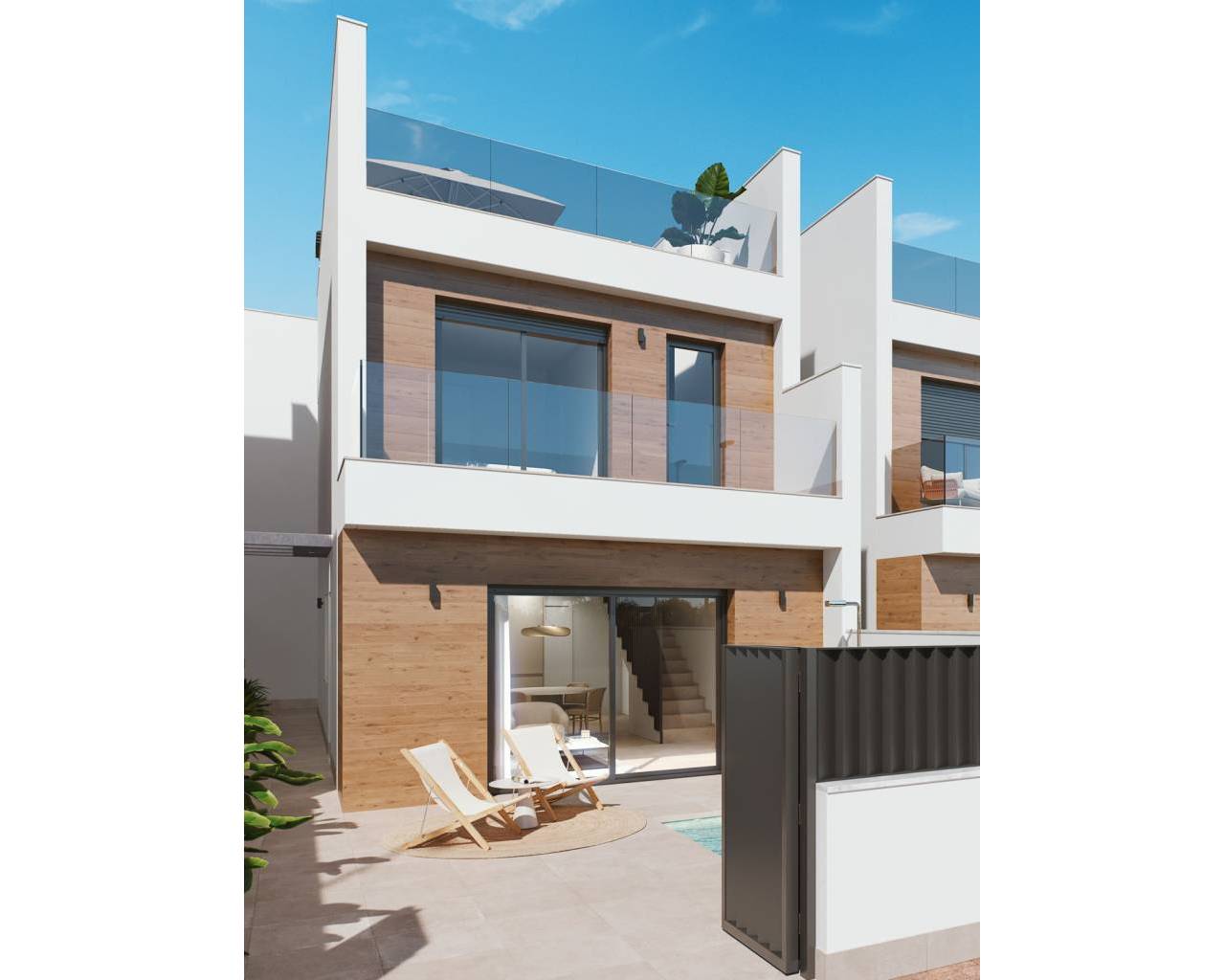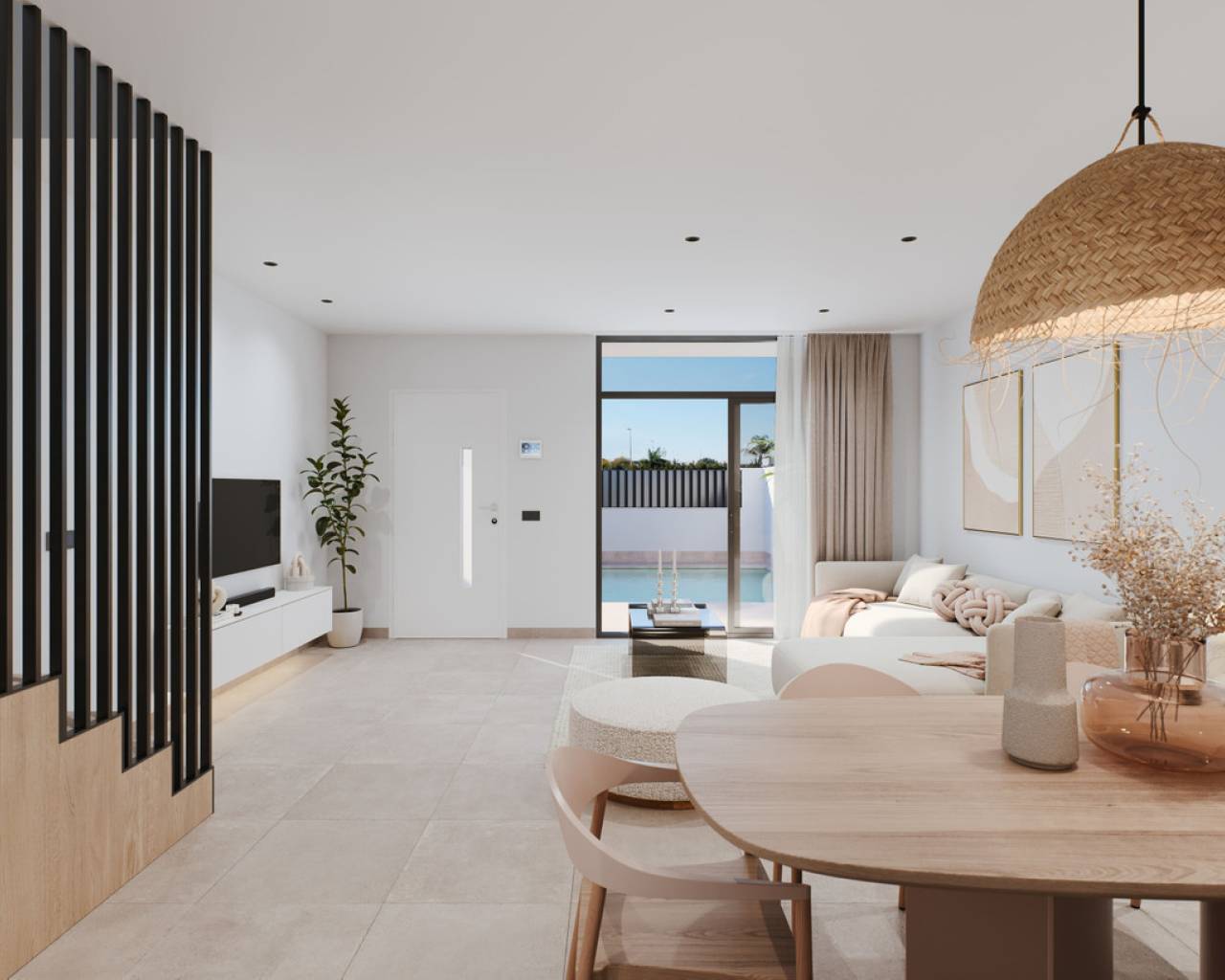 The development is a luxury complex of 8 townhouses on Phase I and 8 detached villas on phase II, with private swimming pool and parking space for each property. These properties have different terraced areas and large solarium, allowing you to enjoy all hours of sunshine every day of the year. Each property has 3 bedrooms and 2 bathrooms, plus a dressing room in the master bedroom. The properties have been designed on two levels plus solarium on the upper floor, with a contemporary style and an open planned concept, comprising a fully fitted kitchen and a lounge-dining room. The development is located in San Pedro del Pinatar (Murcia), surrounded by all services and sports facilities, near several Golf Courses, plus being 30 minute drive to Murcia airport and 2,5 km from Mar Menor and Mediterranean beaches.