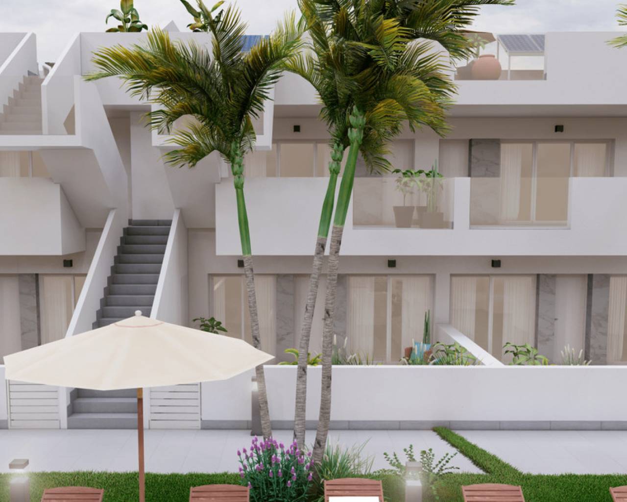 The development is a luxury complex of 11 maisonettes on Phase 1 with community pool, where you can enjoy all hours of sunshine all year long. The properties have 2 or 3 bedrooms and 2 bathrooms. Beautiful houses with outdoor parking space, terrace on the ground floors and solarium with Summer kitchen on penthouses. This fantastic development is designed with a contemporary style and open planned concept, comprising a fully-fitted kitchen and lounge-dining room. It is located within a gated Resort in Roldán, Torre Pacheco, Murcia, surrounded by all services, sports facilities and near the beach and several Golf Courses.