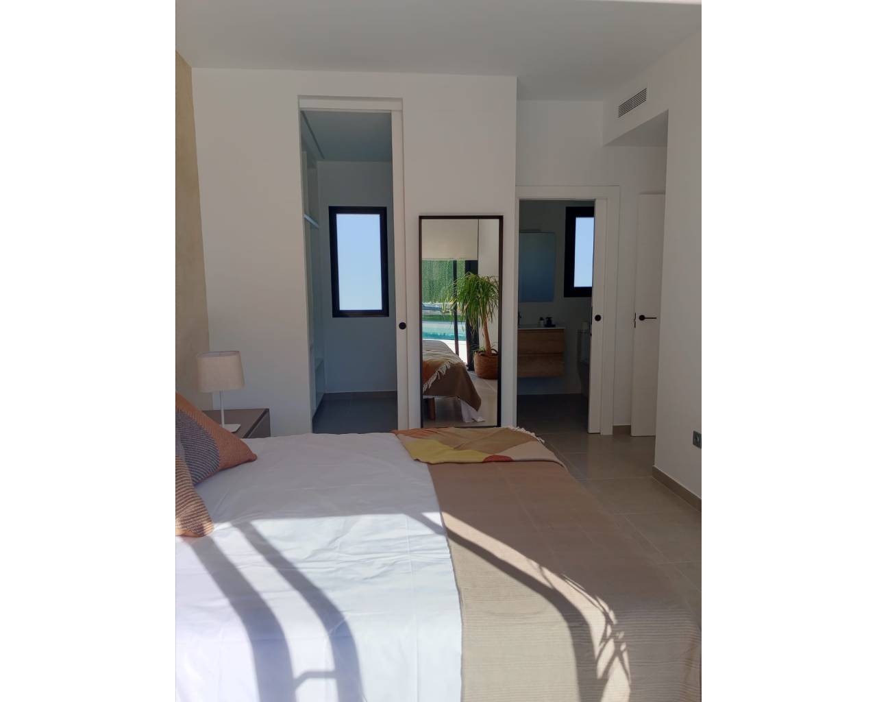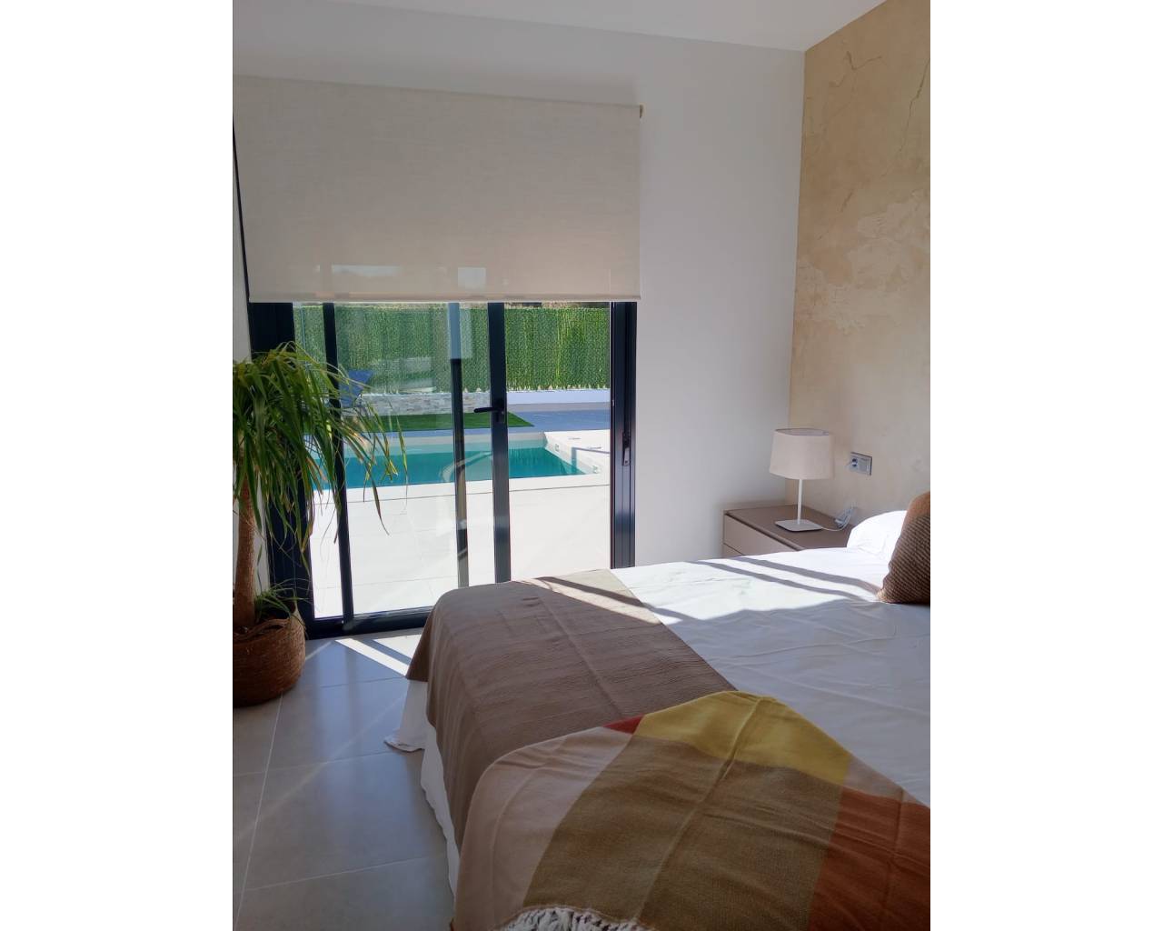 This development is a luxury complex of 8 independent villas, with large private swimming pool and parking space on the plot. These properties have different terraced areas around them, allowing you to enjoy all hours of sunshine every day of the year. Each property has 3 bedrooms, 2 bathrooms and a toilet, plus a dressing room in the master bedroom. The properties have been designed on one level, with a contemporary style and an open planned concept, comprising a fully fitted kitchen and a lounge-dining room. The development is located in Calasparra (Murcia), surrounded by large green areas, all services and sports facilities, plus being one hour drive to Murcia airport or to Mar Menor and Mediterranean beaches. The properties will meet the highest standards and will be equipped with: - Private swimming pool with LED lighting and external shower. - Kitchen completely furnished and equipped with oven and microwave in column, integrated dishwasher, fridge, ceramic hob and extractor fan. - LED Lighting: inside the property (dining room, kitchen, corridors and bathrooms), as well as in outdoor areas. - Motorized blind in living room. - Dressing room in the master bedroom. - Lined wardrobes with drawers. - Fully fitted bathrooms with vanity unit, toilet, mirror, shower and shower screens. - Pre-installation for ducted air conditioning. - Pre-installation for solar panels. - Parking space on the plot with motorized gate.