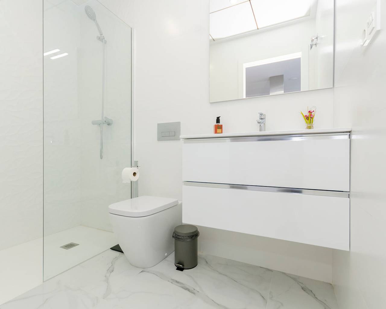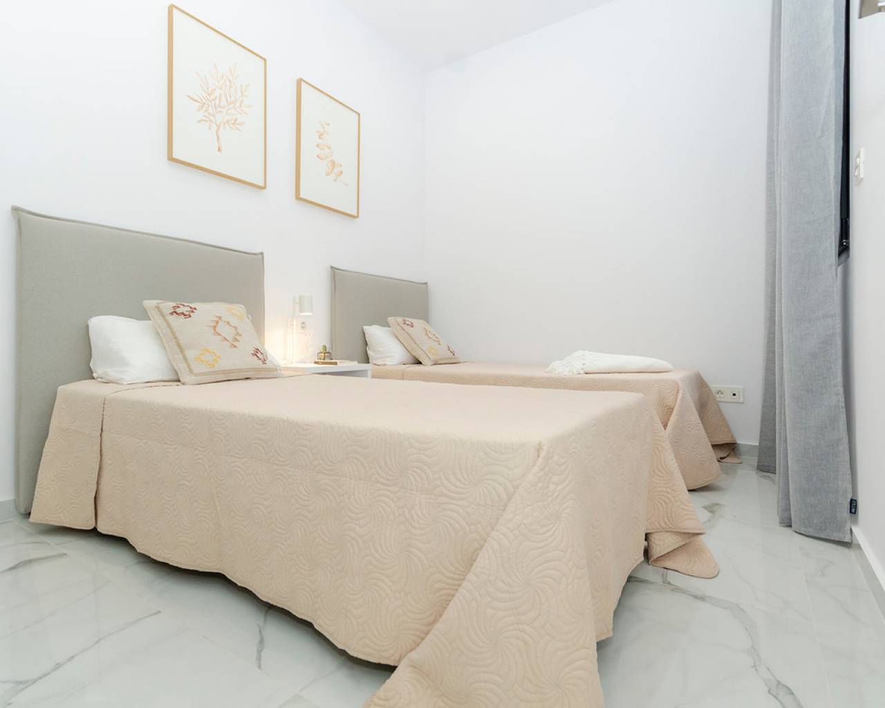 Overlooking the unique and charming Laguna Rosa, and surrounded by all the services you may need: supermarkets, hypermarkets, Habaneras shopping center, school, high school... Very close to the international beaches of Torrevieja, Guardamar and Orihuela Costa. At 40 minutes from the International Airport of Alicante. All the houses have very good southeast or southwest orientation, with many hours of sun and natural light. These excellent independent Mediterranean homes offer excellent value for money, all with independent plot with parking space, private pool, and a magnificent distribution: On the first floor they have large living-dining room area and open kitchen, 1 bedroom with fitted closet, 1 full bathroom and porch access to the house. The second floor is distributed in 2 large bedrooms with fitted closets, 2 bathrooms en suite and a terrace in each bedroom. Optionally you can build a large solarium of 45.70 m2. The standard qualities and finishes of this new construction are excellent: all homes include automated blinds, pre-installation of air conditioning ducts, hot water supply through solar panel ... In addition, for a limited time it is also included as a gift courtesy of the promoter: - Interior and exterior lighting - Shower screens in bathrooms - Electrical appliances in the kitchen