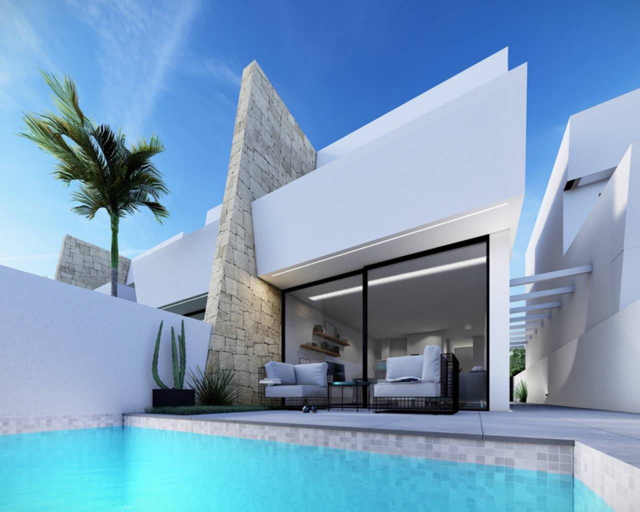 Semi-detached and Semi-Detached Villas with Private Pools (650 metres from the beach) New Phase Launch – The Villas Introducing one large 'Ventura' linked villa and 8 semi-detached villas, each designed to provide the ultimate open-plan living experience. These villas feature double full-glass sliding doors that open onto a spacious terrace with a private swimming pool, additional terrace space, and a parking area. Both villa types offer 3 generously sized bedrooms (with the master bedroom featuring an en-suite on the first floor) and an additional bathroom with a walk-in shower on the ground floor. The ground floor living area includes a fully fitted kitchen with a drop-down table, open-plan lounge and dining area, a kitchen zone with appliances, an exterior storage room, and terraced areas off the master bedroom and lounge. Perfectly Located… These villas are just a couple of minutes' walk to the beaches in San Javier and only 5 minutes from the town centre. The Wednesday and Saturday street markets are a mere 150 metres away. Ideal for Leisure… Explore miles of beautiful paseo, perfect for day or evening strolls. The area is filled with a variety of restaurants and charming tapas bars near the sea. Visit the local sailing club or enjoy numerous sports activities, including seasonal water sports. The location is also close to several top-quality golf courses.