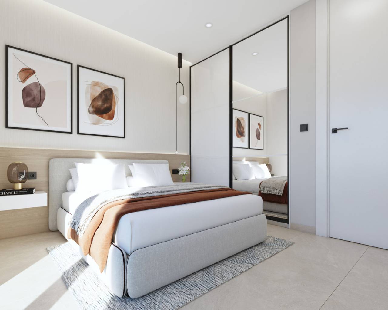 Located on the prestigious Avenida de Cervantes, in one of the most desirable areas of Guardamar del Segura, a building will be erected. This exclusive building is an ideal choice thanks to its proximity to the beach, just 100 metres away, and its easy access to a wide range of services. Facilities will include a swimming pool and rooftop solarium, providing residents with the perfect space to relax and enjoy themselves. The building will comprise 44 flats, 56 parking spaces and 48 storage rooms. The flats will be available in different configurations, from 1 to 3 bedrooms, with 1 or 2 bathrooms. All units will have a terrace, and those located on the lower floors will also include a patio. Each flat will be equipped with air conditioning and a home automation system, which will allow residents to automate and control different aspects of the home, ensuring both comfort and energy efficiency. The kitchen will be fully equipped with high-end appliances such as oven, dishwasher, fridge-freezer, extractor hood and induction hob, creating a functional and modern environment to enjoy cooking and meals in good company. In addition, there will be the possibility of acquiring a parking space and a storage room within the same building, providing greater convenience and storage space for residents. The building will enjoy an unbeatable location, very close to the beach and surrounded by a wide range of services and amenities, such as restaurants, shops, supermarkets and leisure areas. Guardamar del Segura, known for its magnificent fine sandy beaches and natural environment, offers a quiet and relaxed lifestyle, without losing access to all the necessary amenities. All in all, a flat in this building represents an excellent opportunity for those looking for a modern and comfortable home in a privileged location, with the beach and all services within walking distance. Don't miss the opportunity to purchase your flat in this building, in Guardamar del Segura.