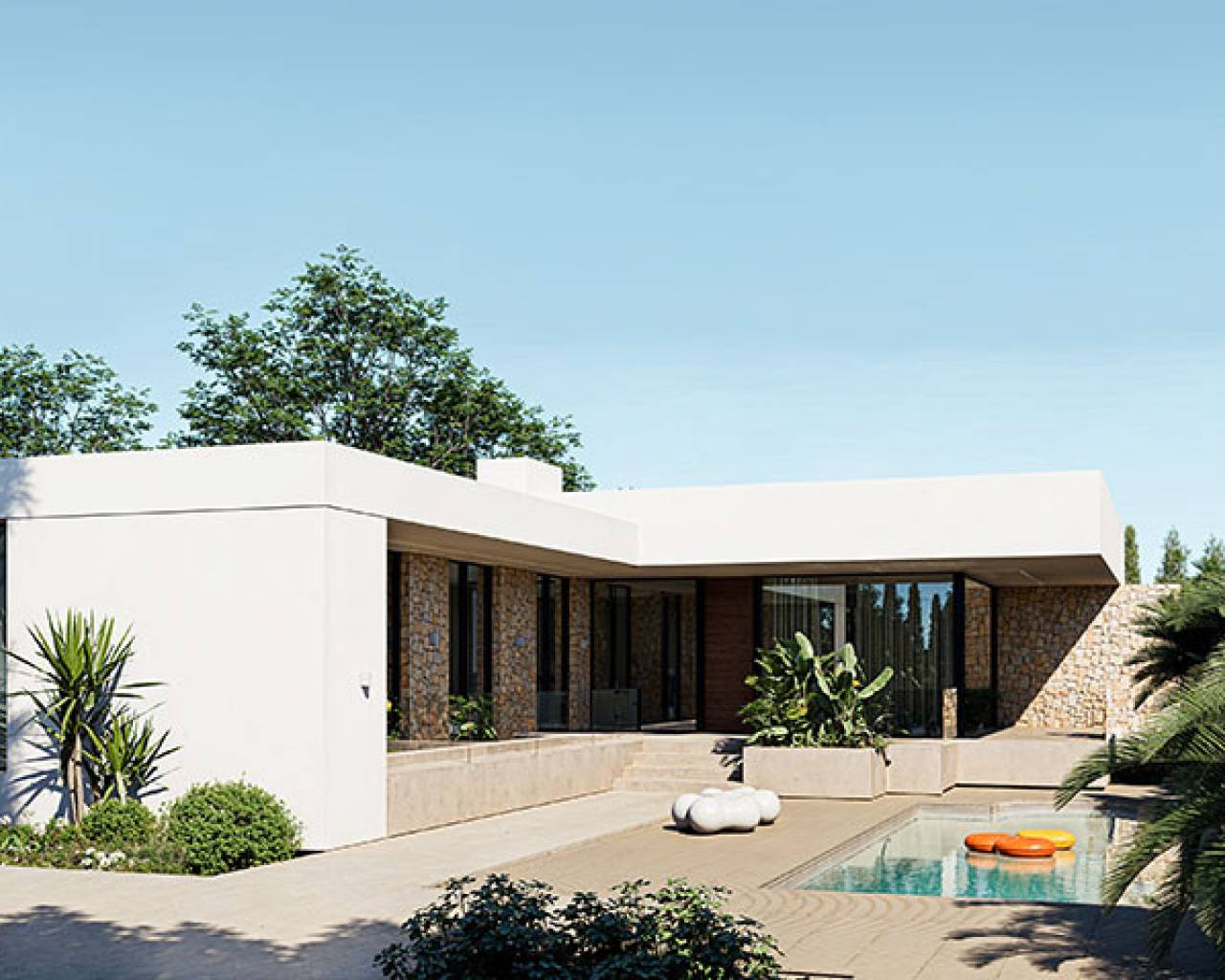 Are you dreaming of a villa where you can add your own personal touch? This luxurious property on an impressive 930 m² plot could be your dream come true! With a beautiful, large 5x10 meter pool, standard-equipped for a heat pump, you can enjoy warm water year-round – perfect for long, relaxing days under the Spanish sun. The villa is built to your specifications – from start to finish, you're in control. The standard layout includes 4 spacious bedrooms, 3 bathrooms, and a large, light-filled living room seamlessly connected to a modern kitchen. The expansive windows in the living area create magical natural light and open up to a stunning terrace – ideal for enjoying sunsets or hosting unforgettable dinners under the stars. The master suite is pure indulgence, featuring a walk-in closet and an en-suite bathroom that adds a luxurious touch. Here, you can truly design the home of your dreams. And it doesn't stop there! Extras you can choose: Would you like a rooftop terrace to enjoy breathtaking views of the salt lake and mesmerizing sunsets? Or underfloor heating throughout the villa? Here, you can have everything just the way you want it. For the eco-conscious, the villa is even prepped for solar panels, so you can harness the sun's energy year-round, saving both the environment and your wallet. The quality is, of course, top-notch, built by a Danish company with insulation that keeps the villa cool during summer and cozy in winter – every detail is taken care of, so you can simply relax and enjoy life. The location in El Chaparral is truly ideal! You'll have supermarkets, restaurants, and charming bars right nearby, and if you love shopping, the Habaneras shopping center is just a short drive away. The beautiful beaches are under 6 km away, keeping you close to the sea. Alicante Airport is only 45 km from the villa, with easy access to main roads and motorways – making it convenient for outings, business, or welcoming guests. Does this sound like your dream home?